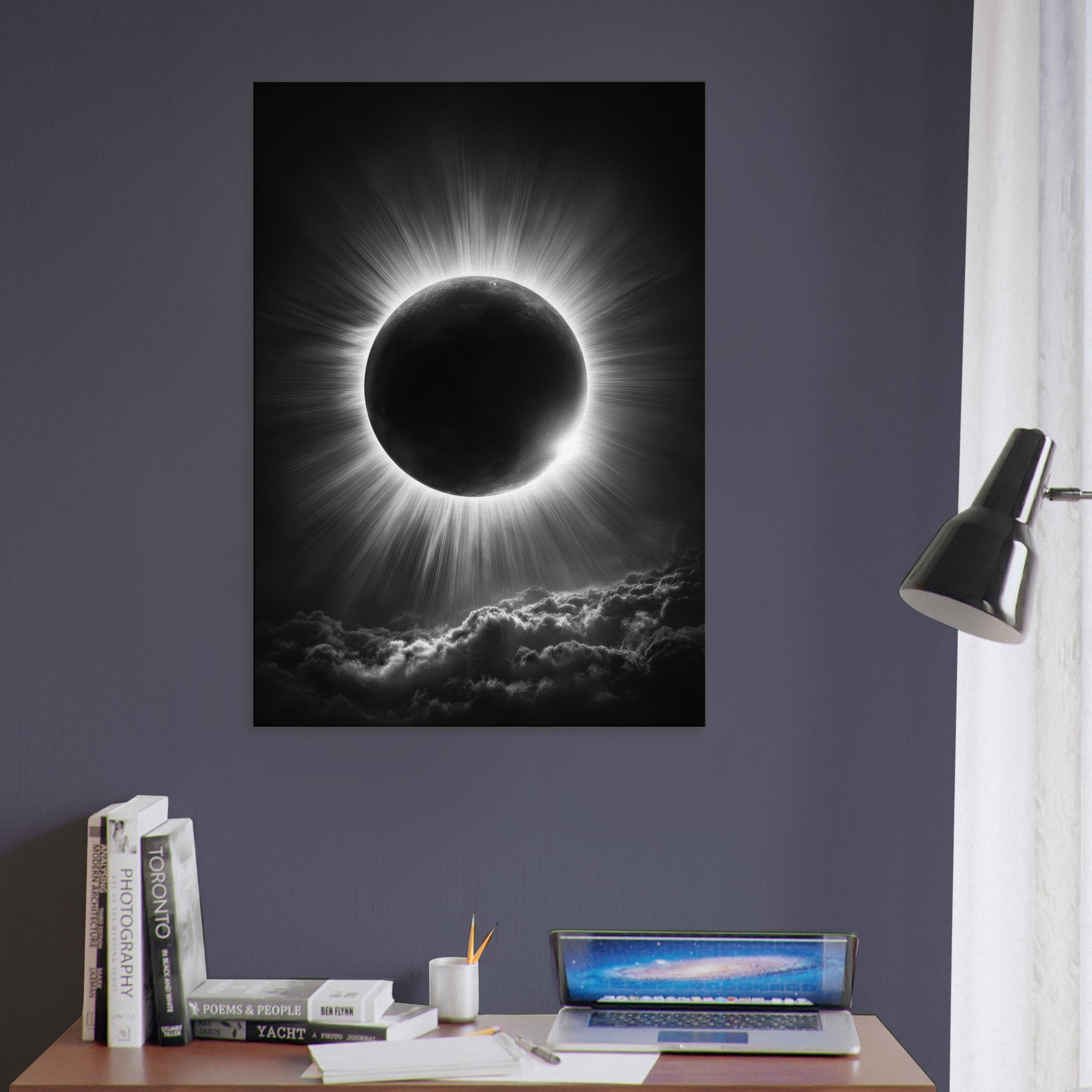 An arresting study in black and white, an Eclipse unfurls a radiant corona around inked darkness, a mystical heartbeat for any room. This wall art invites quiet reflection, turning a living space into a sanctuary of shadow and clarity. Hung above a sofa or console, it grounds the space with serene, cinematic glow dramatic yet restrained, timeless yet contemporary. The Eclipse anchors the composition, balancing negative space with luminous energy.