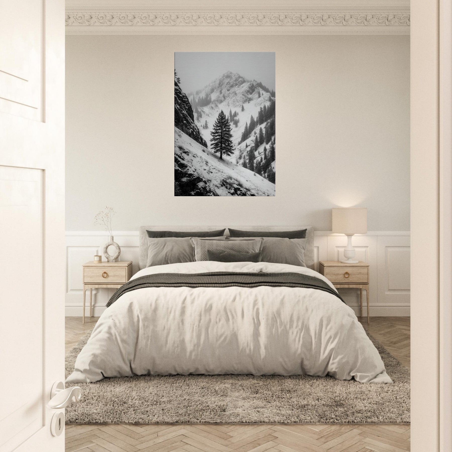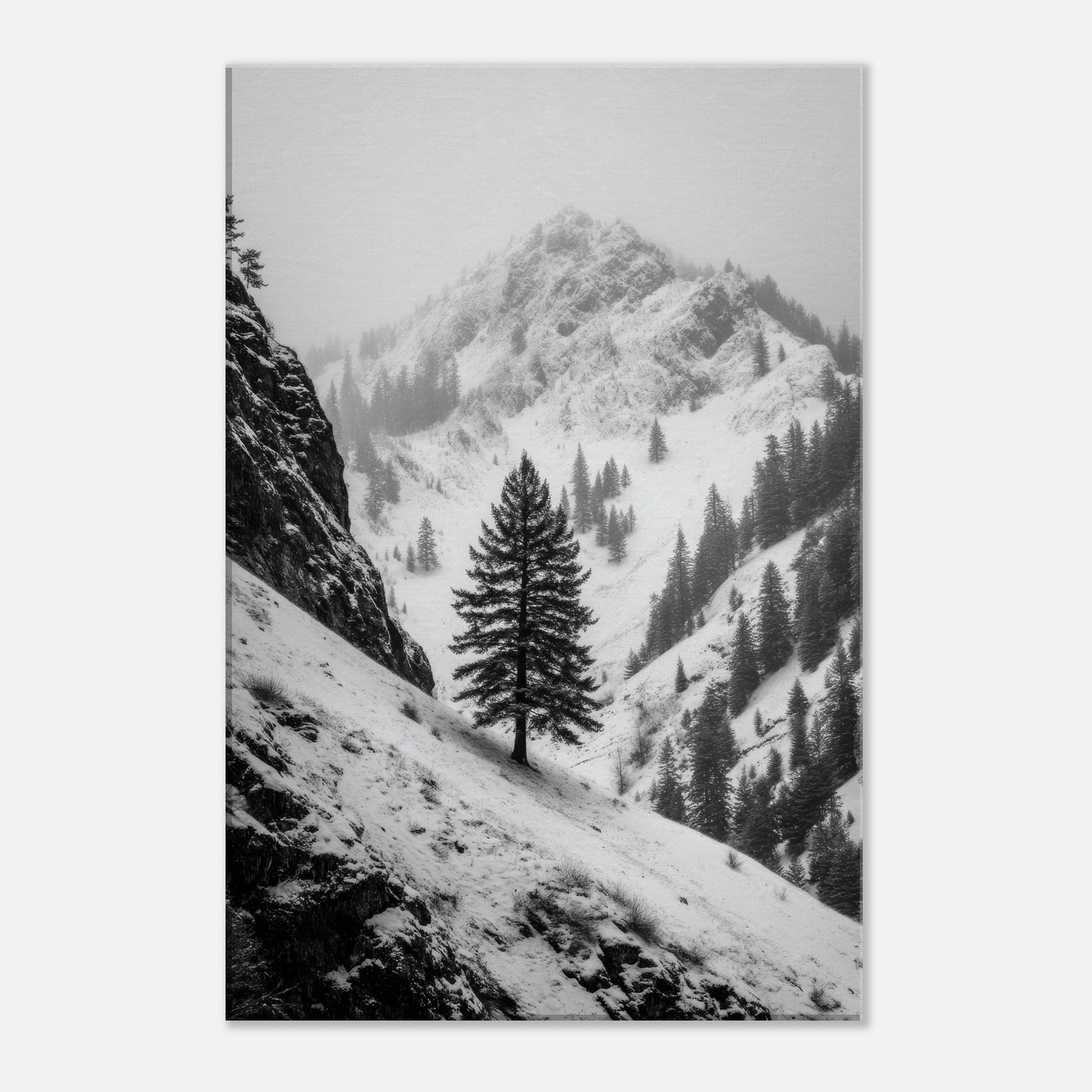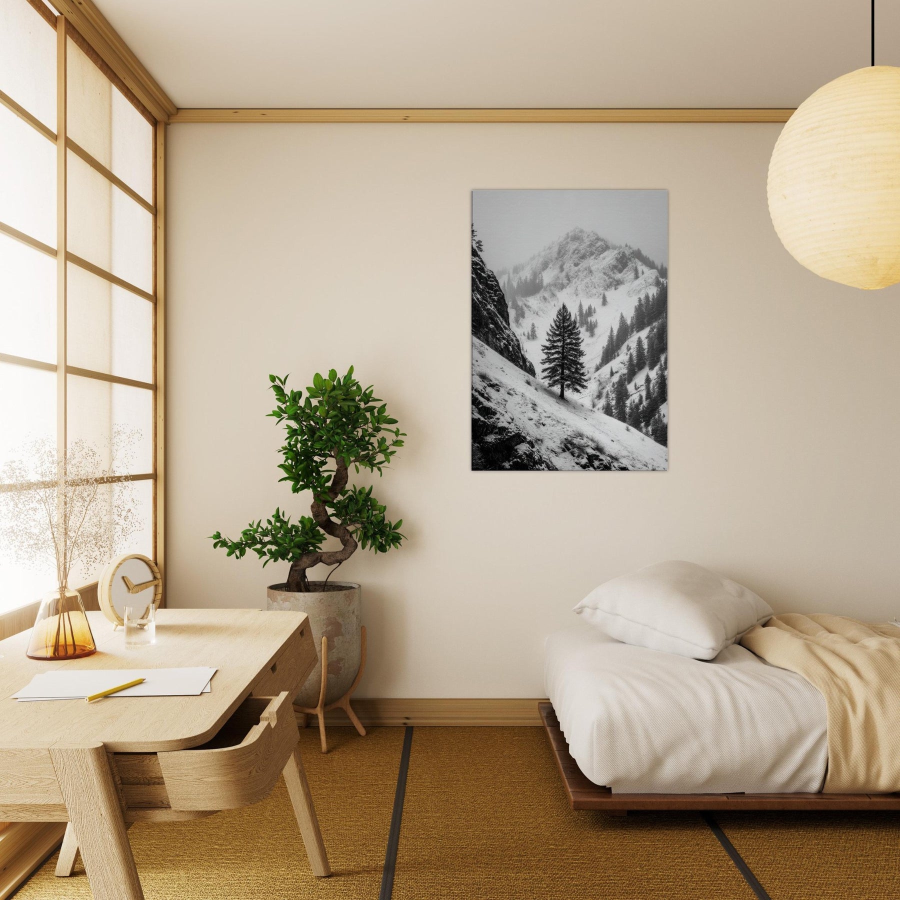 Snowy Forest unfolds in quiet grayscale, where light softens and shadows whisper along snow dusted pines. In this Black and White interpretation, every tree becomes a precise silhouette, every ridge a delicate memory of wind. The atmosphere is hushed, inviting calm, a window of stillness that deepens a room's character without shouting. Place it in the living area or hallway to slow the pace of daily life, turning walls into a serene horizon and adding timeless, nature inspired elegance to your space.