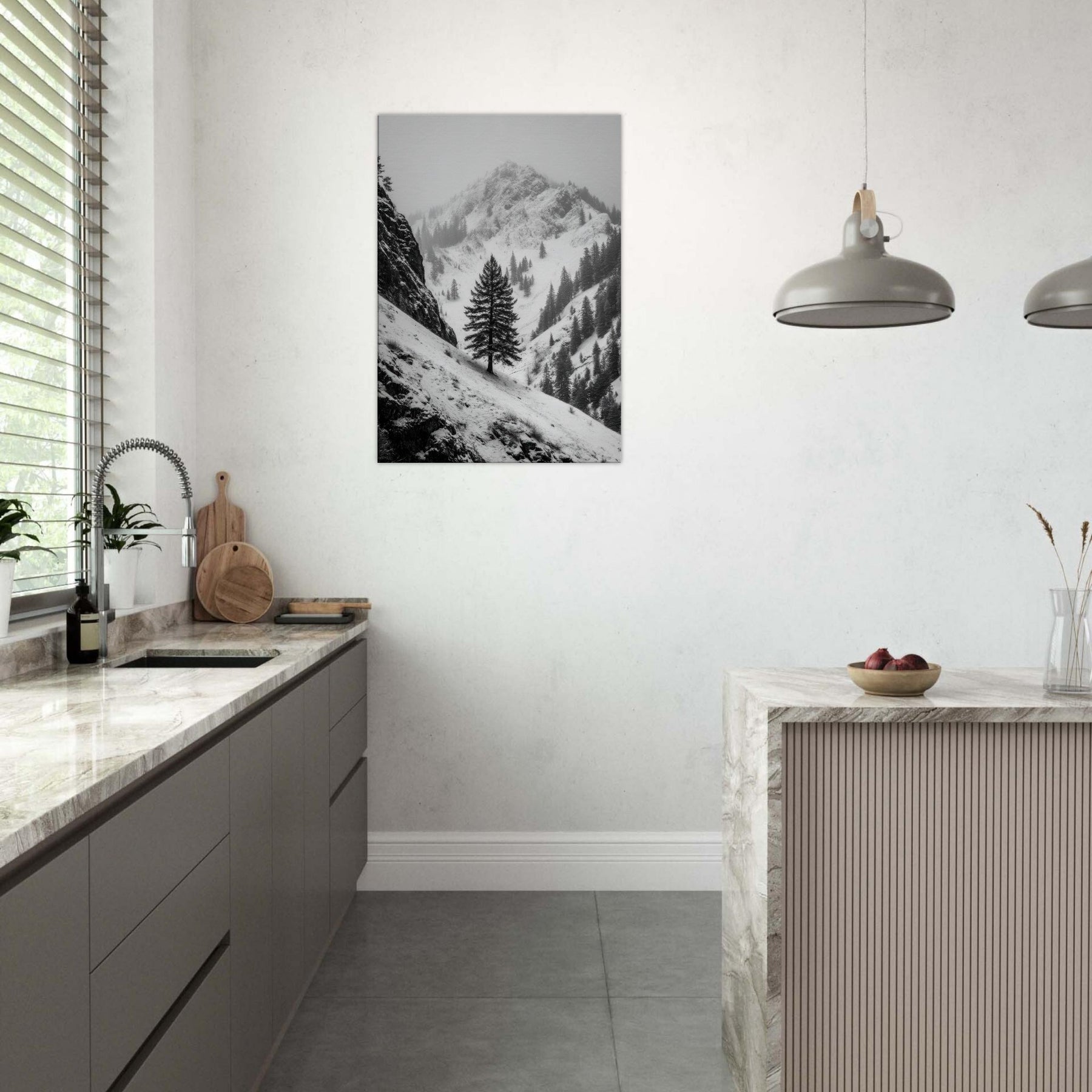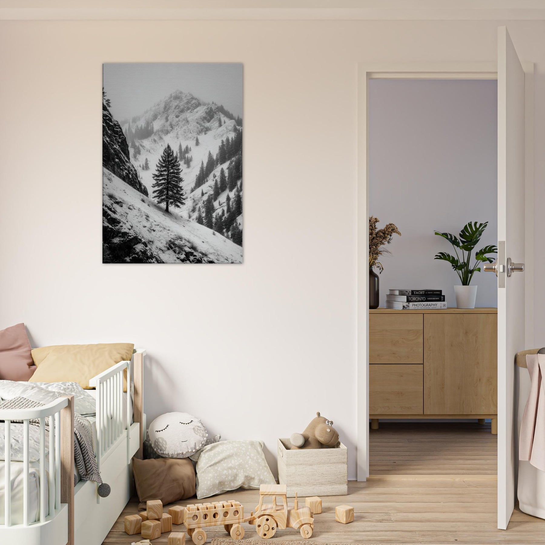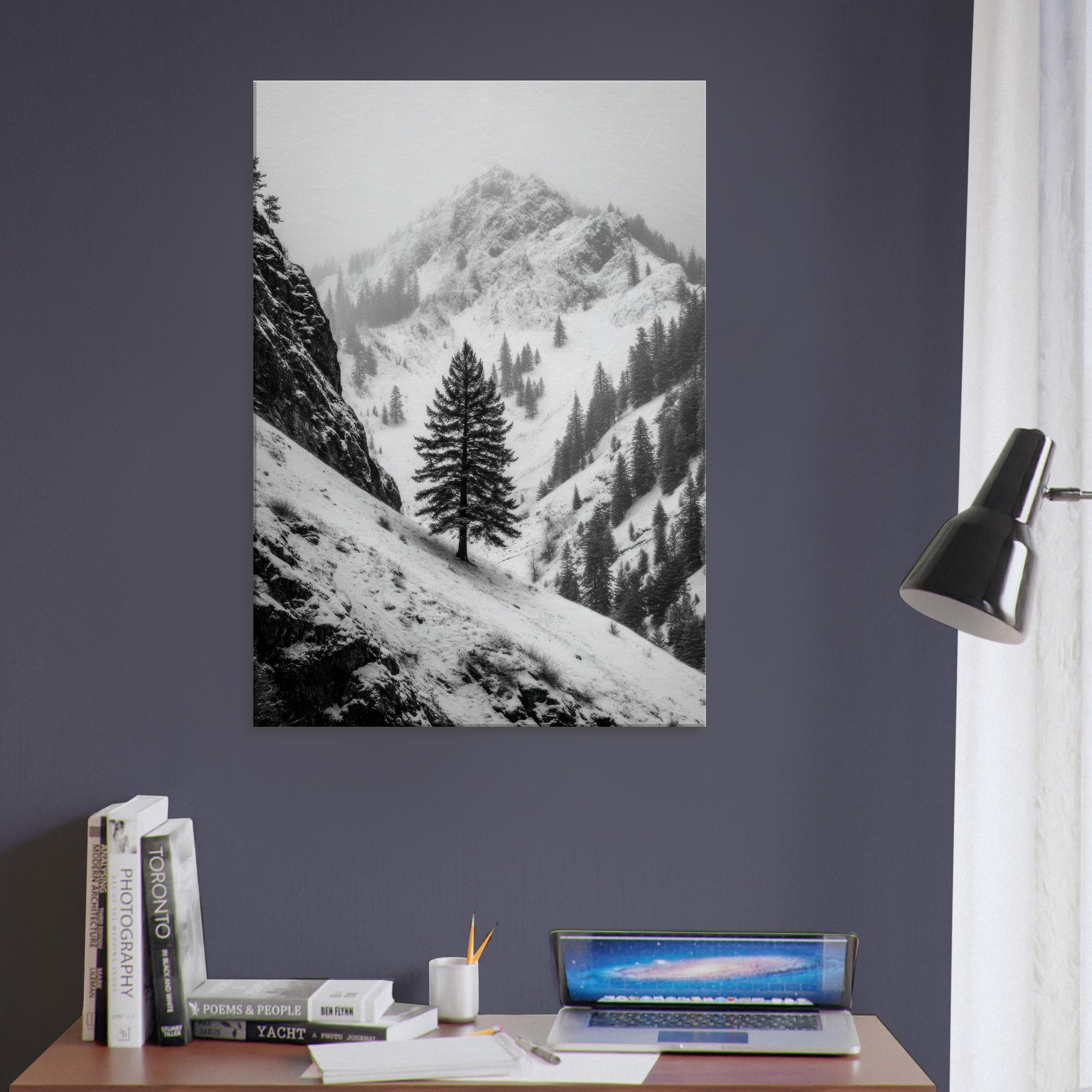 Snowy Forest unfolds in quiet grayscale, where light softens and shadows whisper along snow dusted pines. In this Black and White interpretation, every tree becomes a precise silhouette, every ridge a delicate memory of wind. The atmosphere is hushed, inviting calm, a window of stillness that deepens a room's character without shouting. Place it in the living area or hallway to slow the pace of daily life, turning walls into a serene horizon and adding timeless, nature inspired elegance to your space.