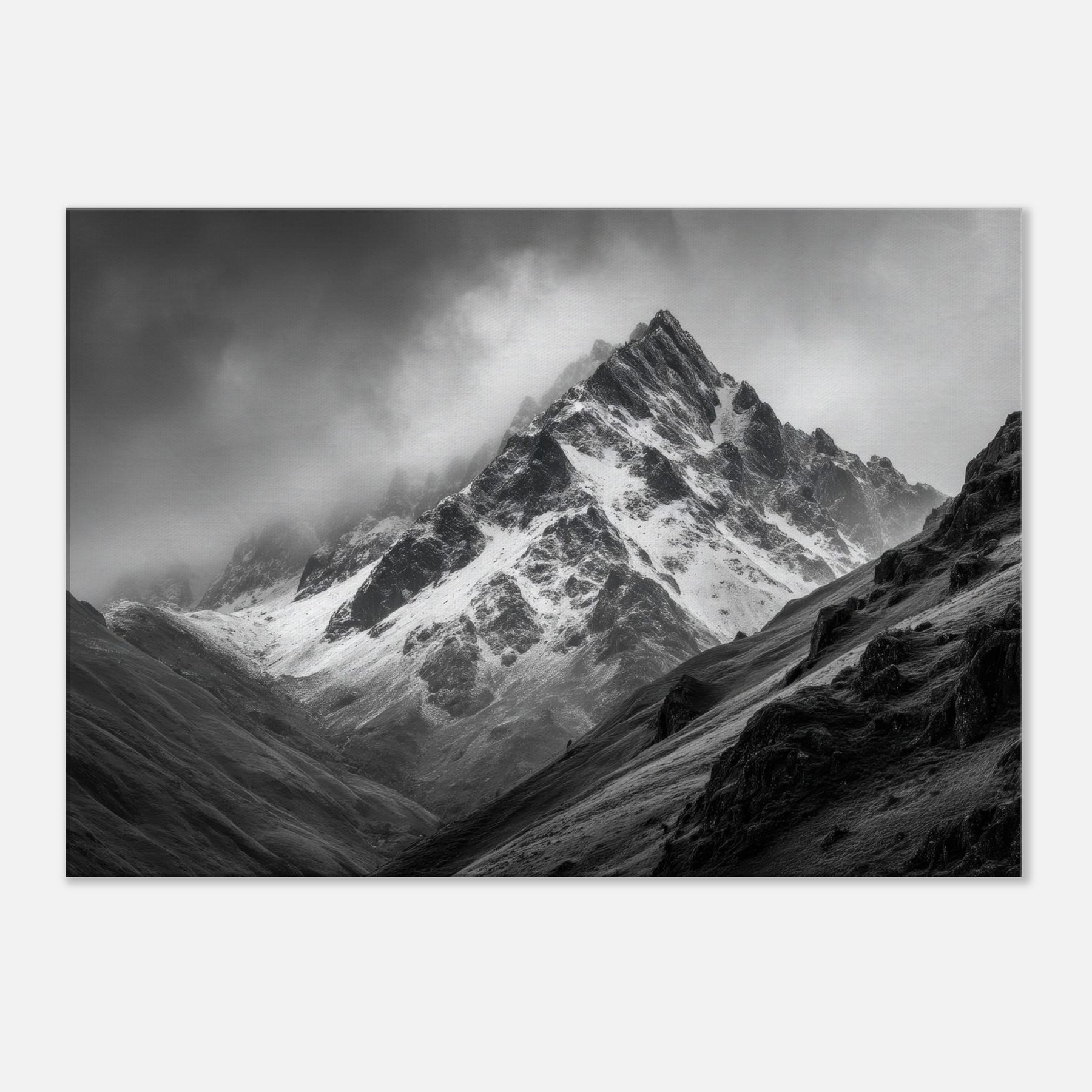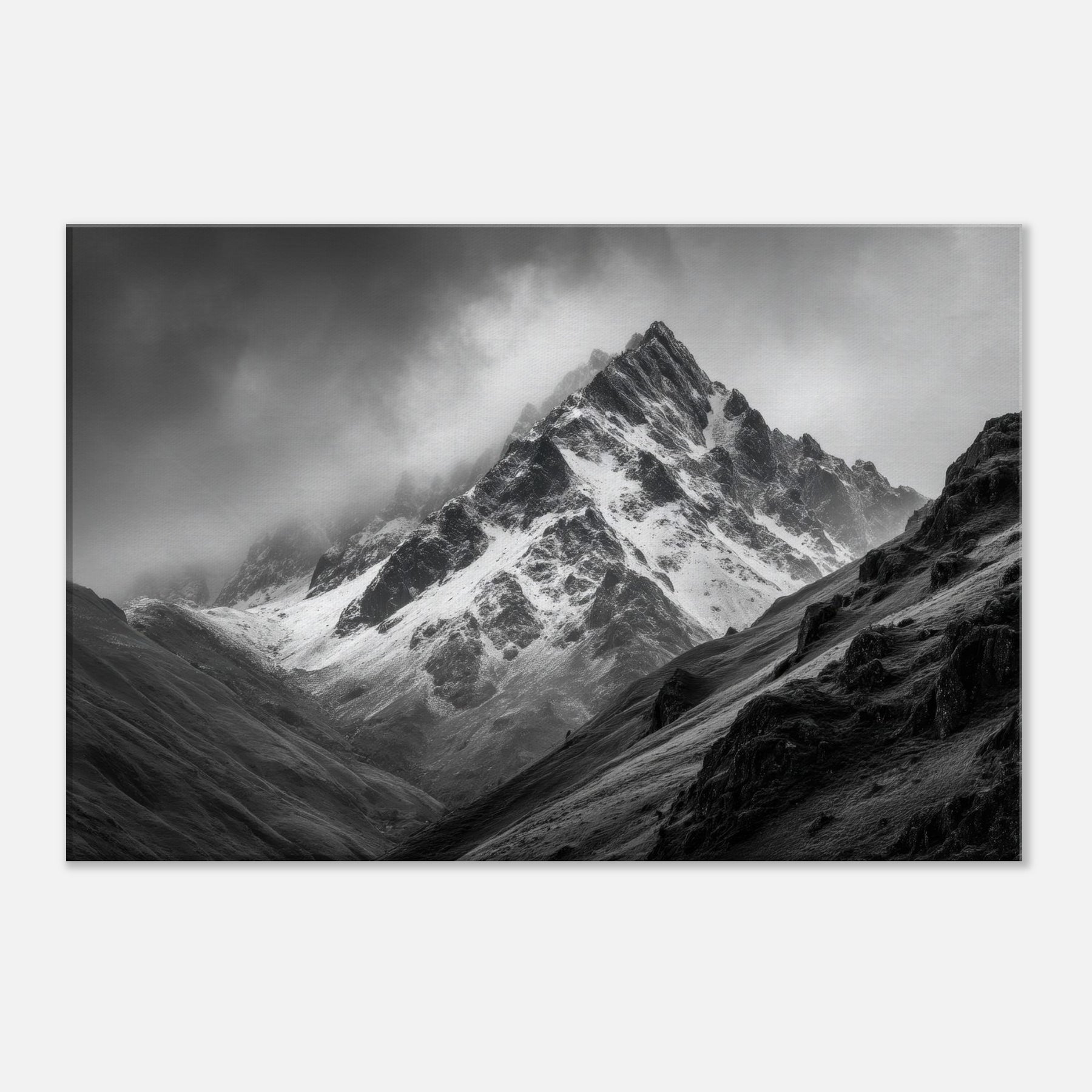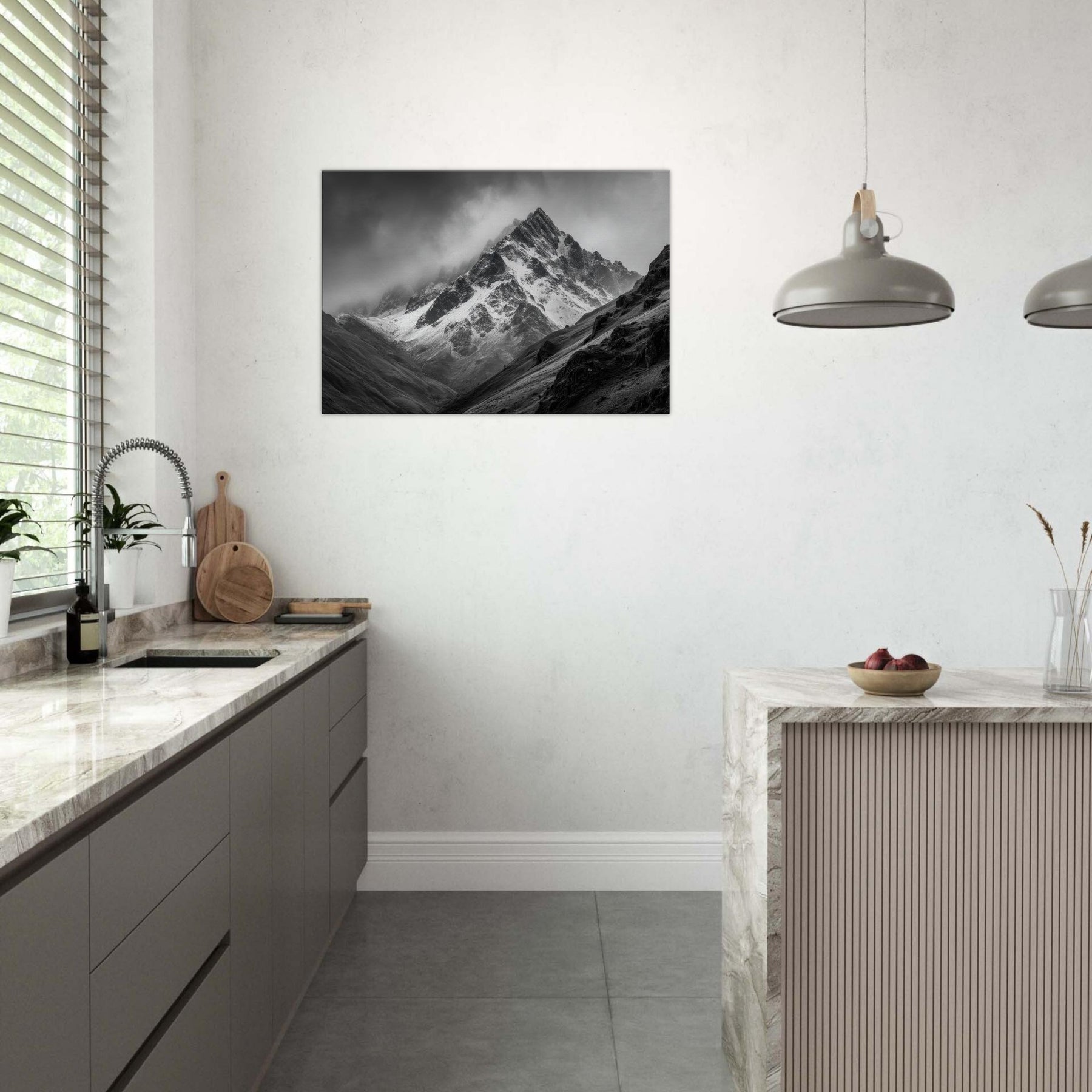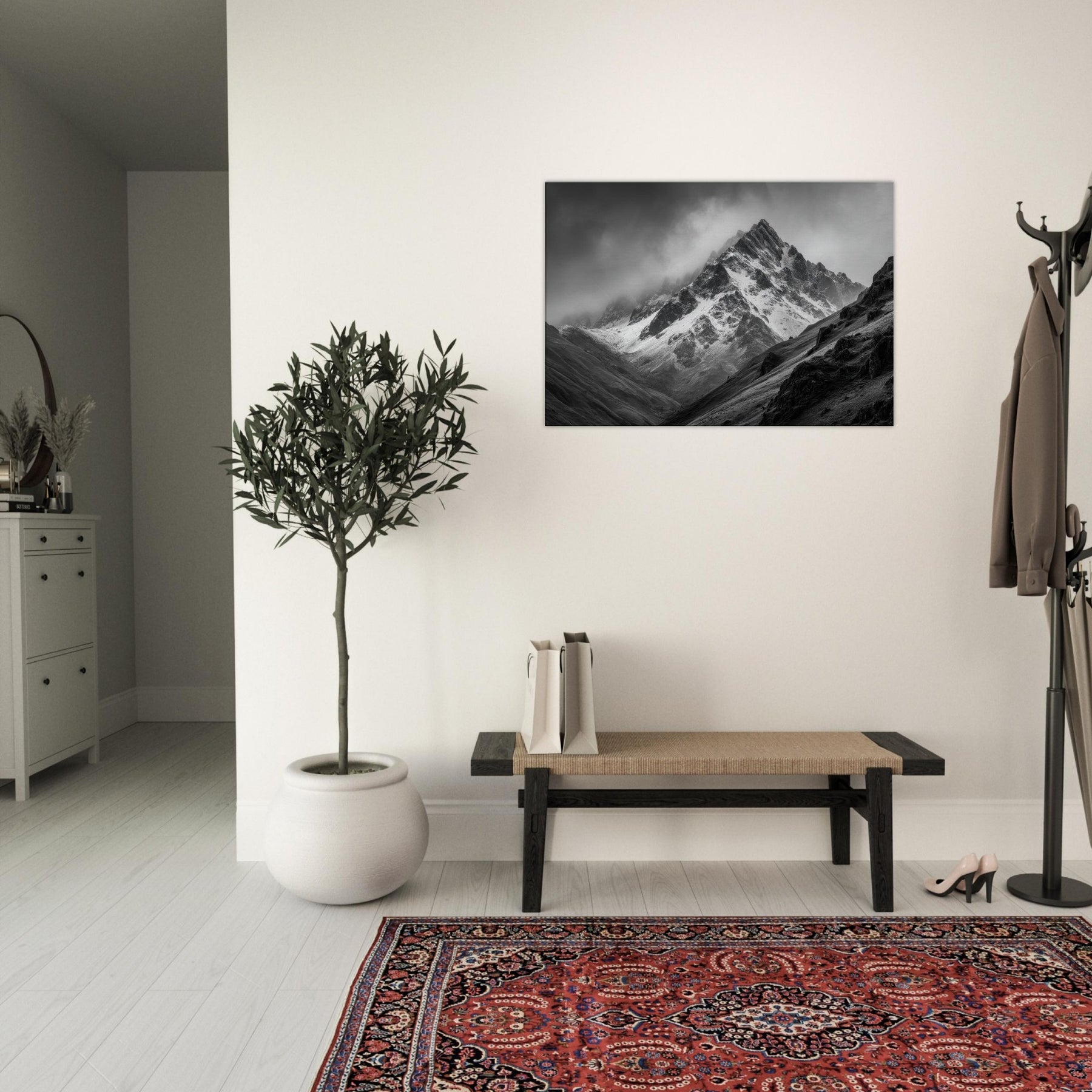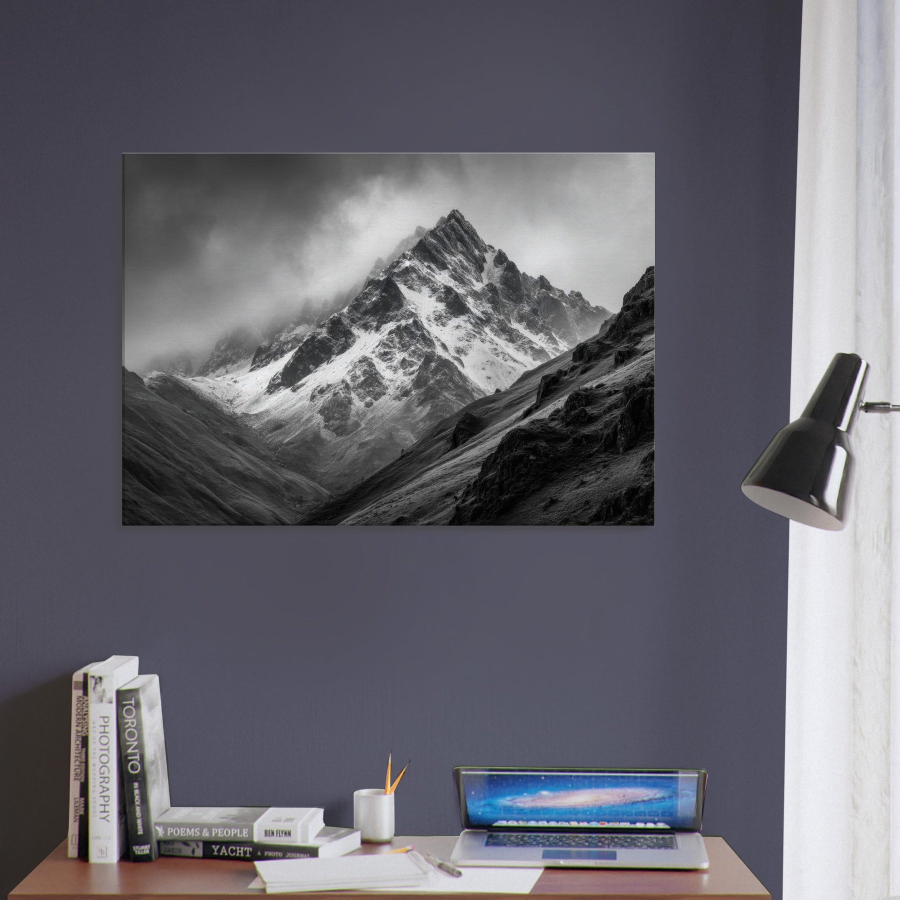 Let this monochrome ascent invite the room to breathe. The Mountains rise in stark contrast, their jagged silhouettes sculpting shadows across a quiet living space. Snow threads sparkle in soft light, while fog wraps the peaks in a hushed, timeless mood. This piece carries the discipline of winter and the poetry of scale, turning a wall into a window to the high country. It pairs with warm textures or cool minimal decor, creating depth, focus, and a calm, panoramic atmosphere.