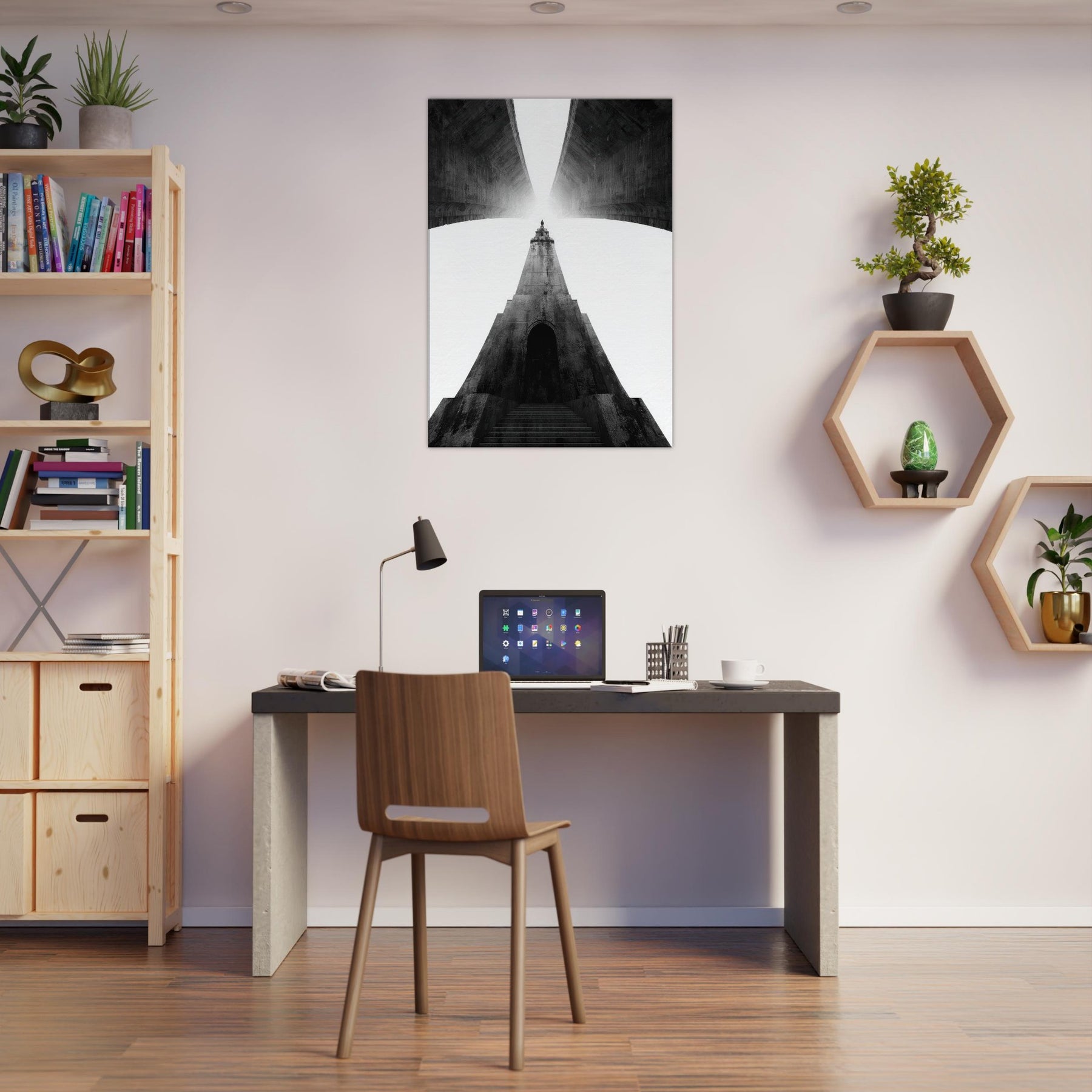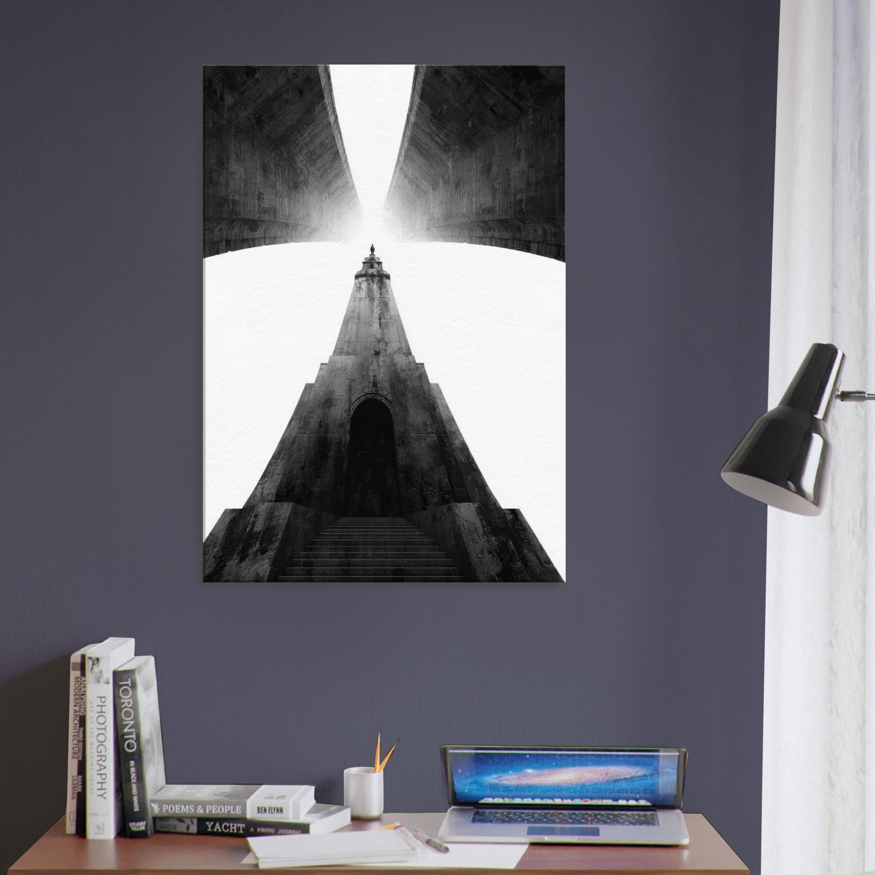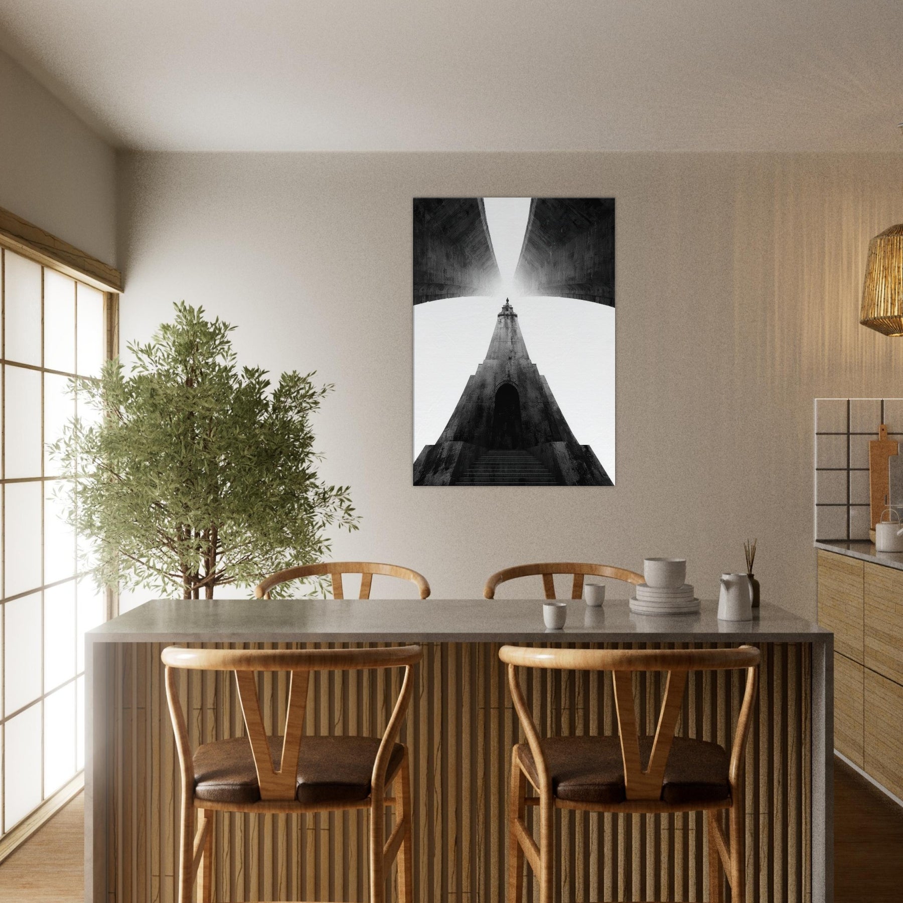 Let the Totem rise at the heart of your room, a stark monument that quiets the mid day clamor and gathers the eye with its silent gravity. In monochrome chiaroscuro, the totem’s angular silhouette threads a corridor of light, inviting contemplation and calm. The artwork carries a hushed drama shadowed arches, austere steps finishing with a crown of stillness. Place it in a living room or entryway to anchor the space, invite reflection, and add a timeless, otherworldly pulse to modern décor.