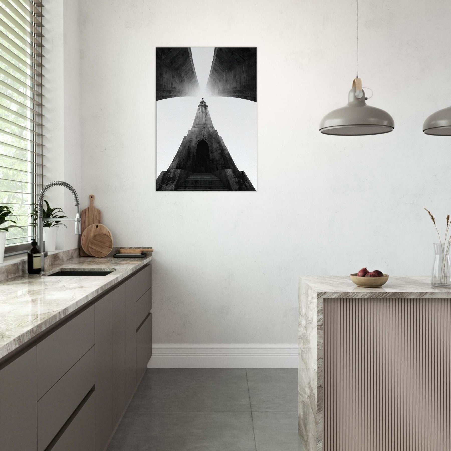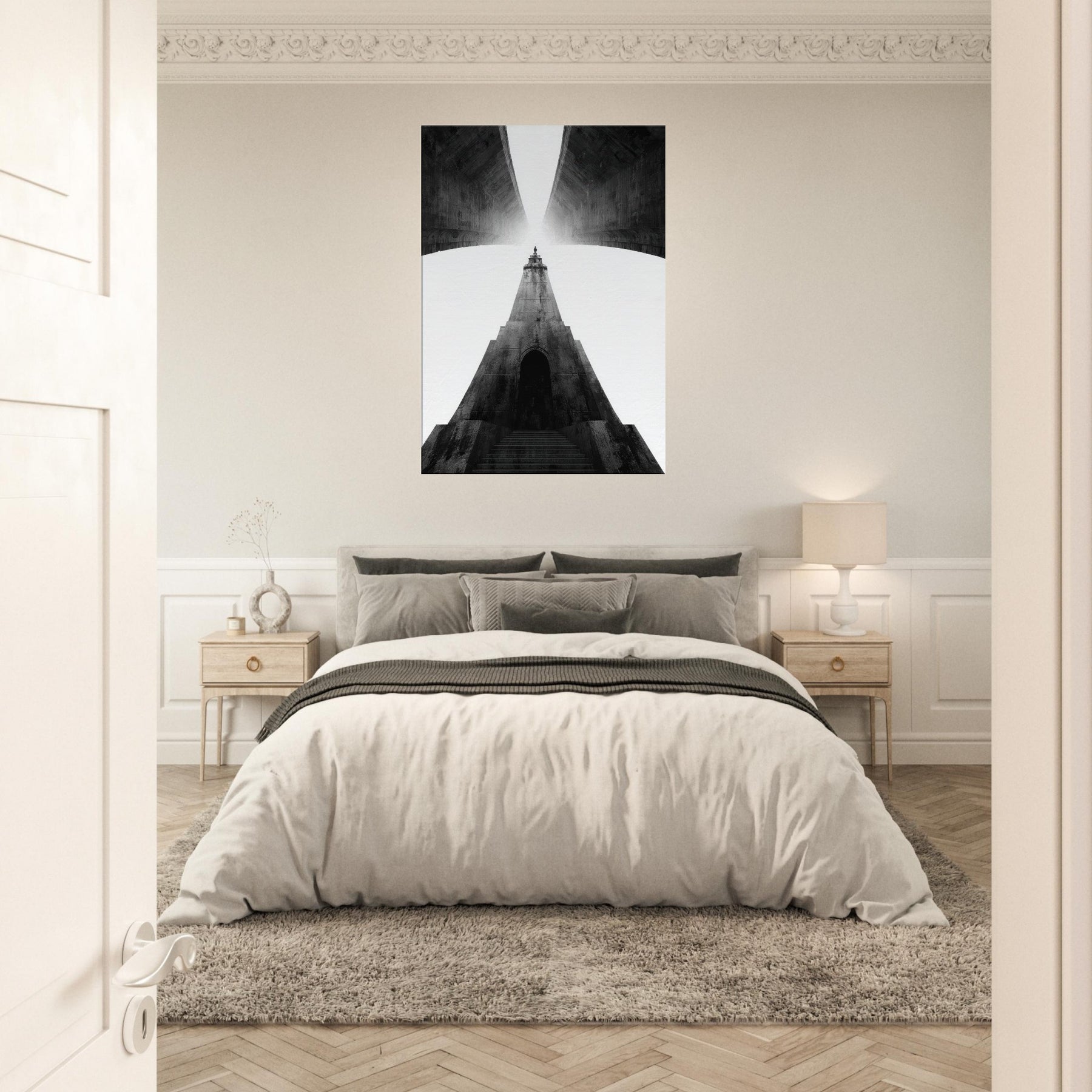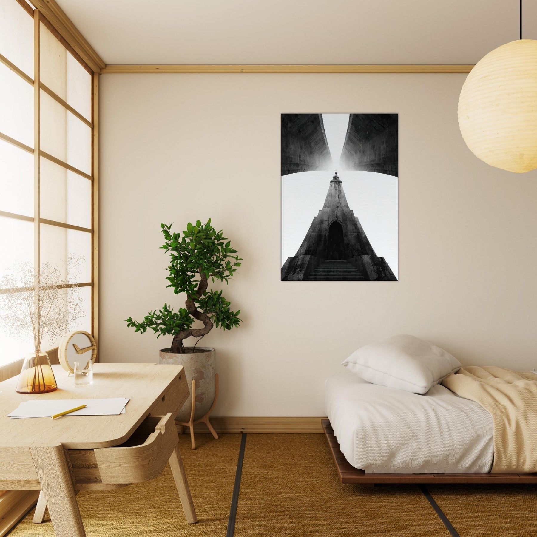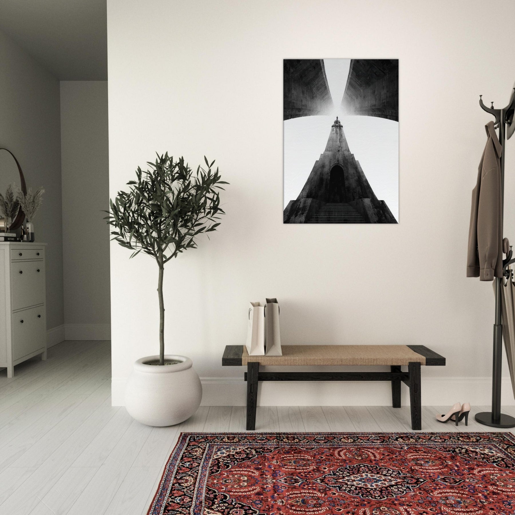 Let the Totem rise at the heart of your room, a stark monument that quiets the mid day clamor and gathers the eye with its silent gravity. In monochrome chiaroscuro, the totem’s angular silhouette threads a corridor of light, inviting contemplation and calm. The artwork carries a hushed drama shadowed arches, austere steps finishing with a crown of stillness. Place it in a living room or entryway to anchor the space, invite reflection, and add a timeless, otherworldly pulse to modern décor.