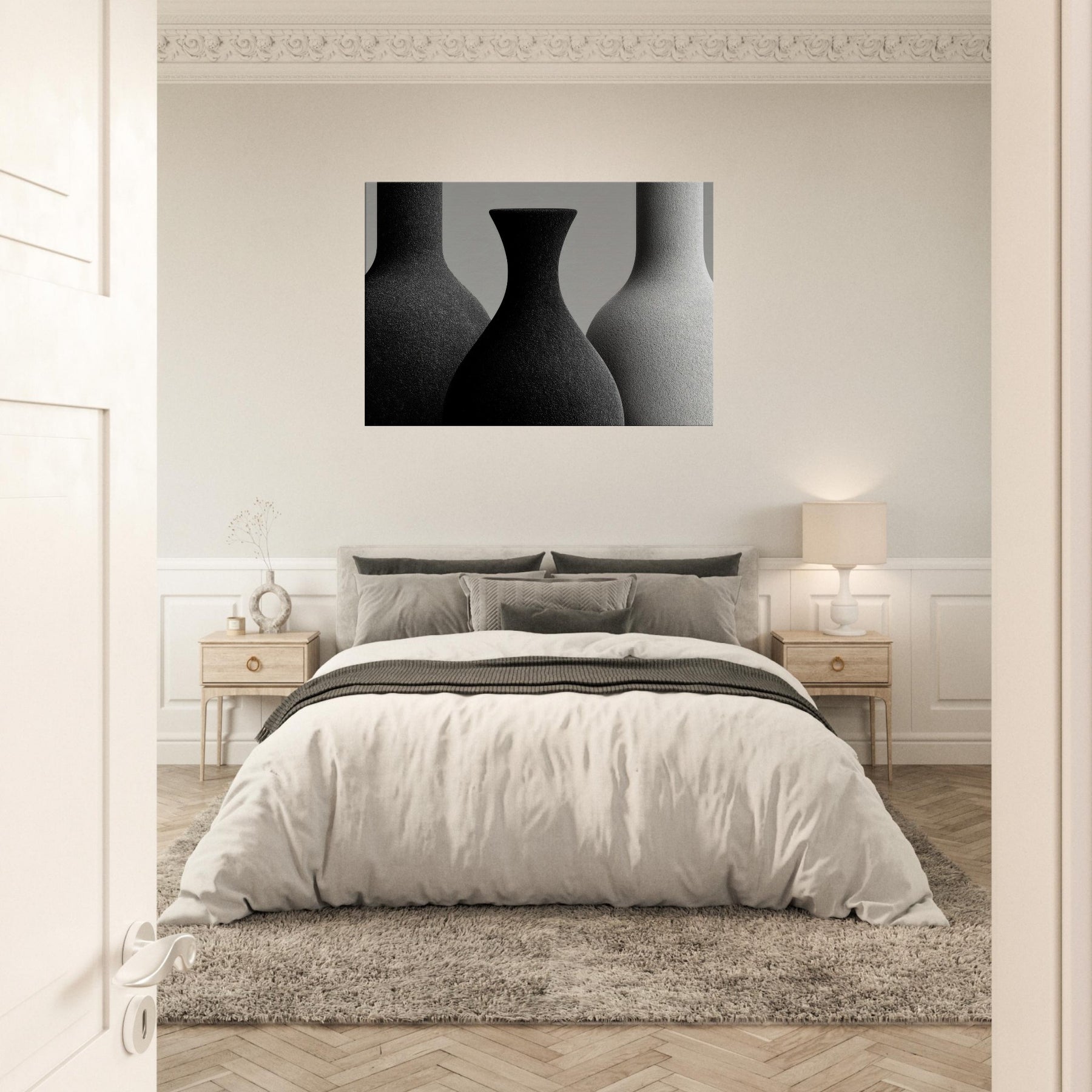 Vase Trio invites calm through a choreography of form and surface. In this intimate study of three vessels, the slender necks rise like quiet witnesses, their matte textures absorbing light and sound alike. The piece creates a serene stillness in any living space, a visual whisper that pairs with soft textiles and warm wood. Let the Vase Trio anchor a reading corner or mantel, turning everyday moments into a ritual of balance, contrast, and refined restraint.