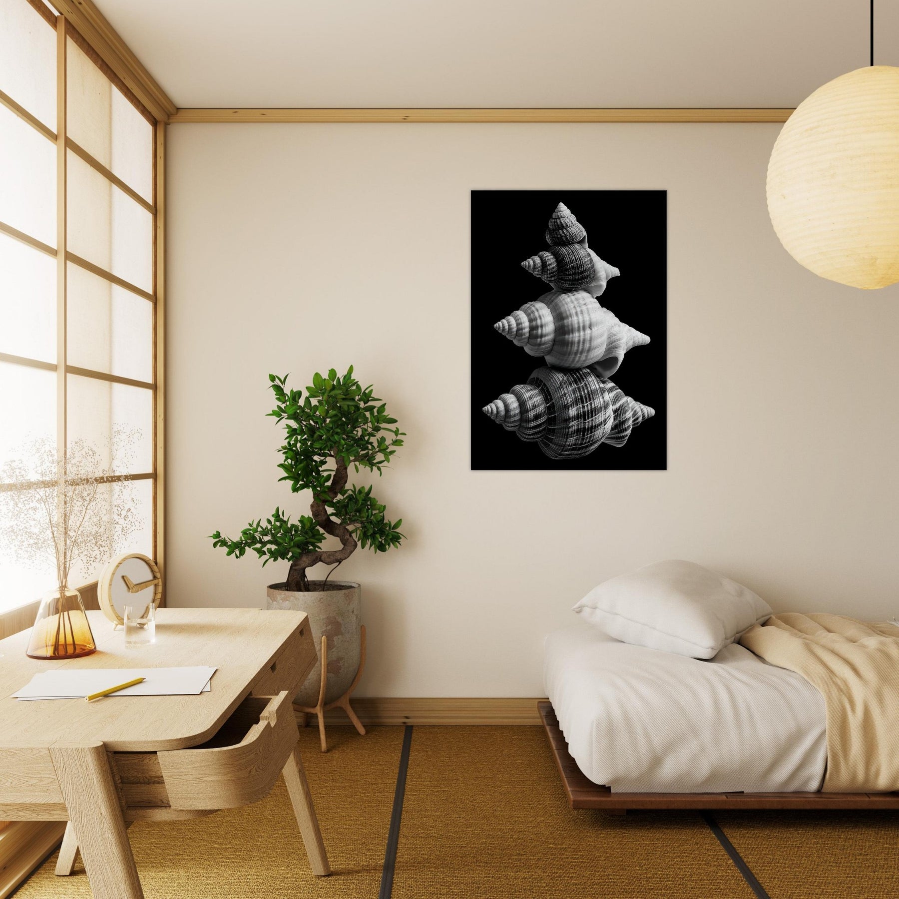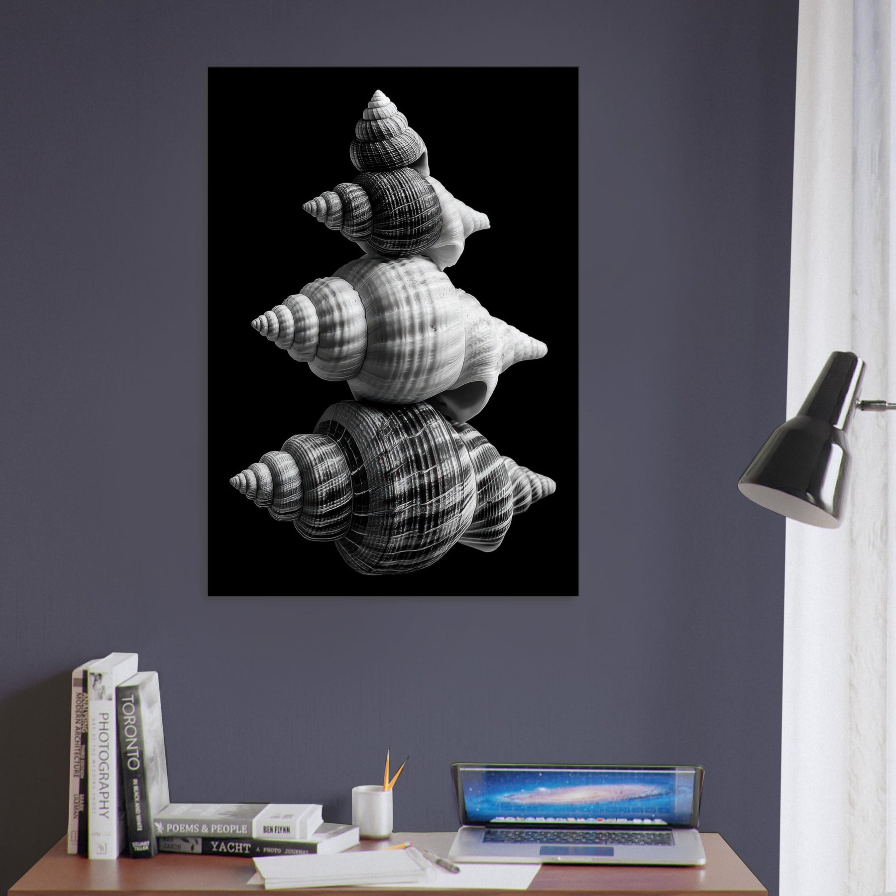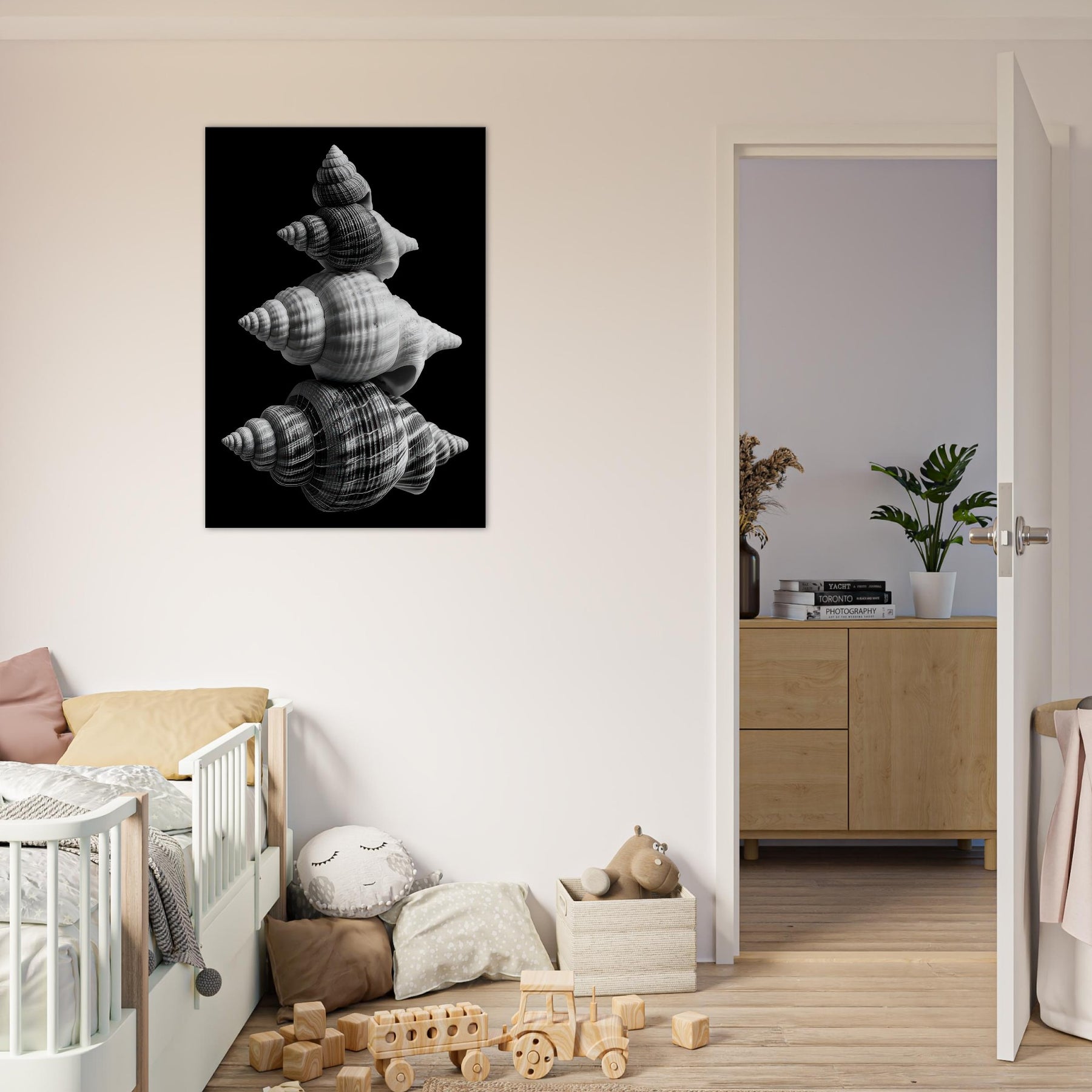 Seashells Trio distills the quiet drama of the shoreline into a contemplative centerpiece. In stark black and white, the layered spirals rise and fall like tide worn whispers, inviting a calm, coastal mood into the room. This study in texture and form catches light at every ridge, casting subtle shadows that shift with the day. Hung solo or grouped, Seashells Trio adds a sophisticated kinetic stillness to a living room or bedroom, elevating walls with quiet elegance and timeless charm.