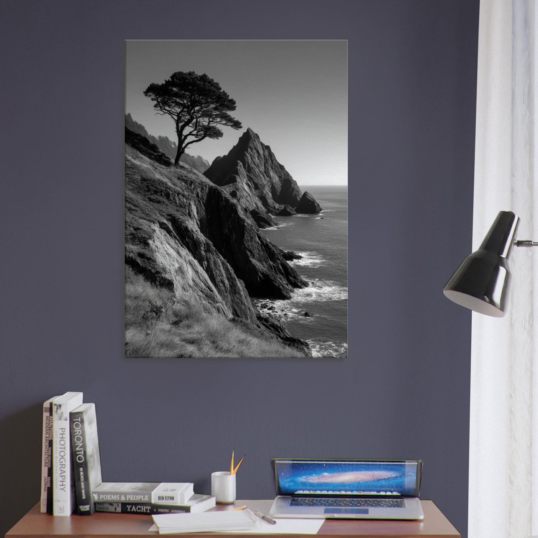 Where land meets sea, 'Coastal Cliffs' unfolds in a hush of black and white, a study in quiet daring. The jagged silhouettes cut a clean rhythm against the light, a timeless reminder that nature writes in bold, minimal strokes. This wall art invites your space to breathe its deep shadows and pale highlights transform a living room into a contemplative shoreline, adding texture and mood without shouting. Perfect for modern interiors seeking clarity, contrast, and a touch of wild beauty.