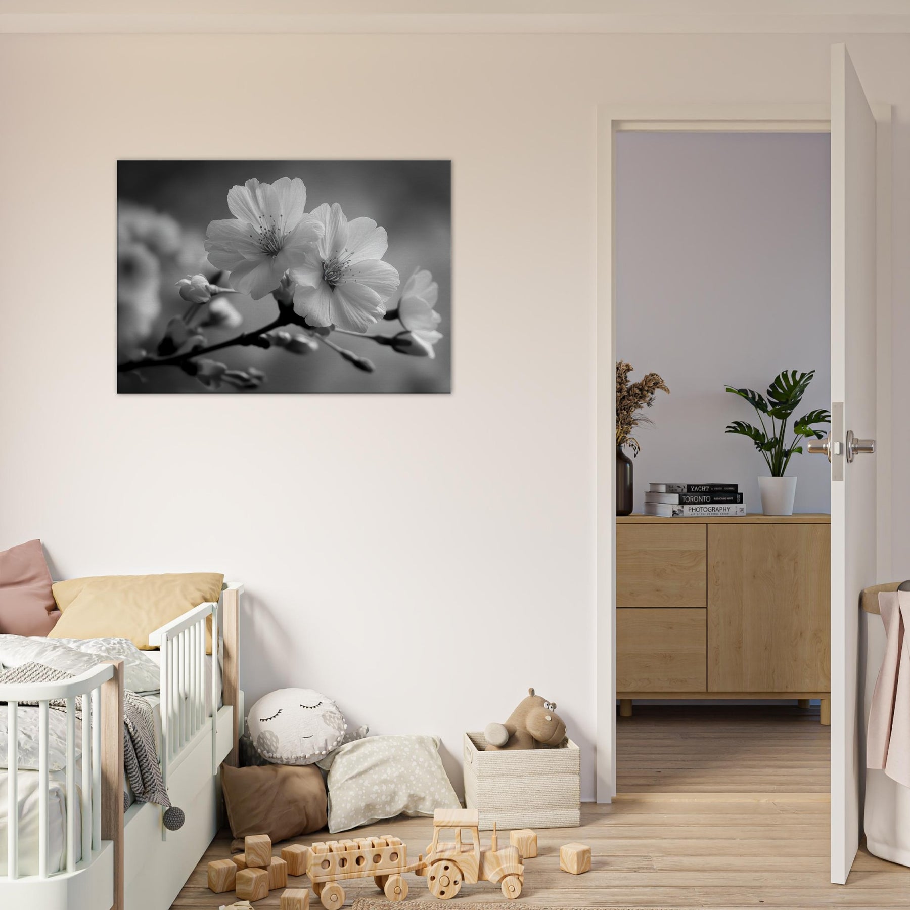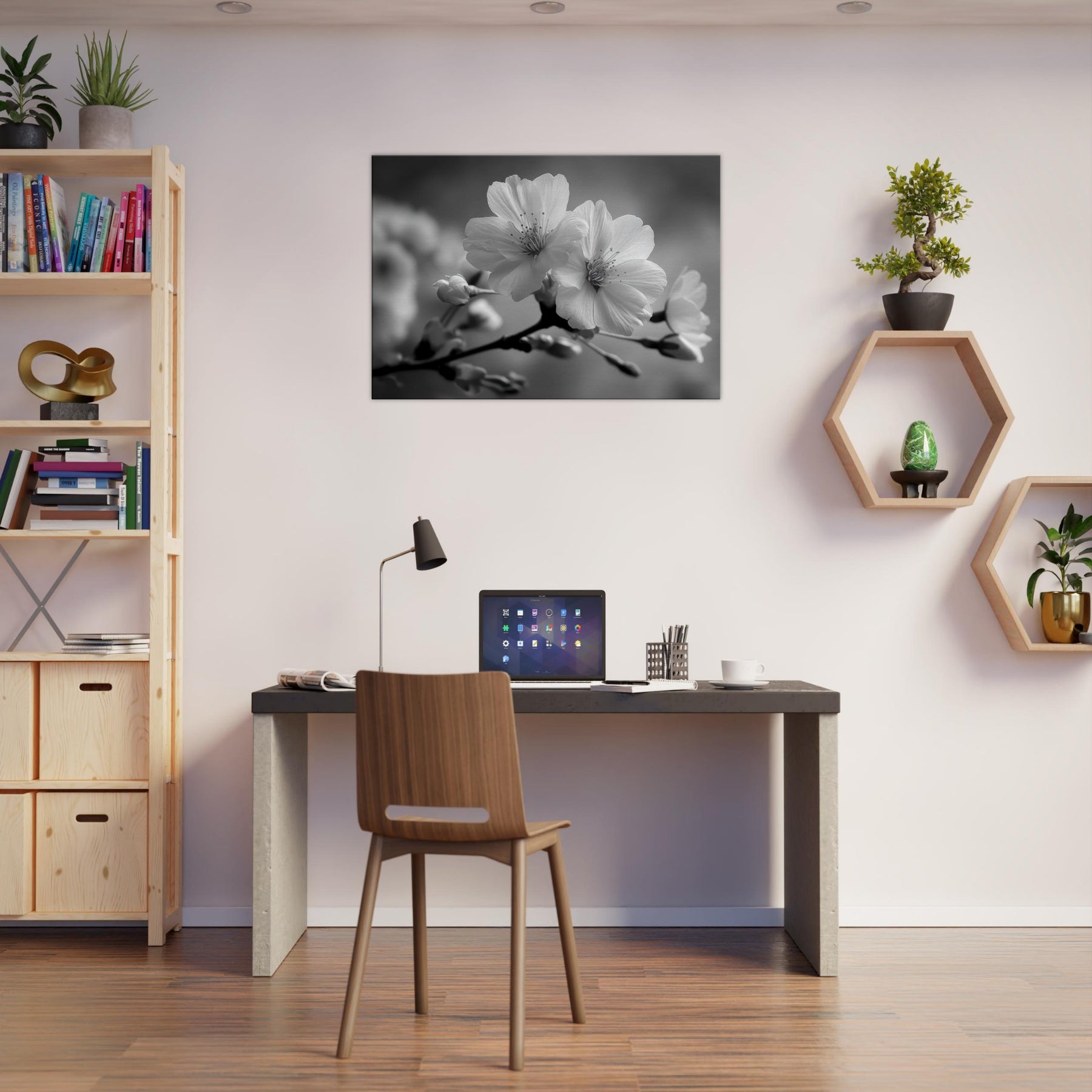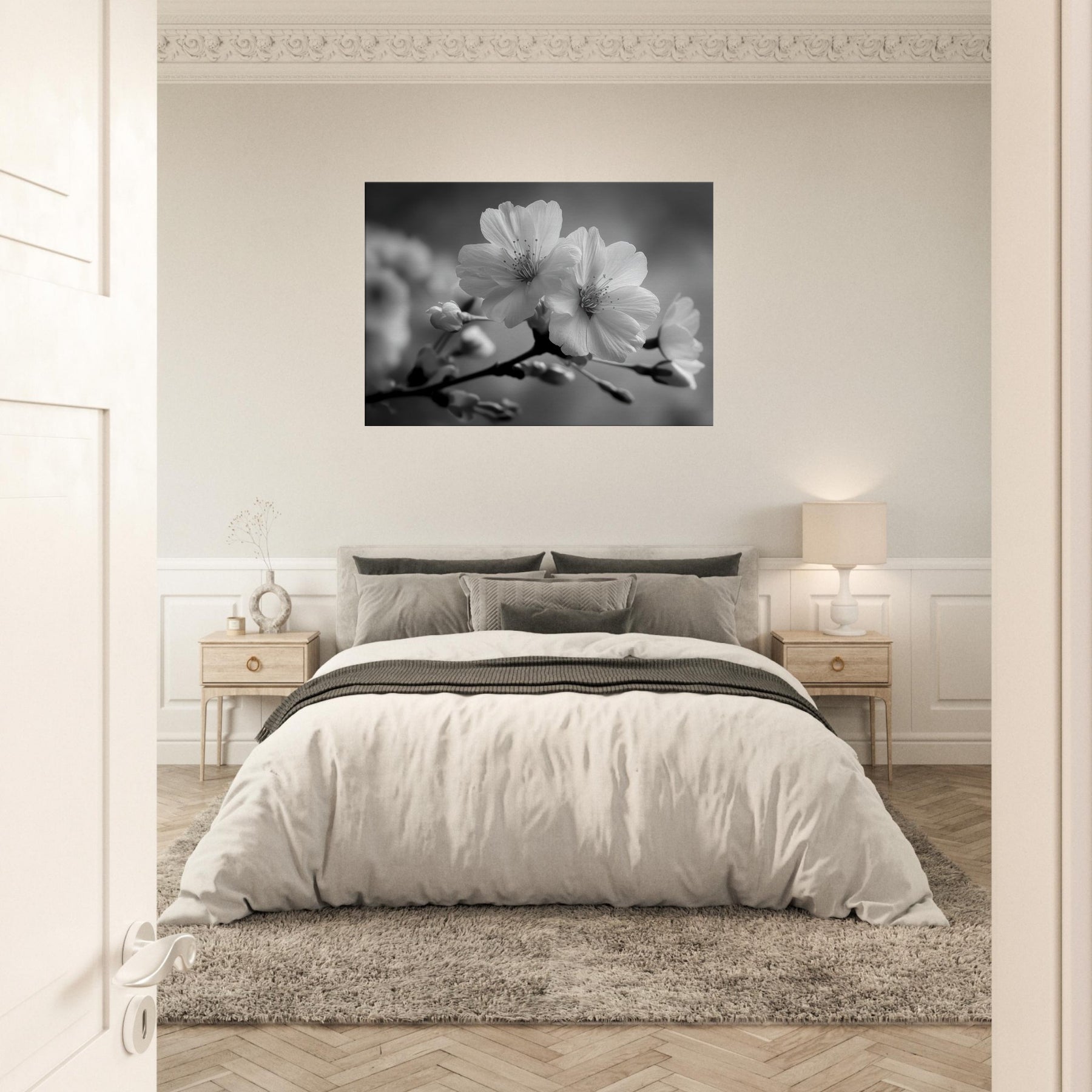 Embrace a quiet season of grace with this Cherry Blossom study, rendered in elegant black and white. The artwork frames a fleeting moment, the soft curve of petals, the tremor of stamens, into a timeless breath that calms a room. Its restrained contrast invites sunlight to play across walls while concealing no warmth of memory. Perfect for a living space seeking serenity, it pairs with wood and metal, creating a balance of nature and minimalism that makes every glance feel intimate and refreshed.