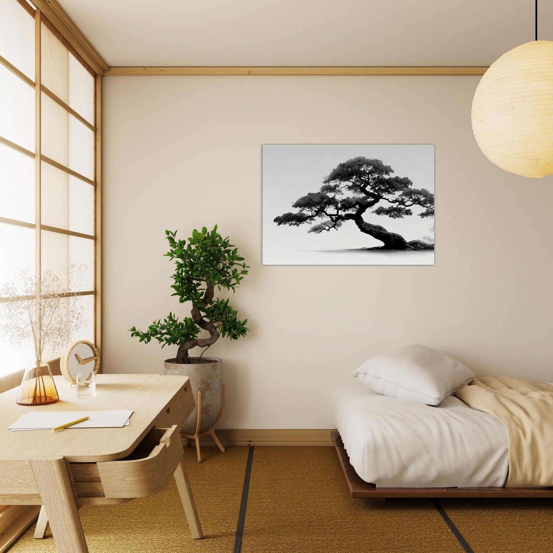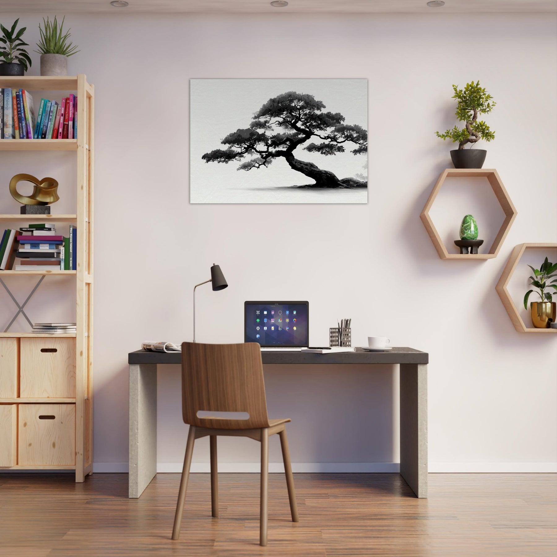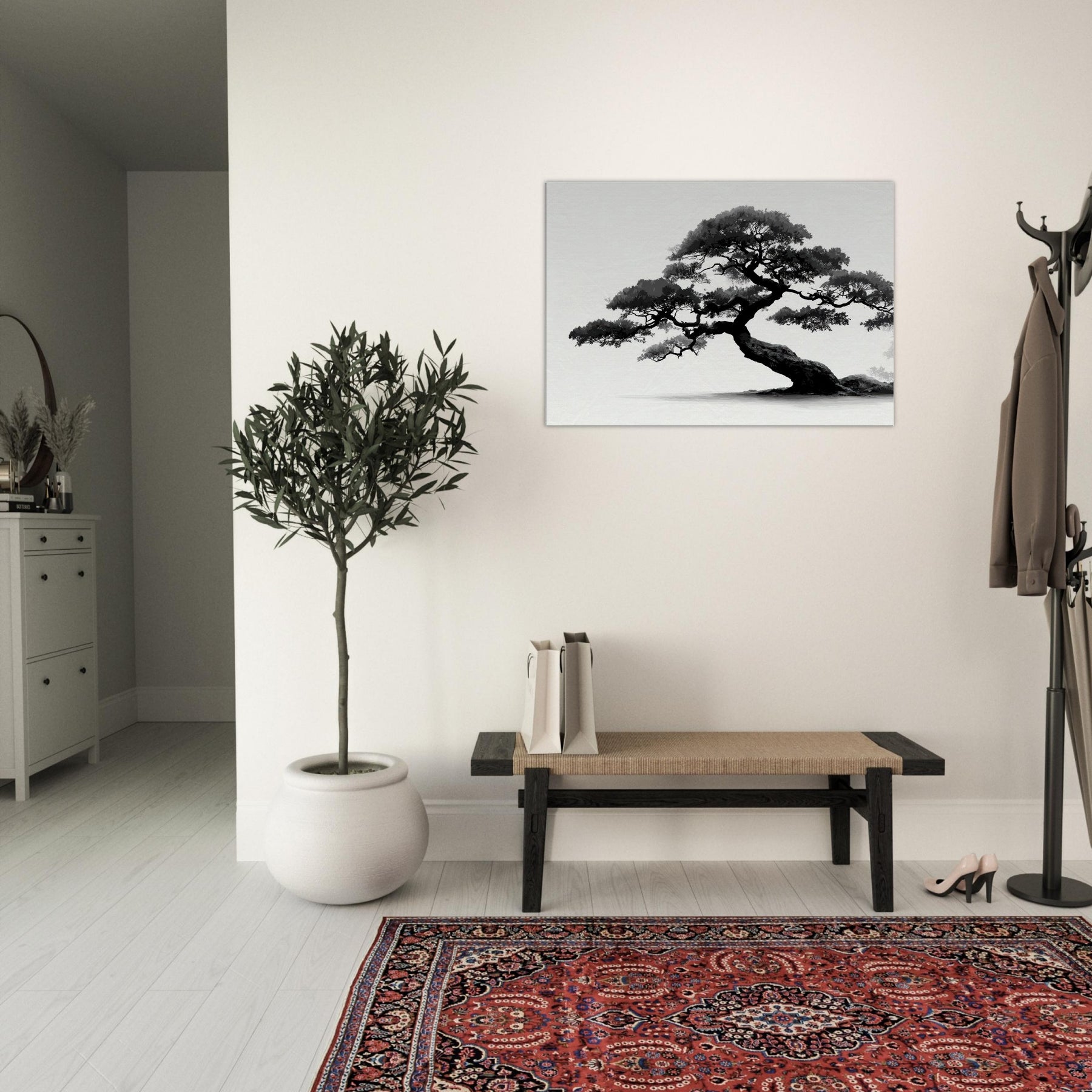 With a quiet gravity, the Bonsai Silhouette invites a moment of pause. The stark black form and diffuse gray foliage breathe a meditative rhythm, transforming walls into a tranquil stage where light and shadow converse. This monochrome study glides easily beside a reading nook or corridor, offering a serene focal point that enhances warmth without shouting. It invites contemplation, making your space feel timeless, balanced, and gently alive.