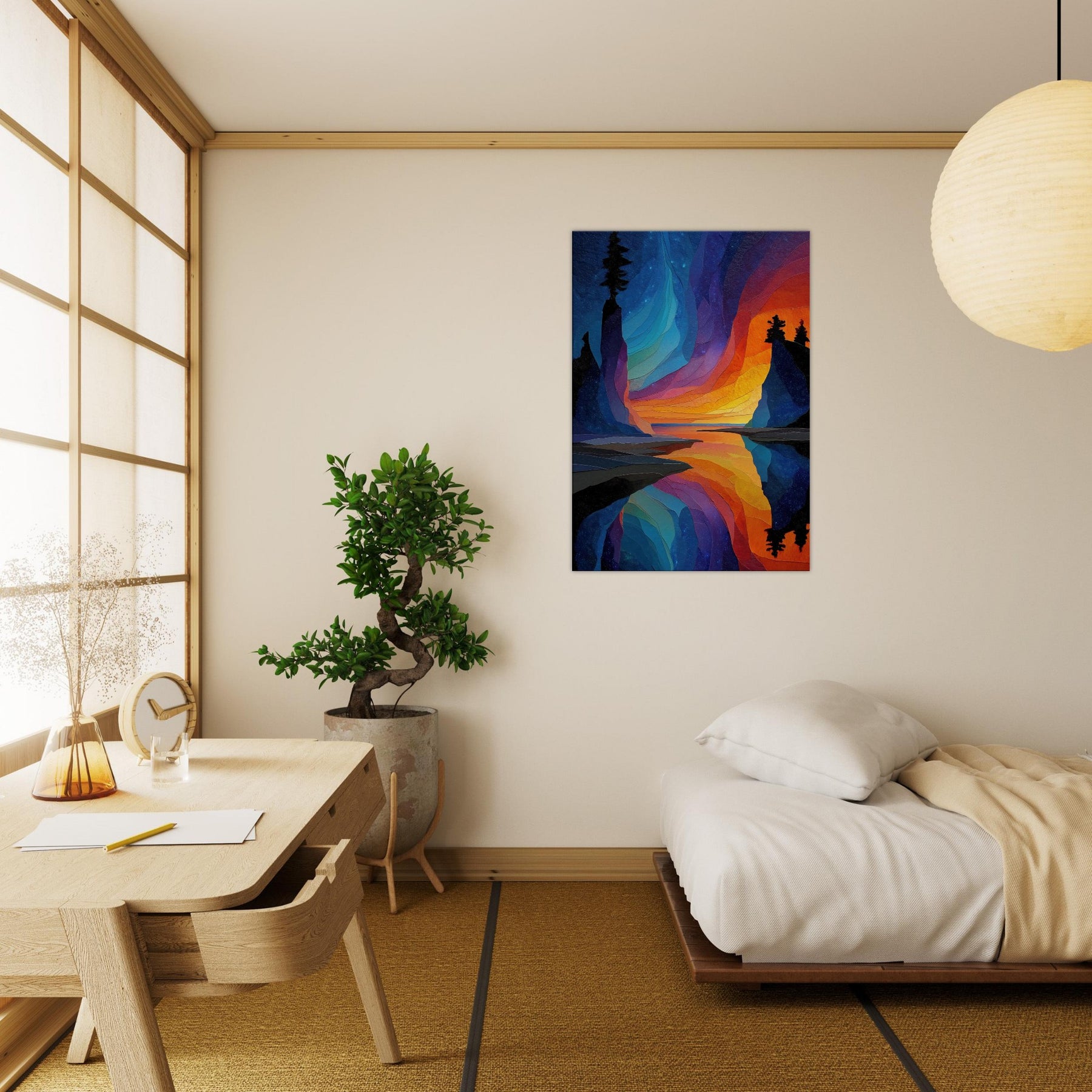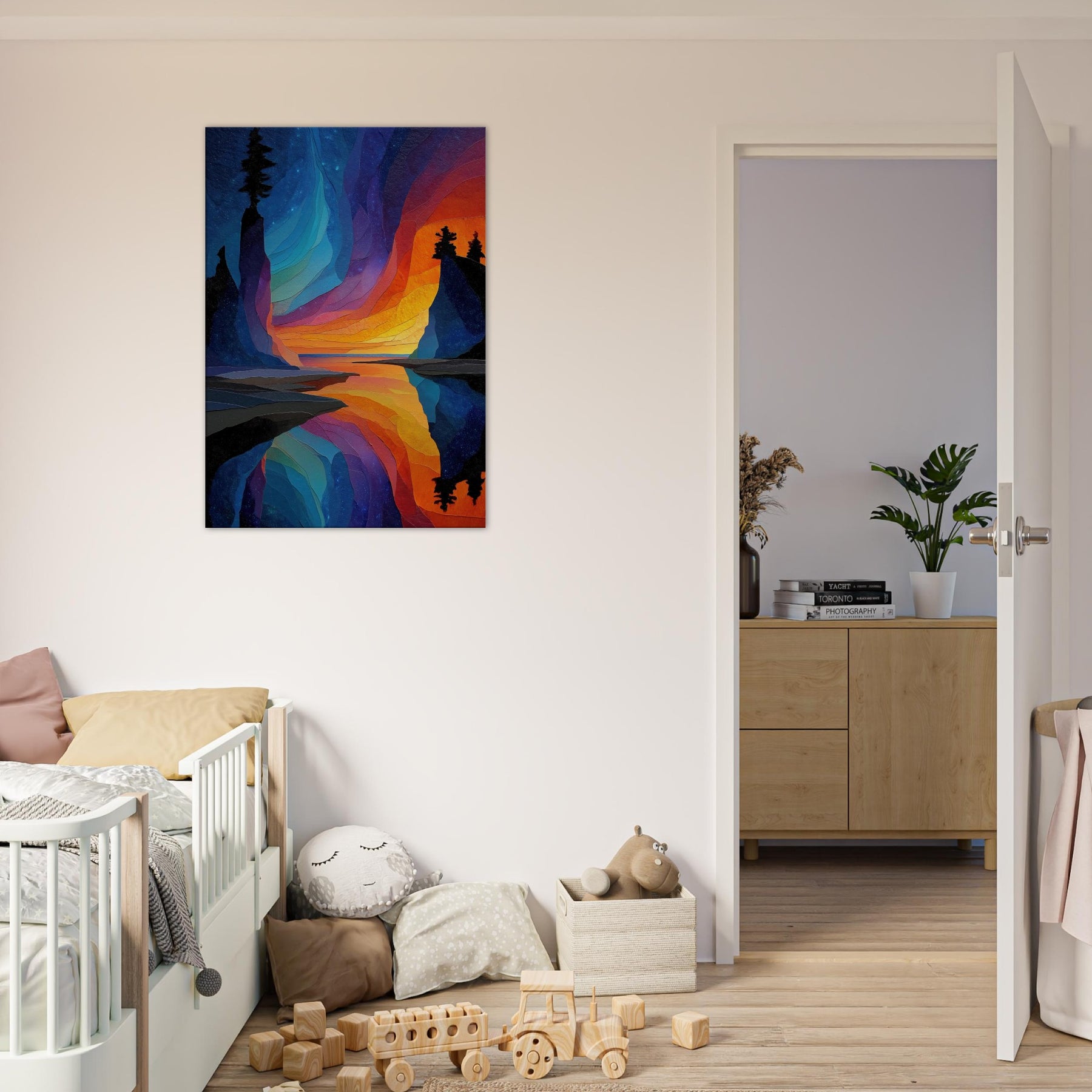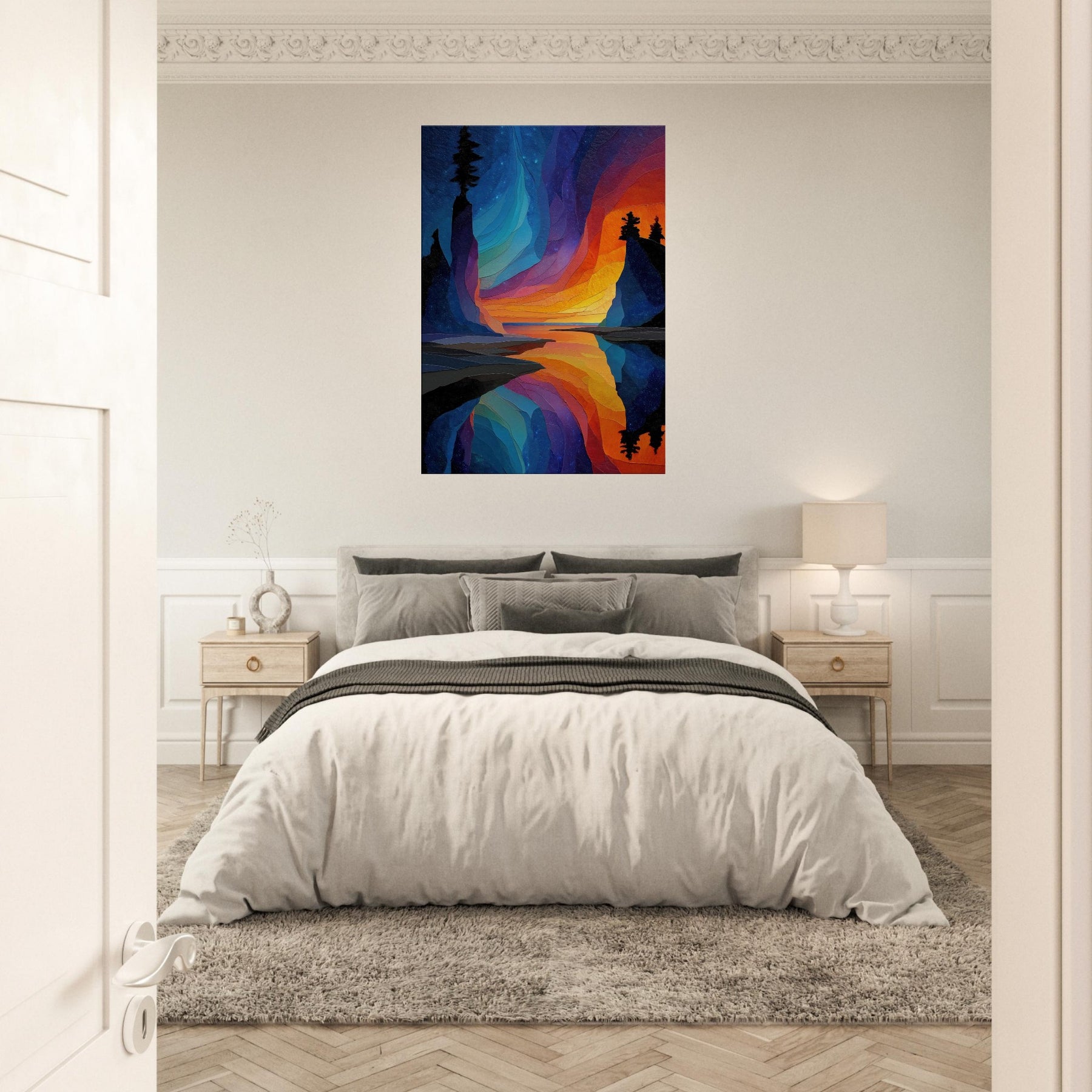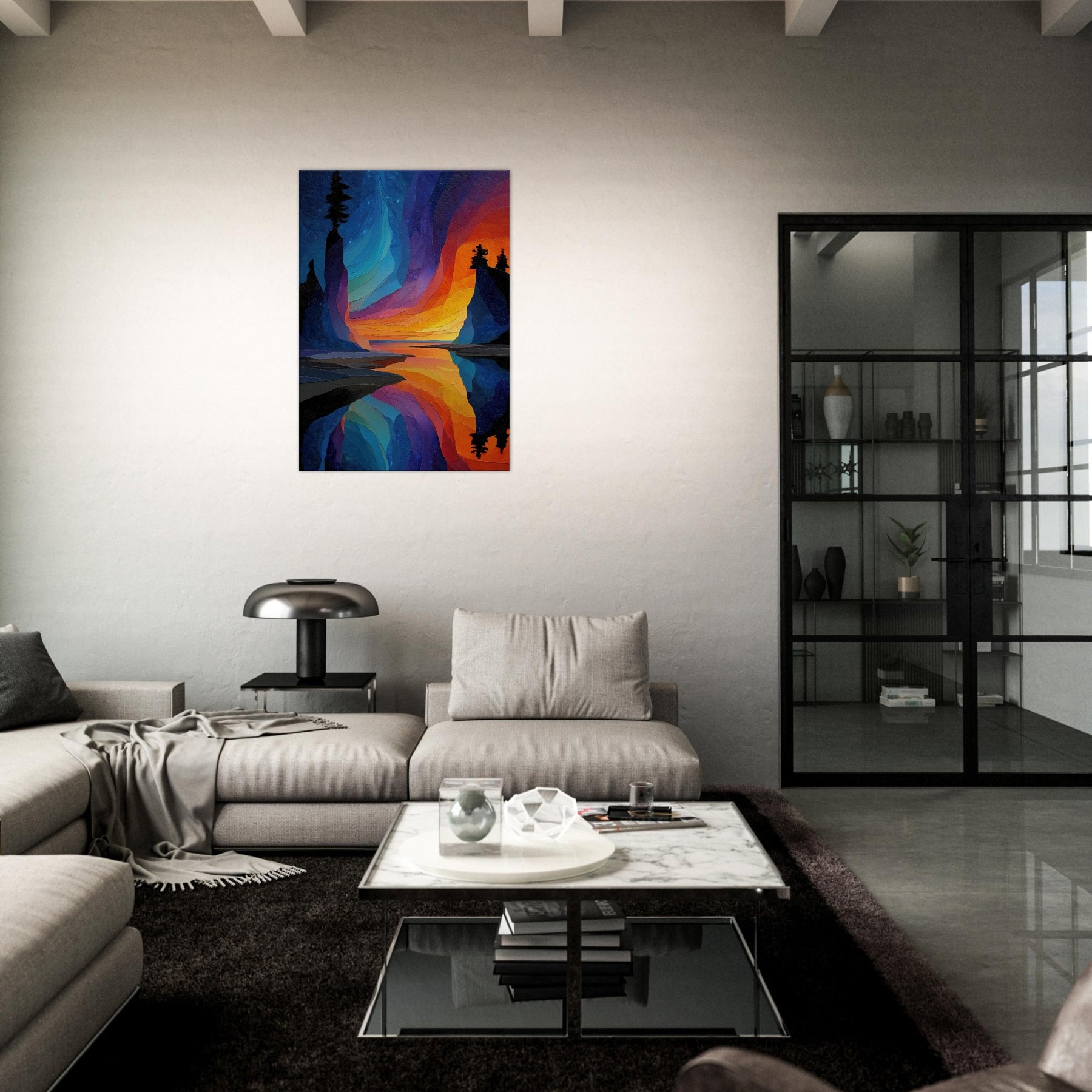 Enter a realm where light folds into color, where the Aurora Borealis becomes a quiet, radiant companion. This abstract dissolves sky and water into sweeping bands of dusk and dawn, inviting calm, wonder, and a touch of the extraordinary. Its luminous gradients glow softly in the room, shifting with the day and the mood, enhancing a living space with dreamlike depth. Perfect over a sofa or in a hallway, it creates a contemplative refuge for everyday moments.