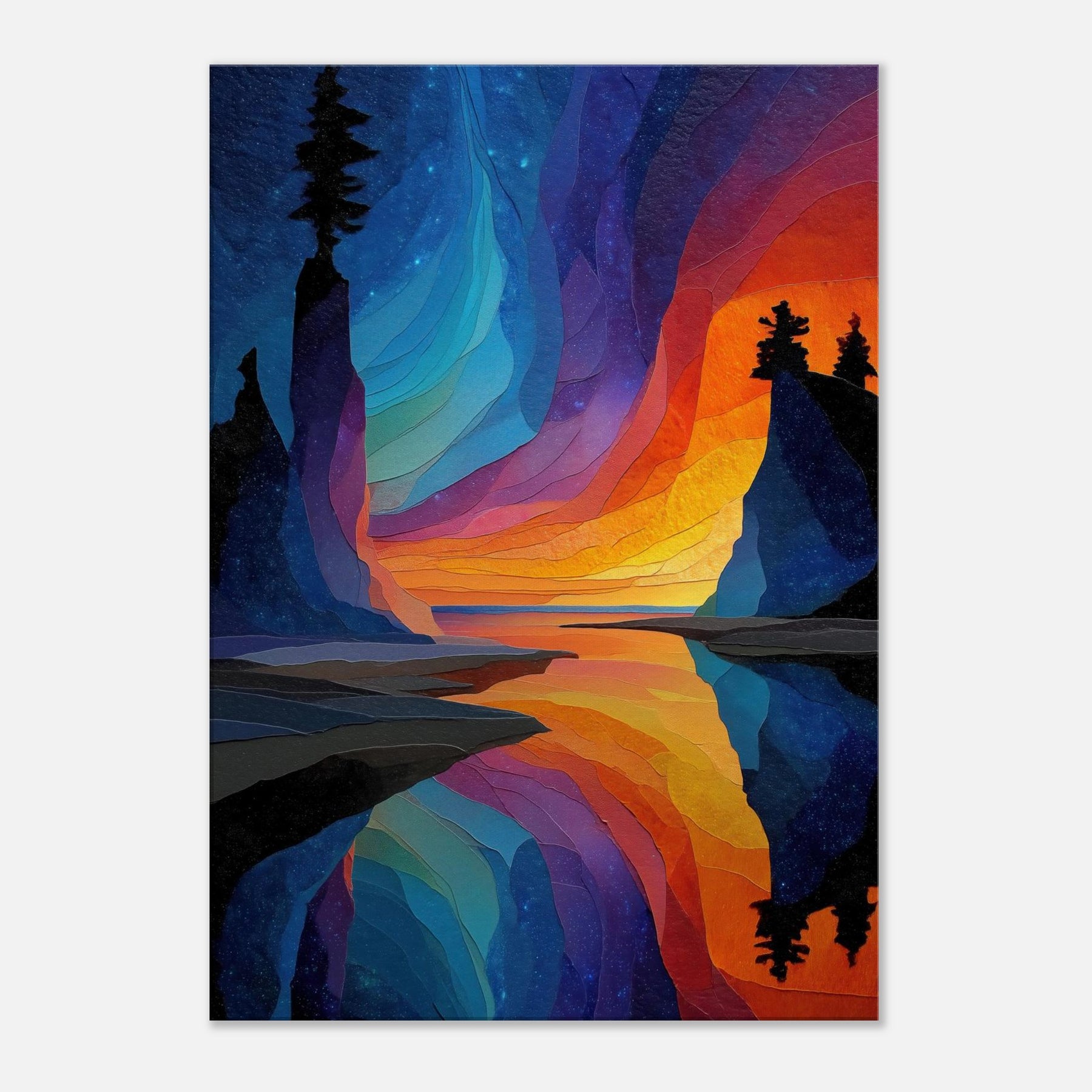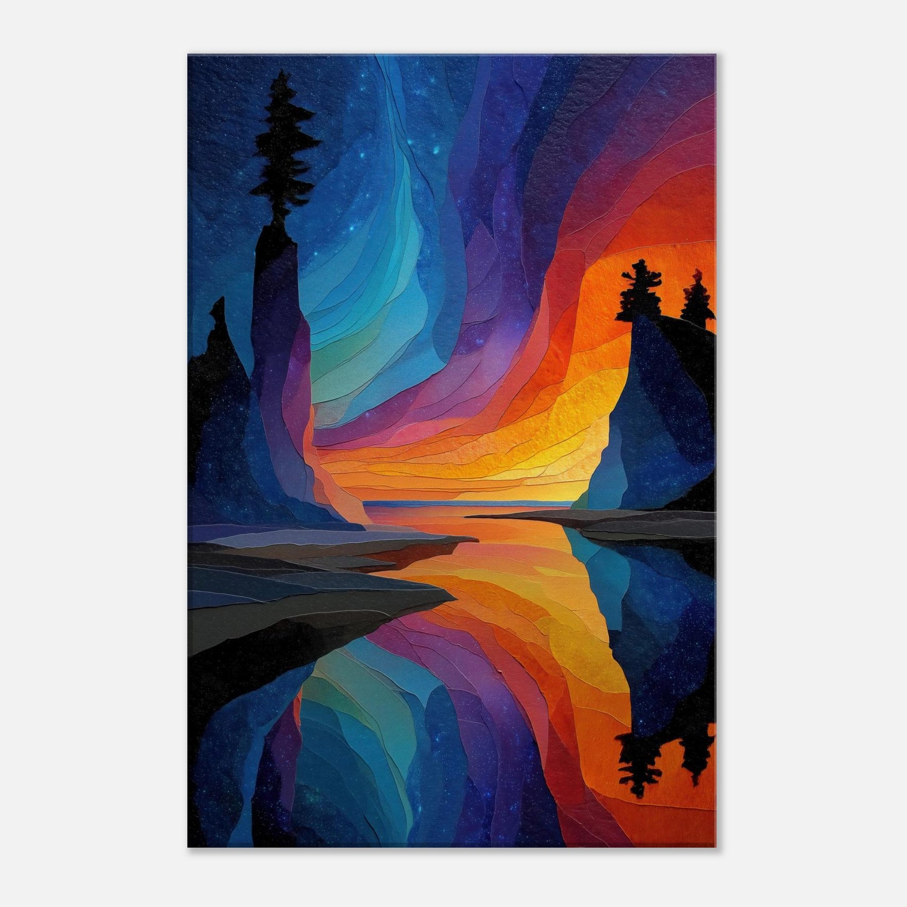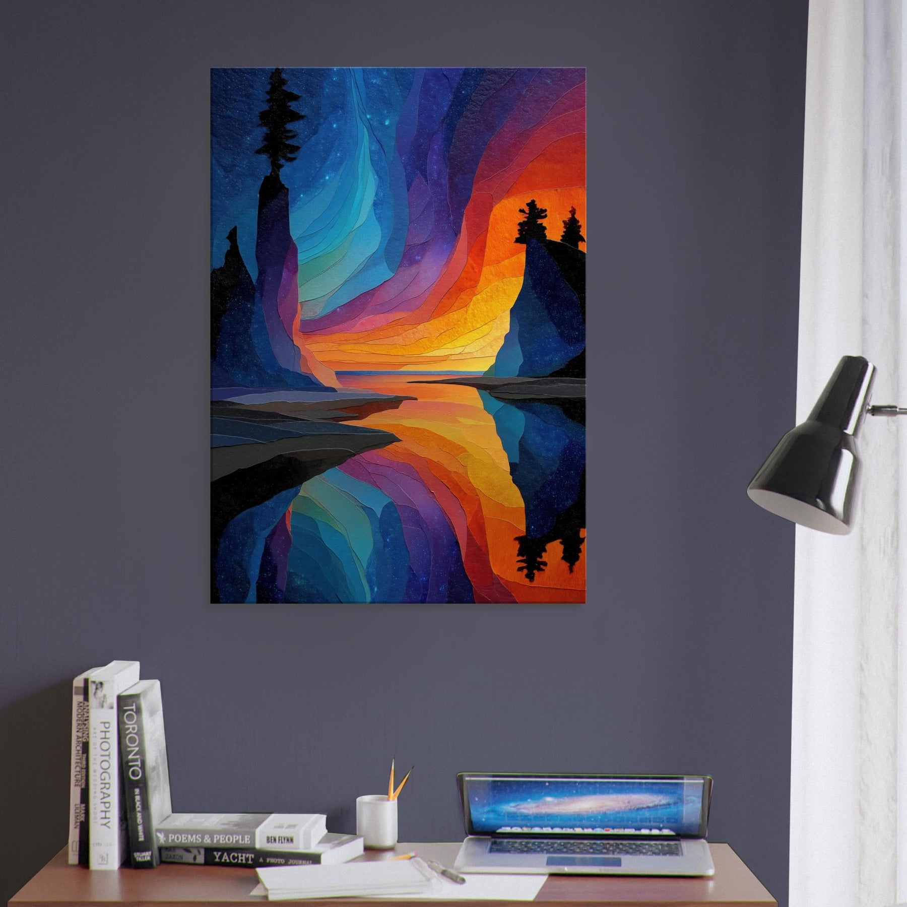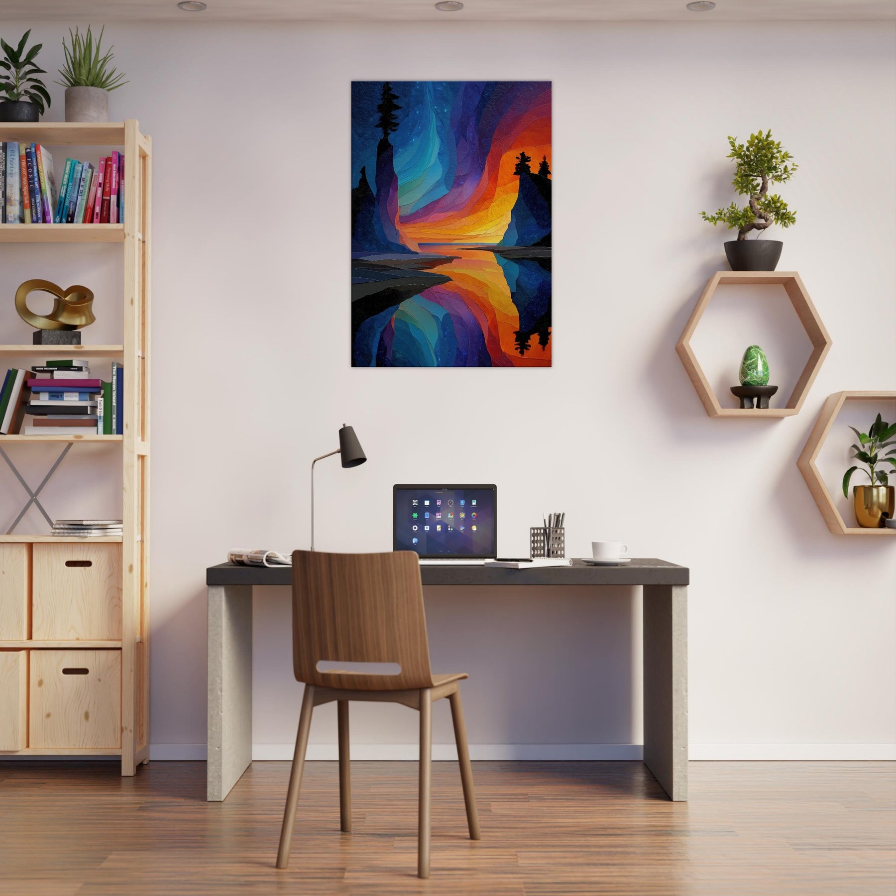 Enter a realm where light folds into color, where the Aurora Borealis becomes a quiet, radiant companion. This abstract dissolves sky and water into sweeping bands of dusk and dawn, inviting calm, wonder, and a touch of the extraordinary. Its luminous gradients glow softly in the room, shifting with the day and the mood, enhancing a living space with dreamlike depth. Perfect over a sofa or in a hallway, it creates a contemplative refuge for everyday moments.