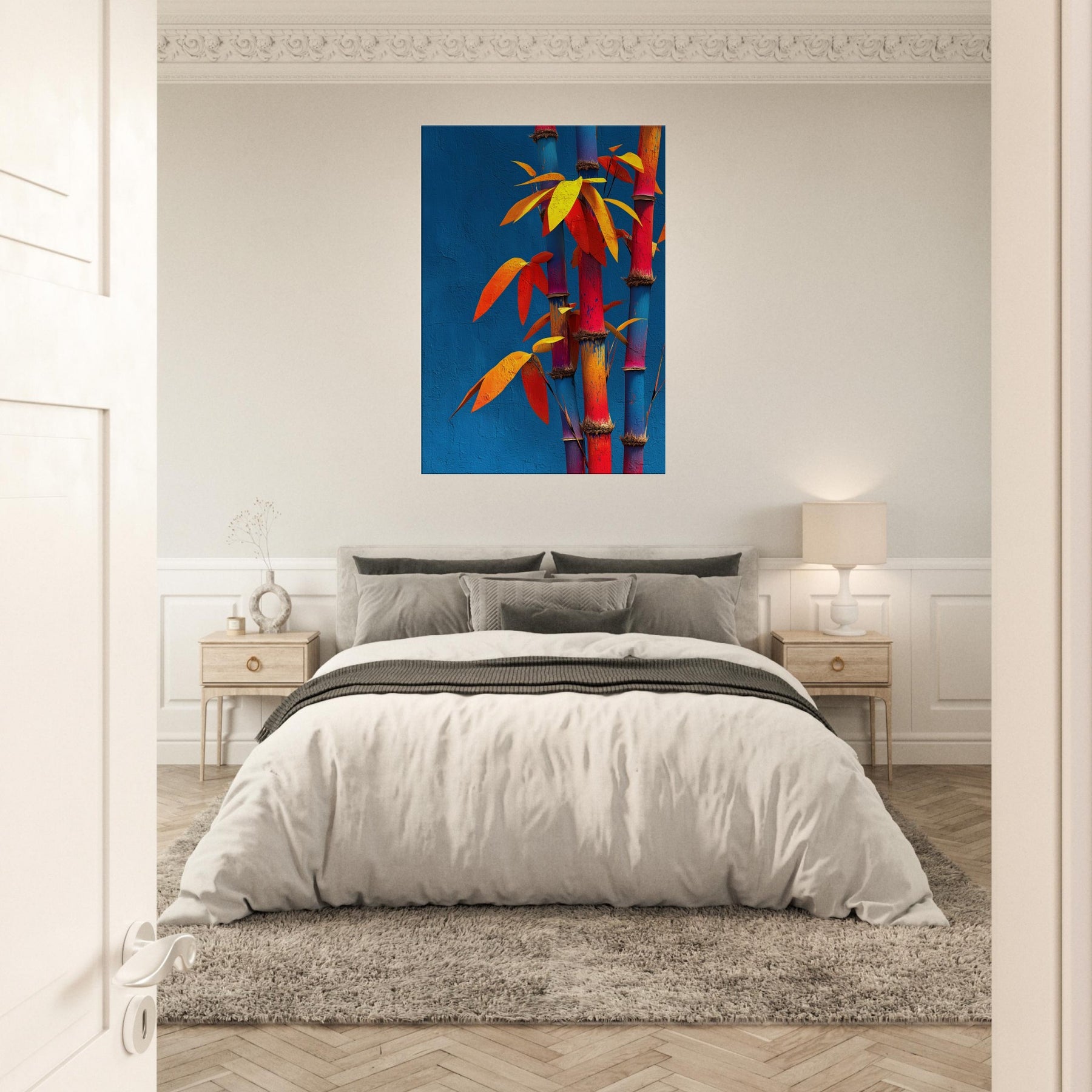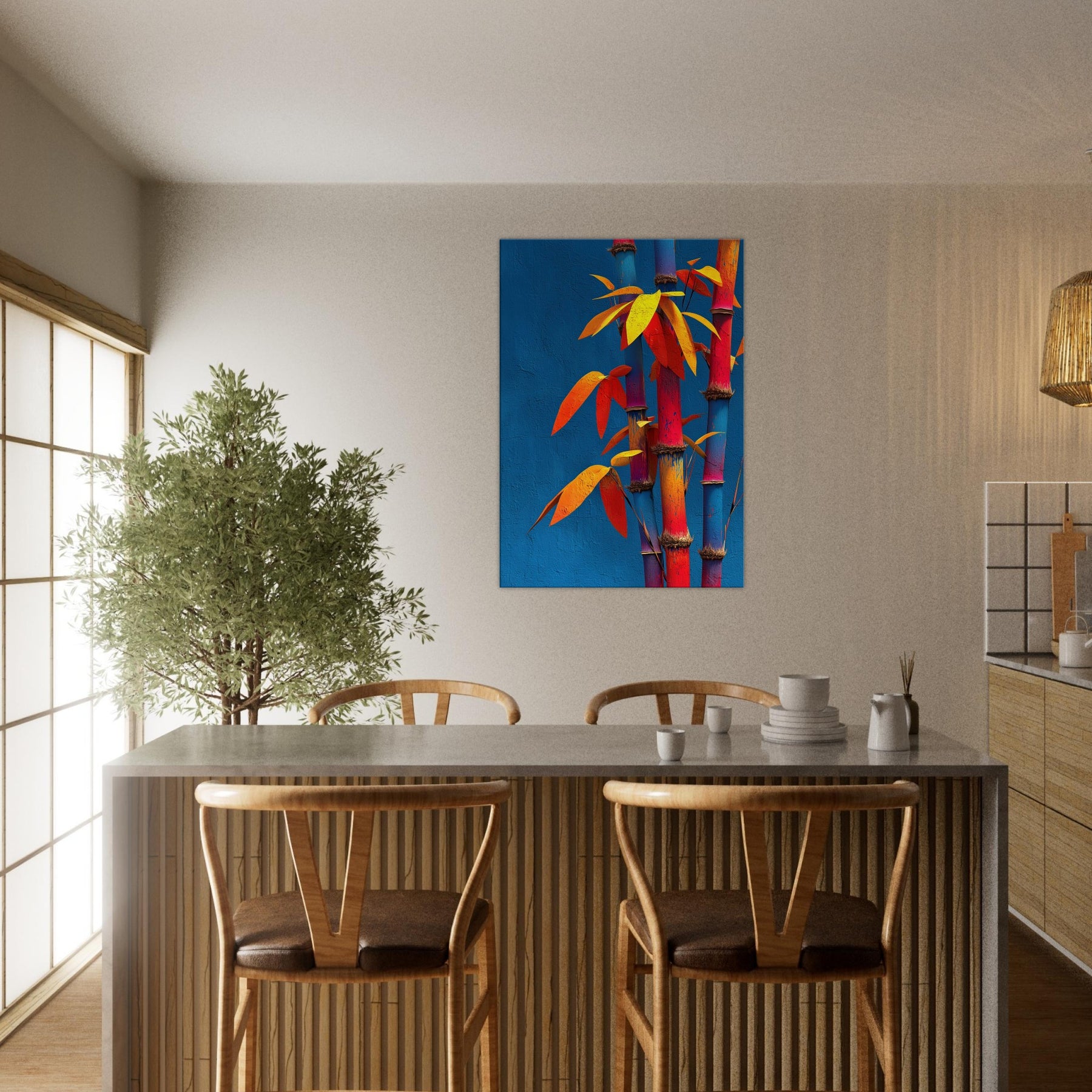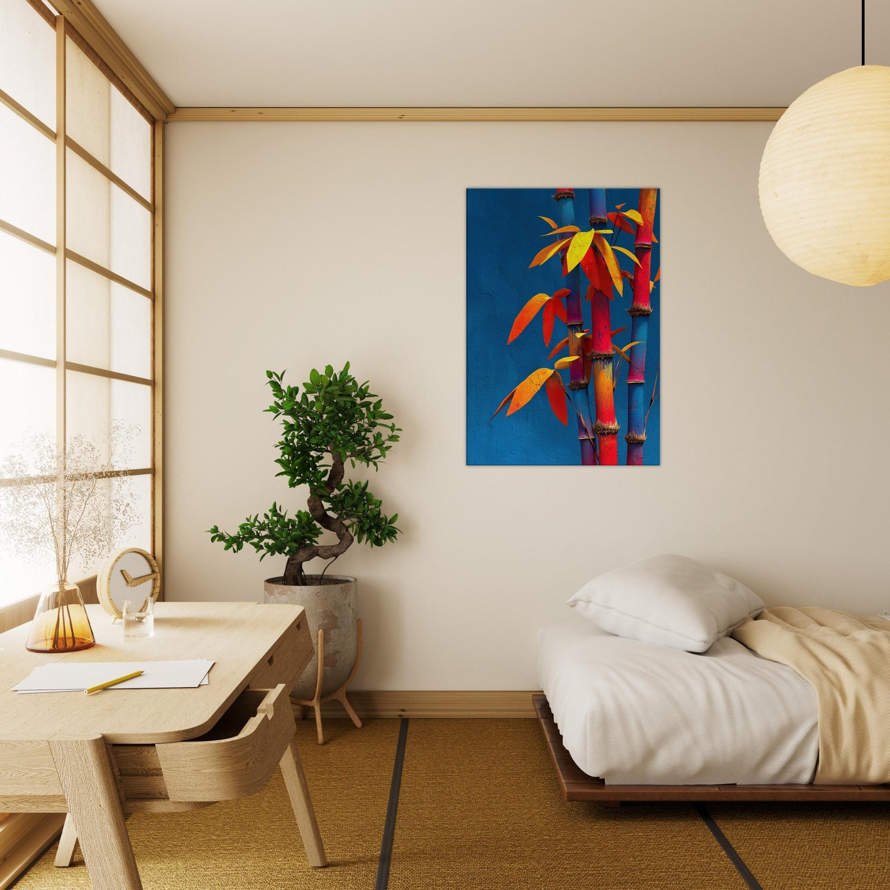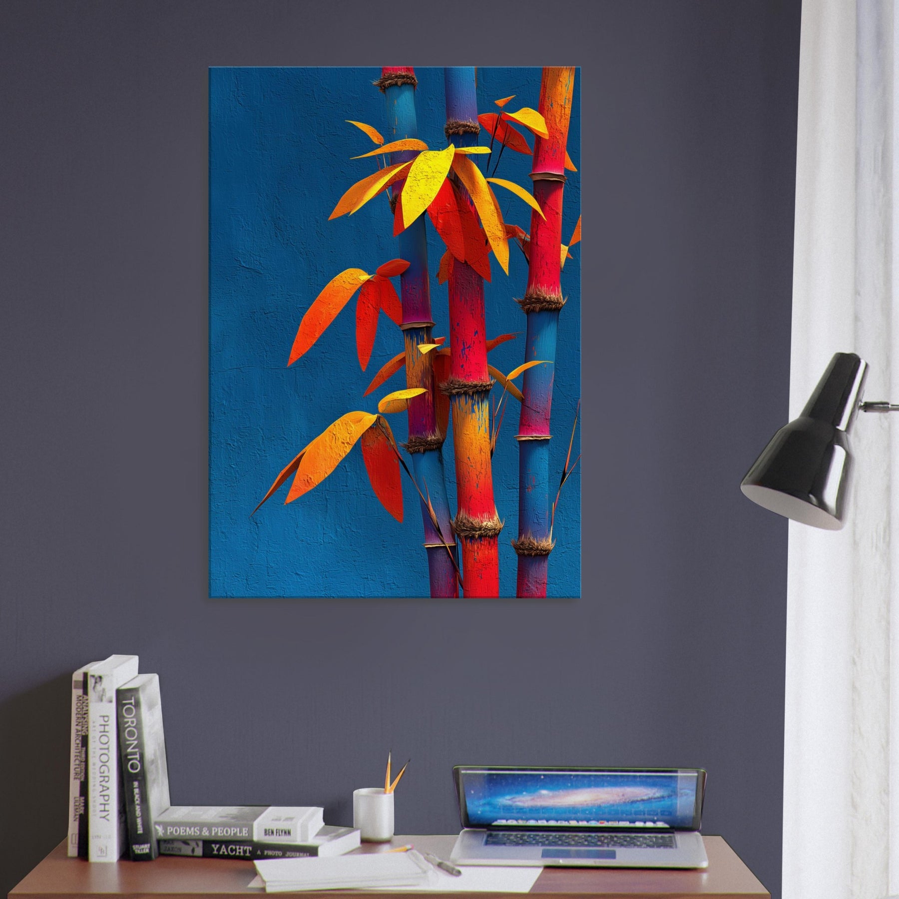 Bamboo Stalks rise like color born sentinels against a cobalt backdrop, reimagined in an abstract embrace of light and hue. This wall art invites calm and curiosity in equal measure the rhythm, the electric pinks and blues, the whisper of amber leaves. It breathes with your room, turning quiet corners into focal points and everyday spaces into an artful escape. Imagine mornings bathed in color or evenings softened by luminous, nature inspired stillness.