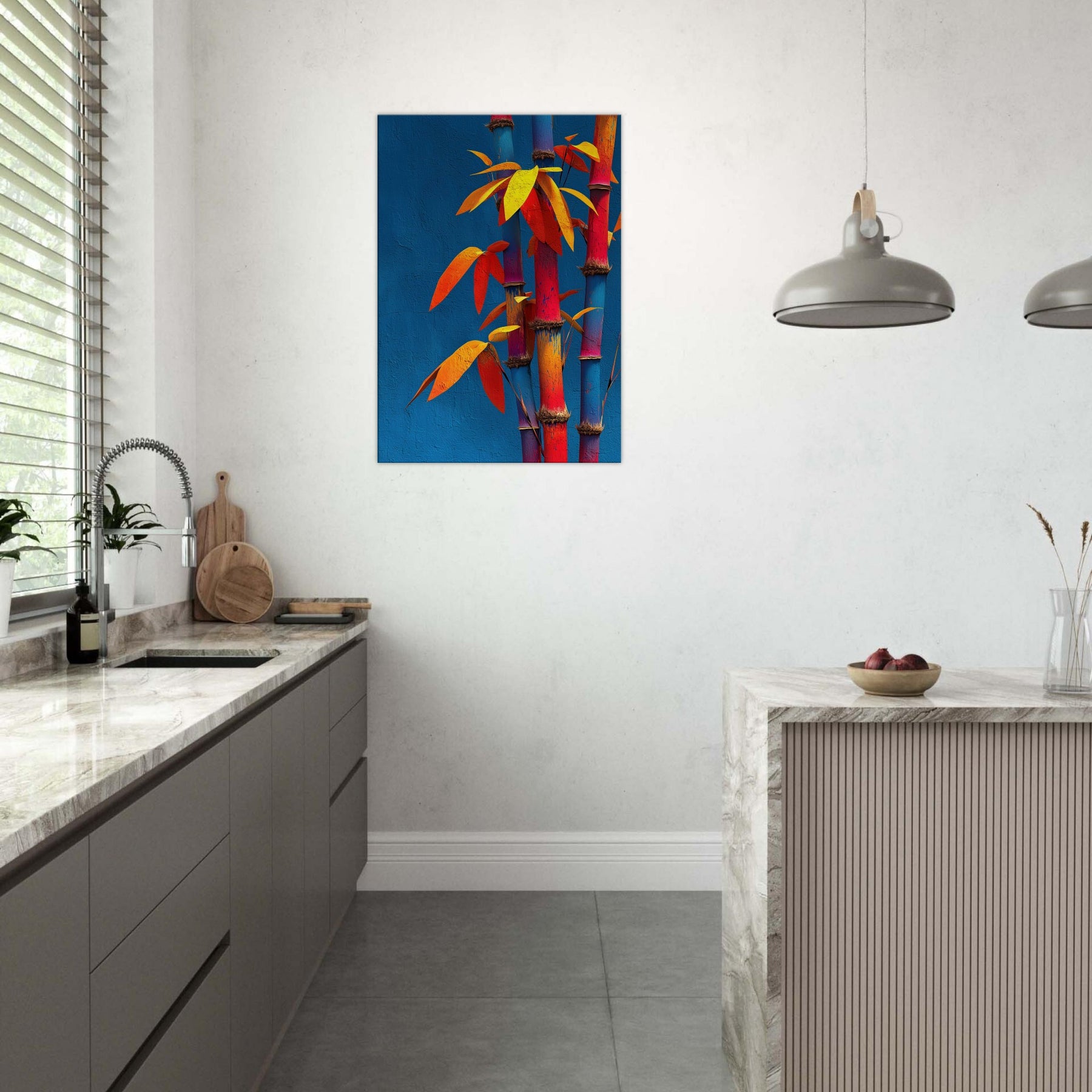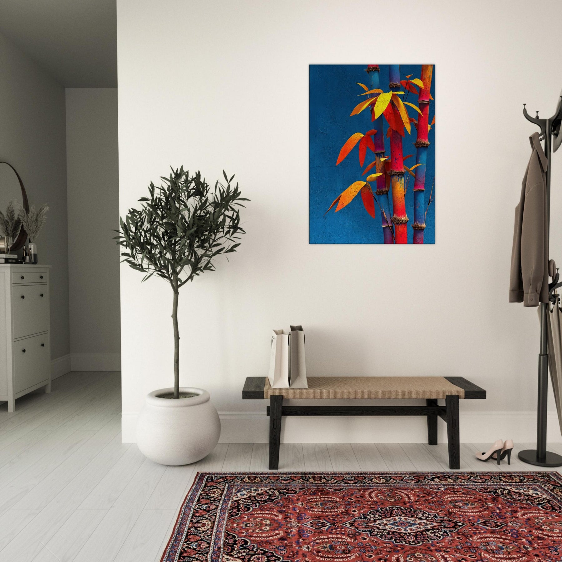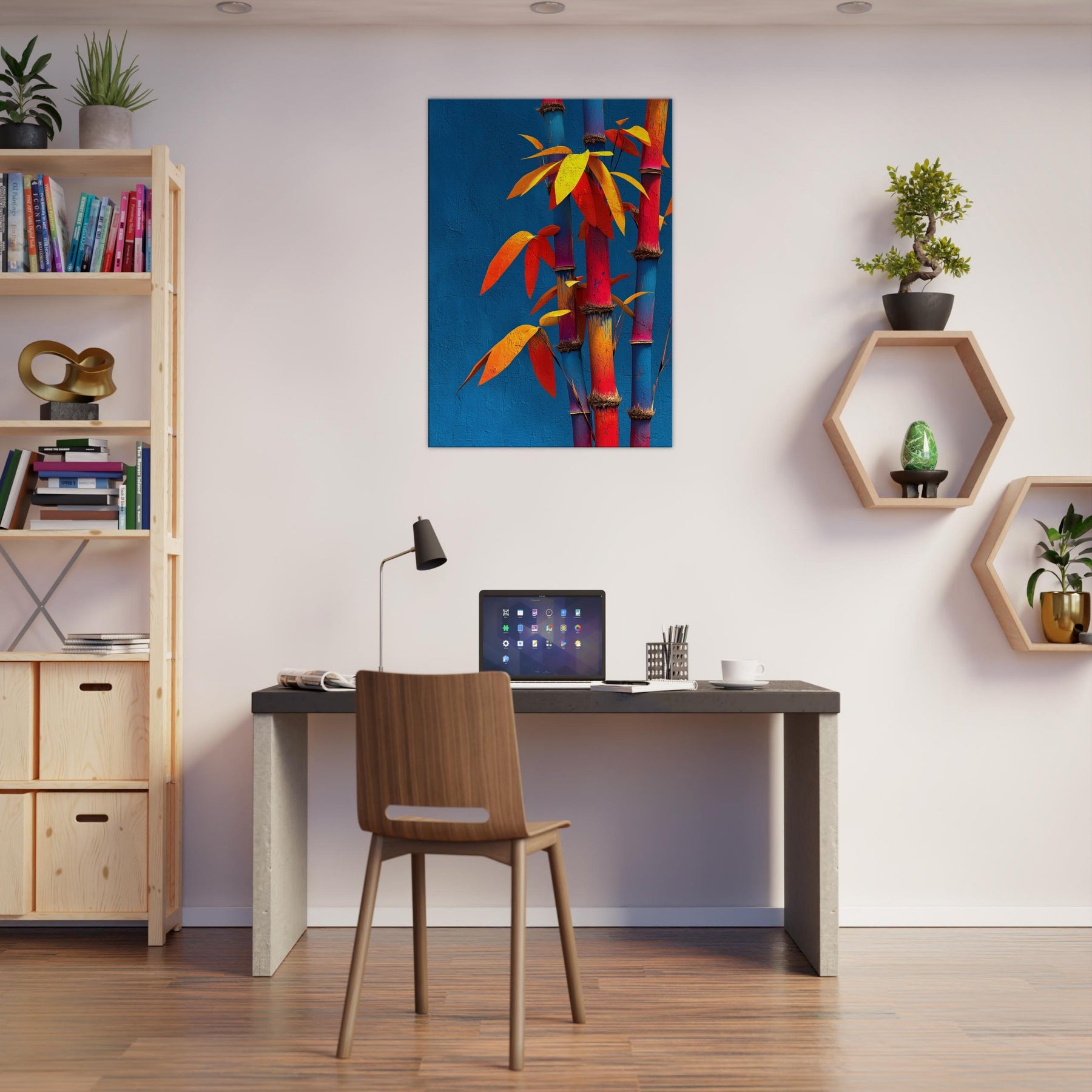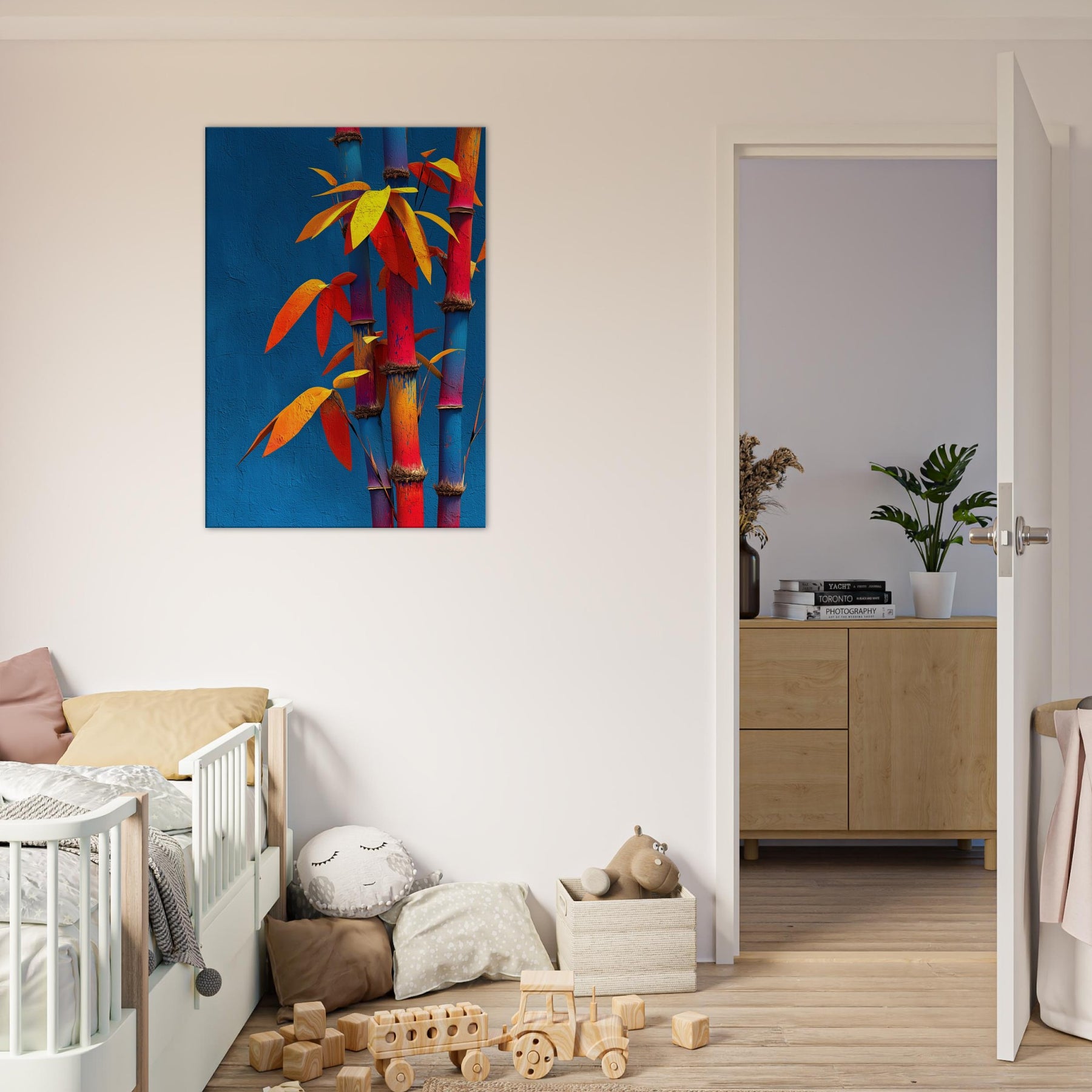 Bamboo Stalks rise like color born sentinels against a cobalt backdrop, reimagined in an abstract embrace of light and hue. This wall art invites calm and curiosity in equal measure the rhythm, the electric pinks and blues, the whisper of amber leaves. It breathes with your room, turning quiet corners into focal points and everyday spaces into an artful escape. Imagine mornings bathed in color or evenings softened by luminous, nature inspired stillness.