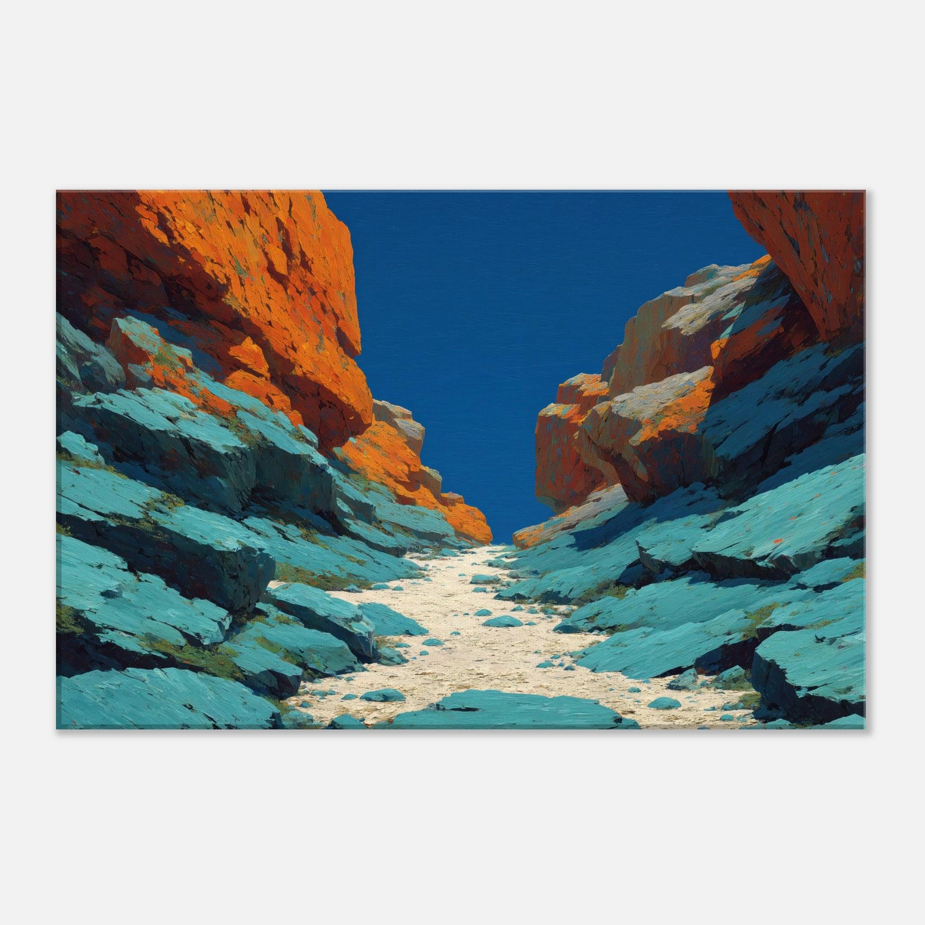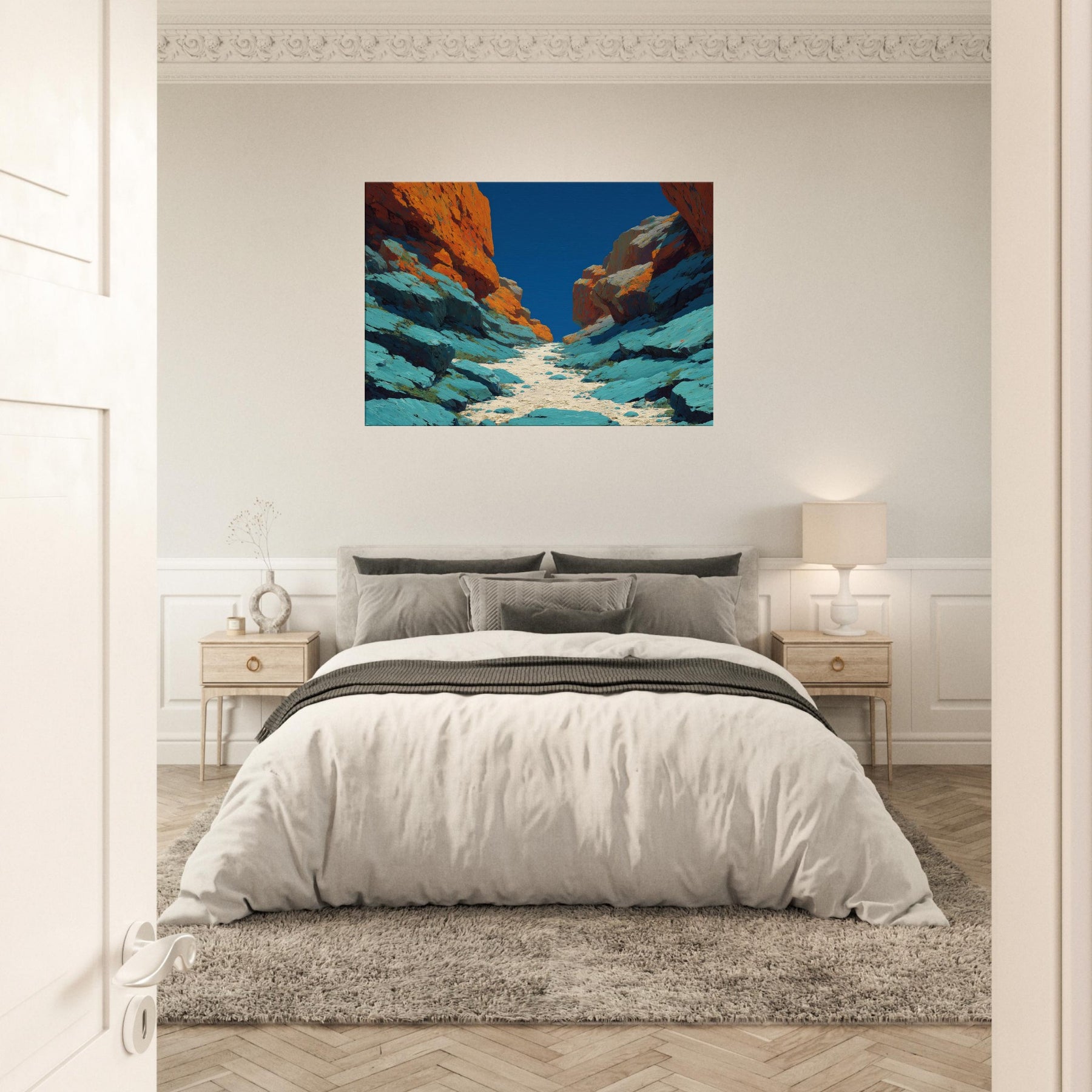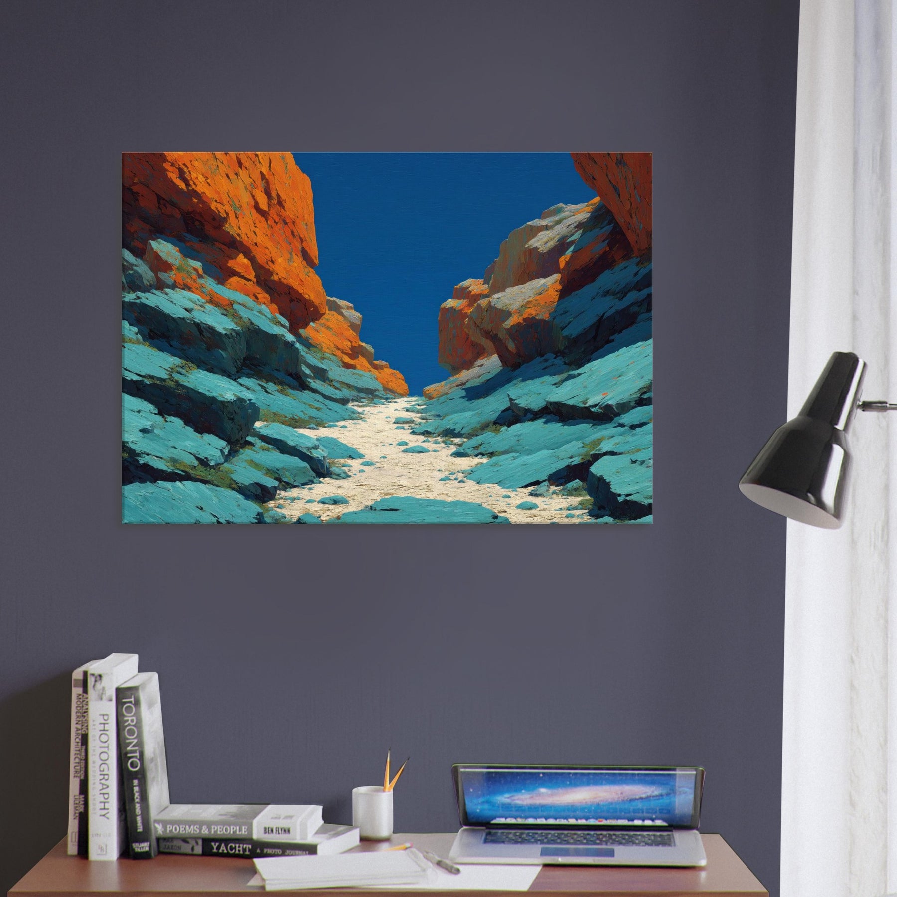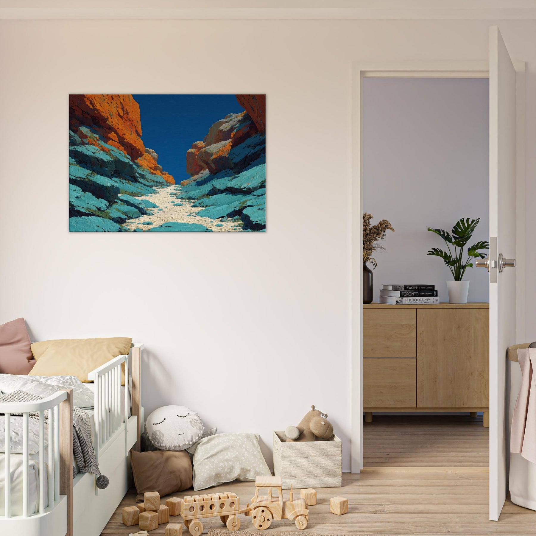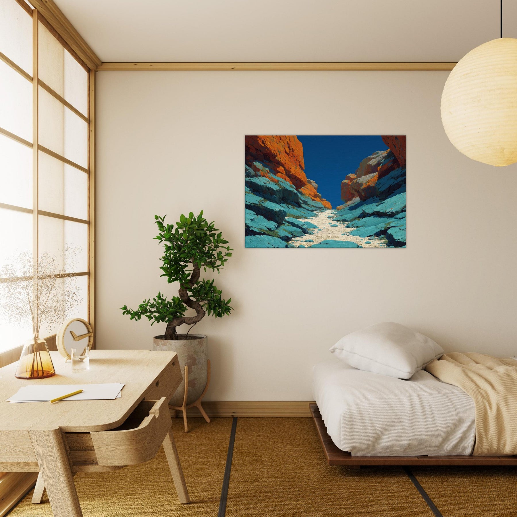 Step into a sunlit chasm where Canyon walls unfold in bold, mineral tones. This abstract hums with heat and quiet, inviting your space to breathe and dream. The turquoise crevices contrast with ember orange ridges, catching the light like a slow sunrise. The texture like strokes evoke weathered sandstone and shifting shadows, turning a wall into a doorway to the outdoors. Perfect for a living room or study, it frames conversation with nature’s grandeur while preserving a calm, sculptural elegance you can’t help but feel.