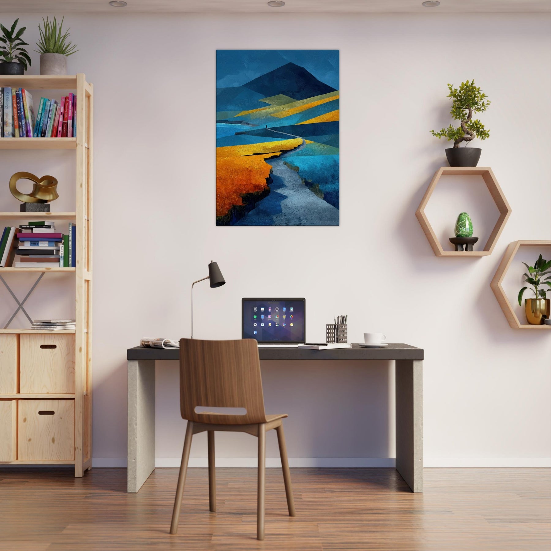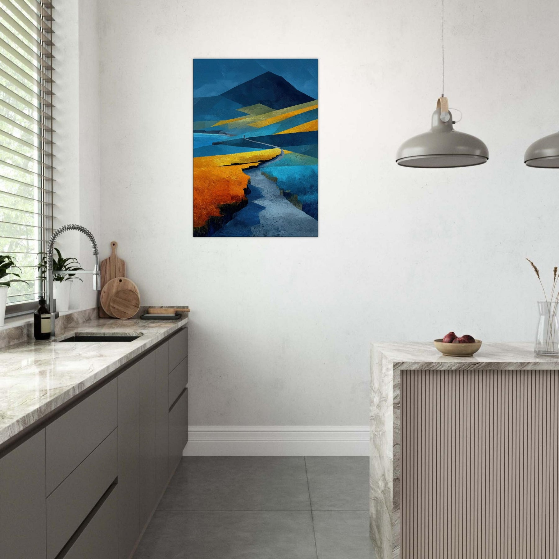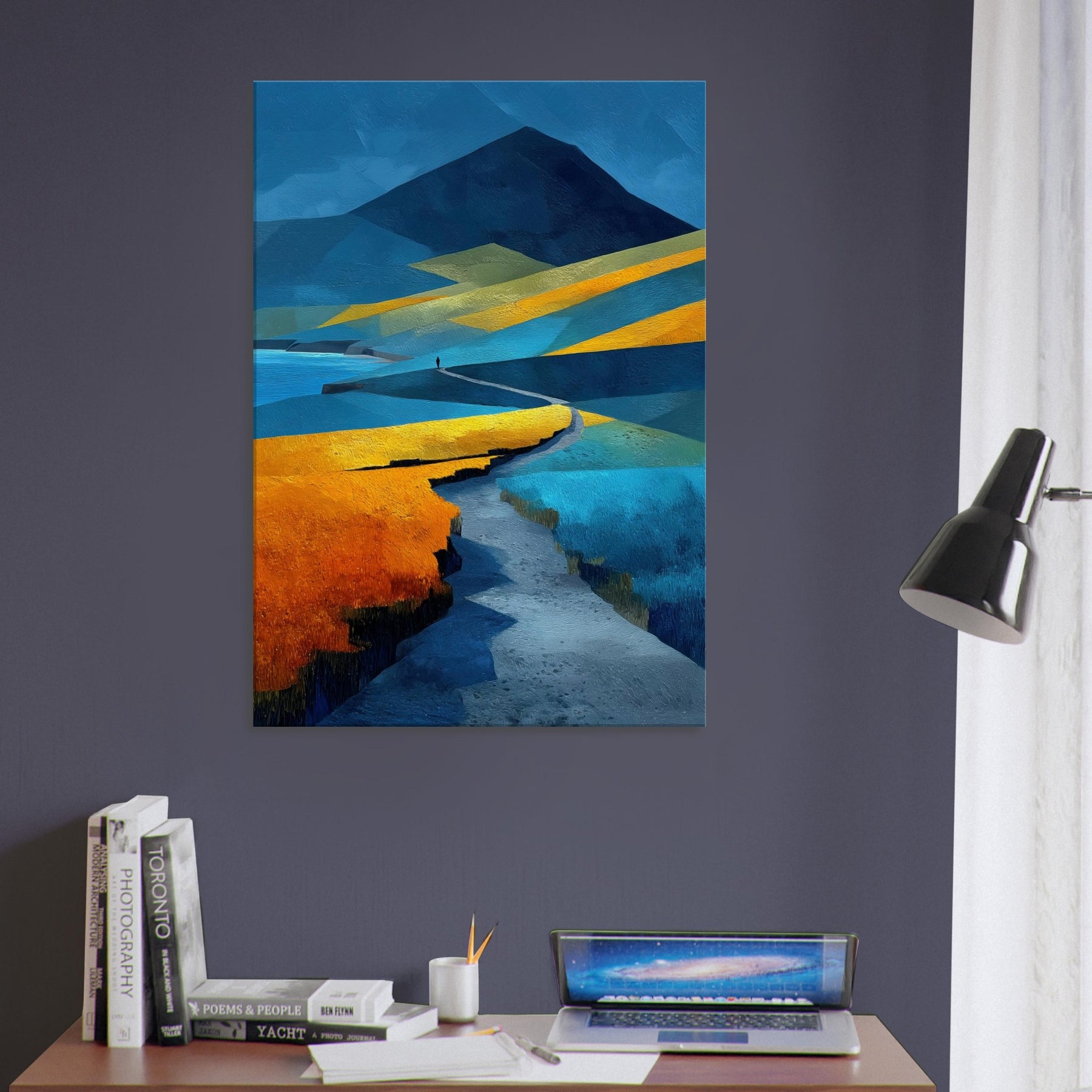 Coastal Dunes invites the viewer into a of air and wind. The abstract forms stack like sand dunes and distant hills, while a pathway of muted blues and sunlit gold leads the eye toward a quiet horizon. The painting radiates a cool coastal mood, blending sea and shore with a tactile, sun warmed surface. Perfect for a living space seeking serenity, depth, and a touch of modern nature this piece pairs with neutrals or bold accents to create a contemplative centerpiece.