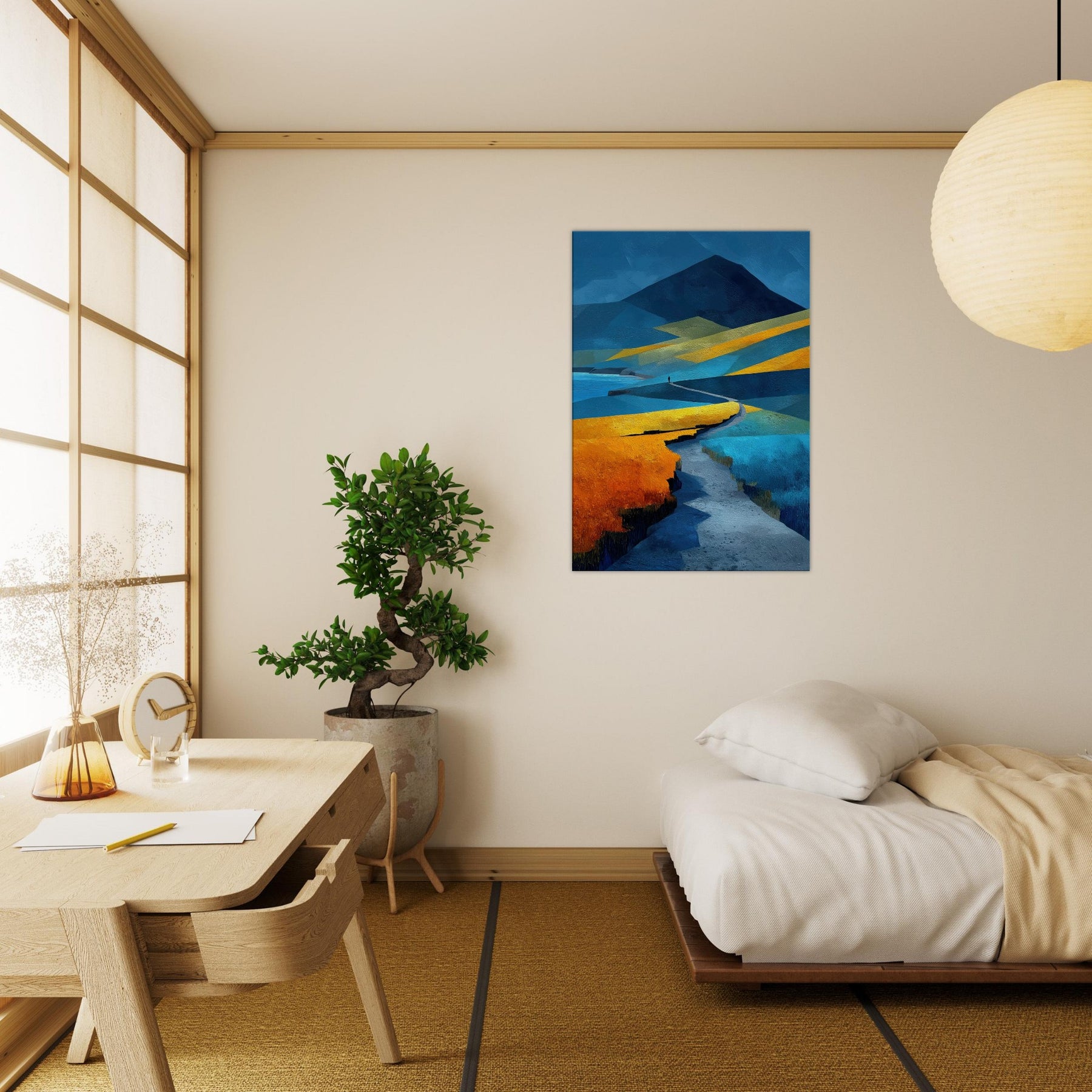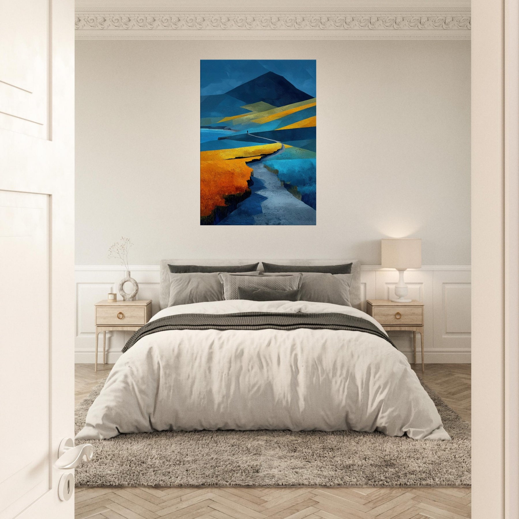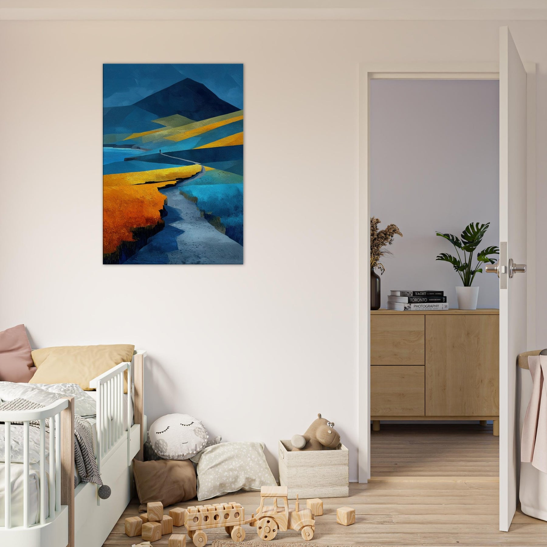 Coastal Dunes invites the viewer into a of air and wind. The abstract forms stack like sand dunes and distant hills, while a pathway of muted blues and sunlit gold leads the eye toward a quiet horizon. The painting radiates a cool coastal mood, blending sea and shore with a tactile, sun warmed surface. Perfect for a living space seeking serenity, depth, and a touch of modern nature this piece pairs with neutrals or bold accents to create a contemplative centerpiece.