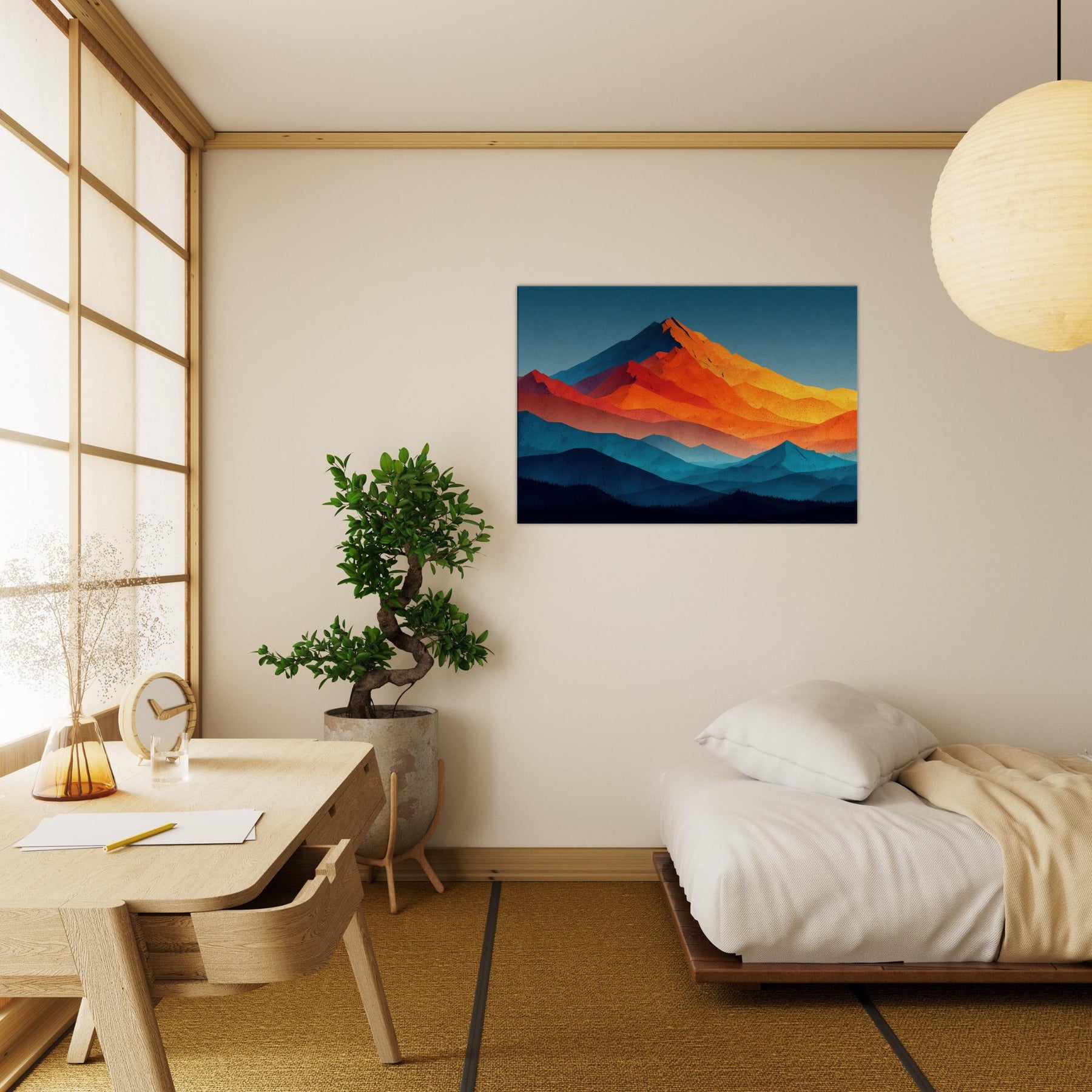 Sunset breathes across the hills in this abstract , inviting a quiet reverie. The piece blends heat of light with cool shadows, turning a distant glow into layered, tactile color. The atmosphere is warm and expansive, melting walls into a window of evening calm. Perfect for a living room or study, it softens hard edges, enhances textures, and lends a steady rhythm to conversation and days alike, as nature's final light settles into your space.