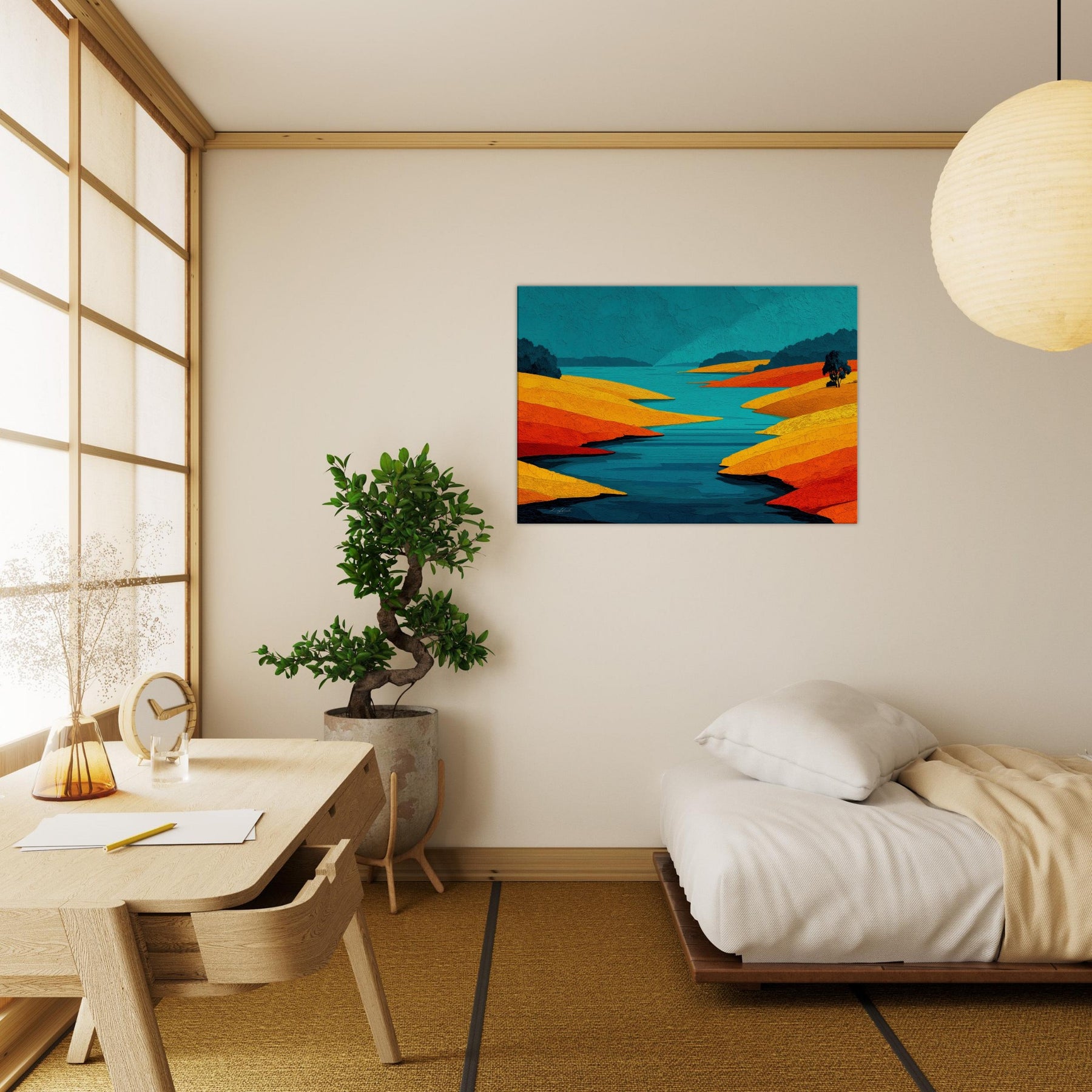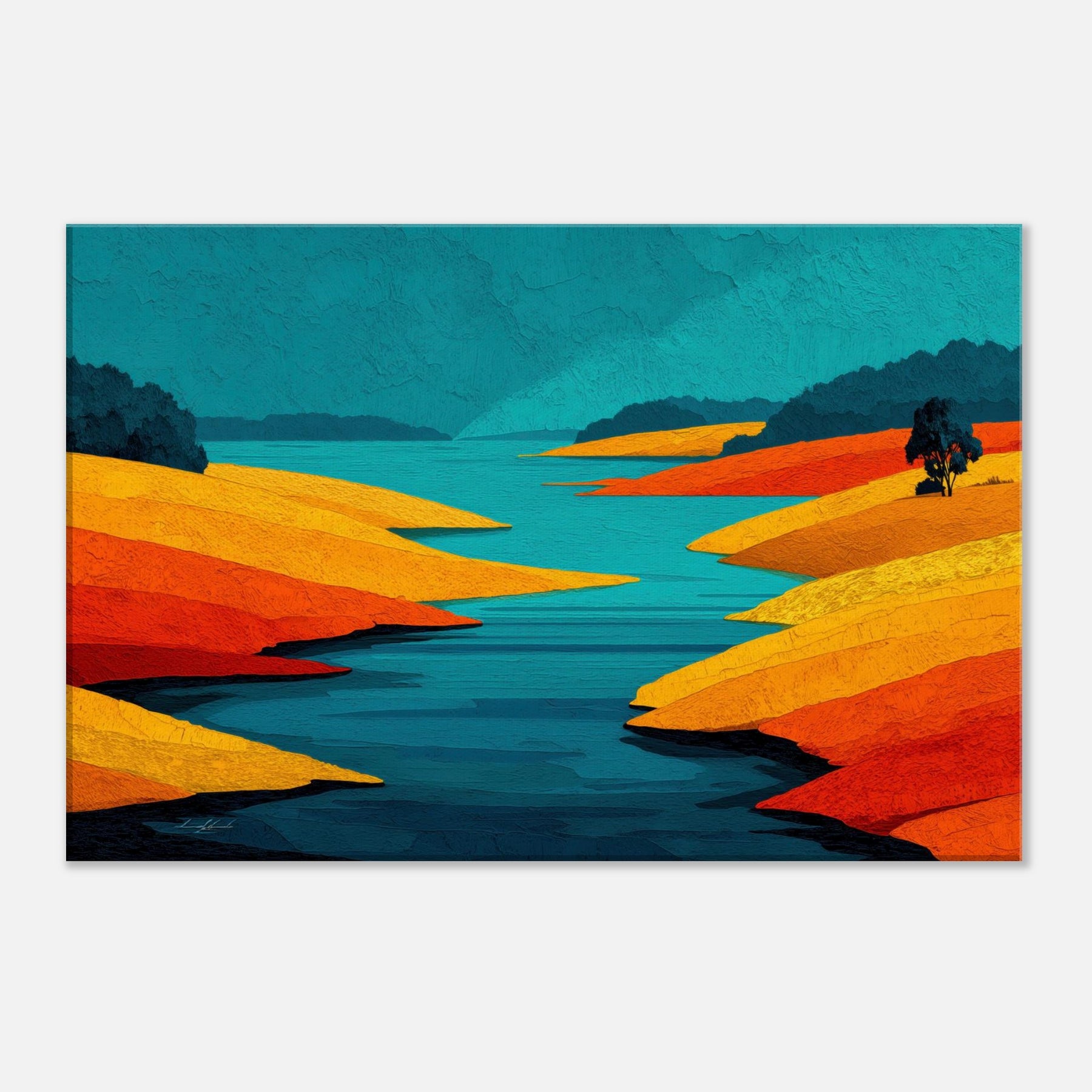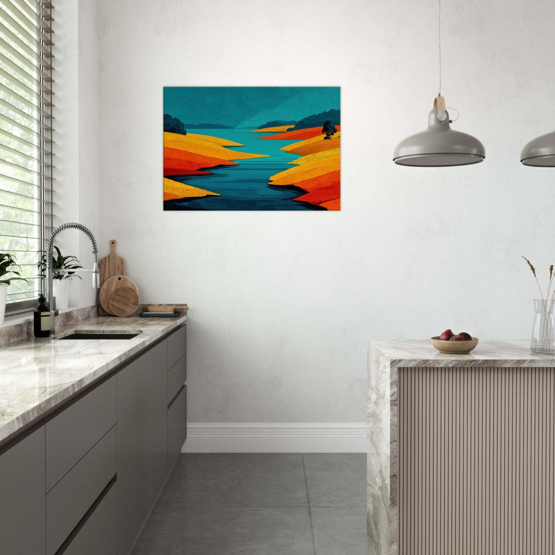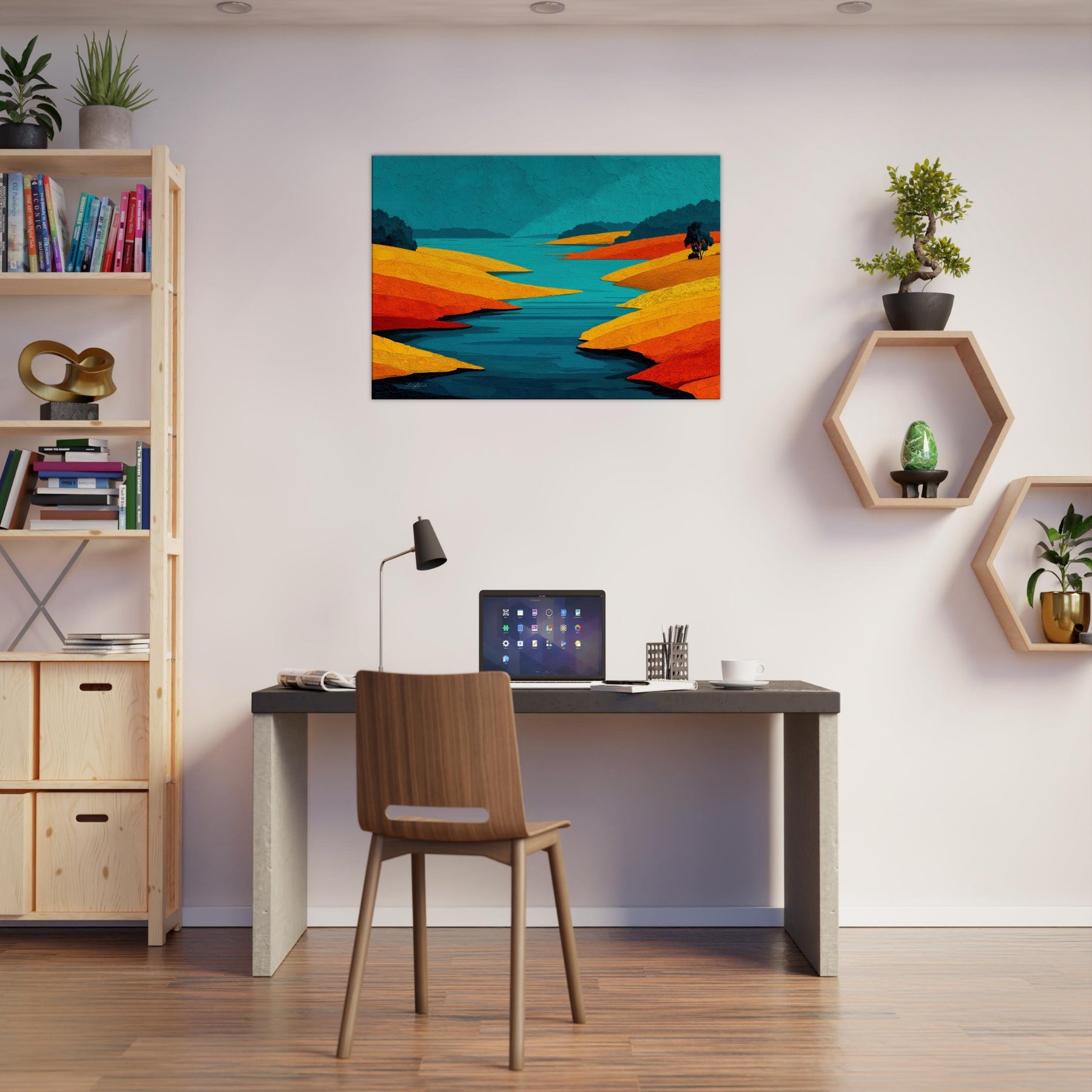 Immerse your space in the quiet drama of a Lake rendered as luminous gradients of color. This abstract seduces the senses with cool turquoise shadows, sun warmed yellows, and coral accents that drift across the canvas like a gentle current. The piece invites slow, contemplative viewing, turning a wall into a window and a living room into a retreat. Perfect above a sofa or in a hallway, it adds atmosphere, depth, and a whisper of nature’s breadth to daily life.