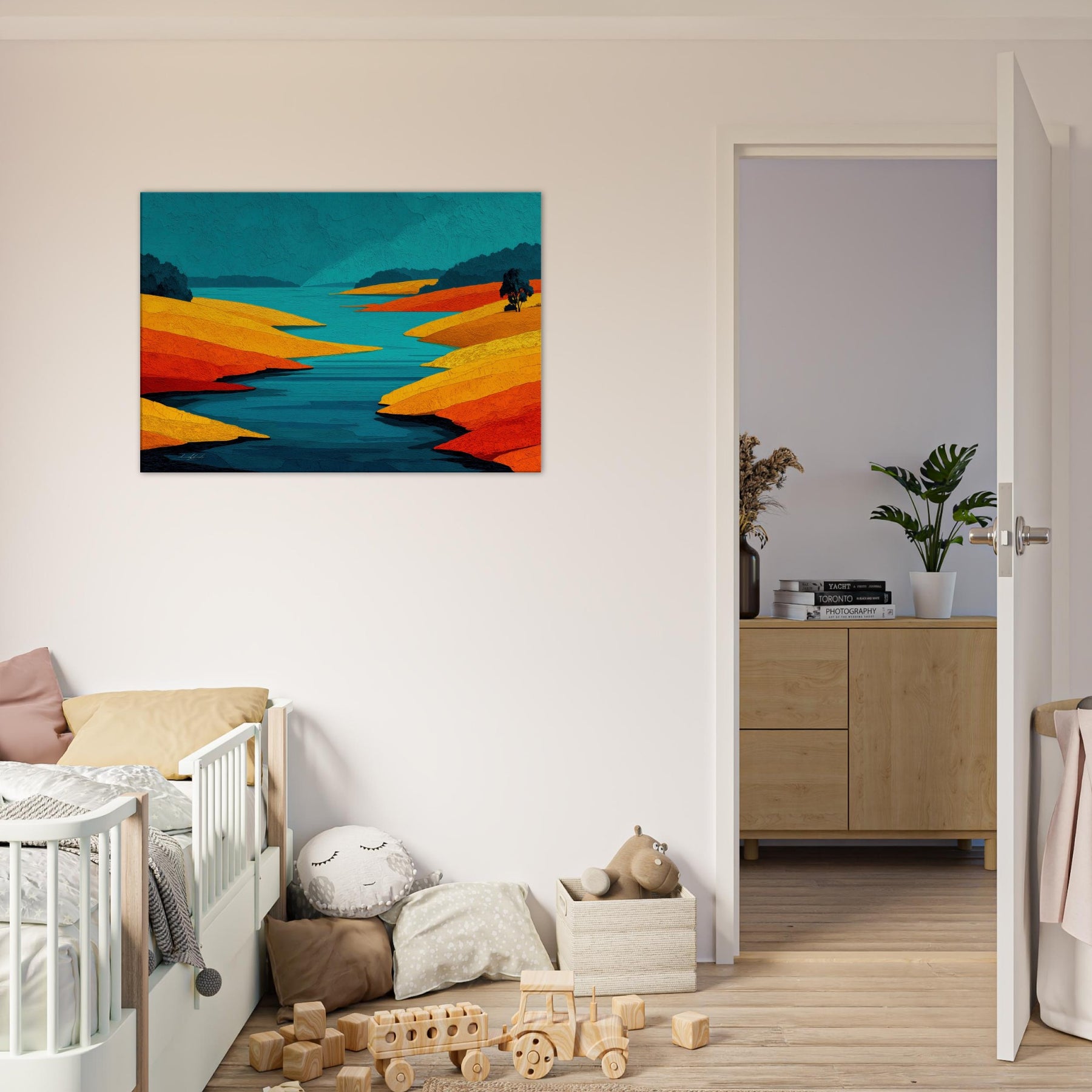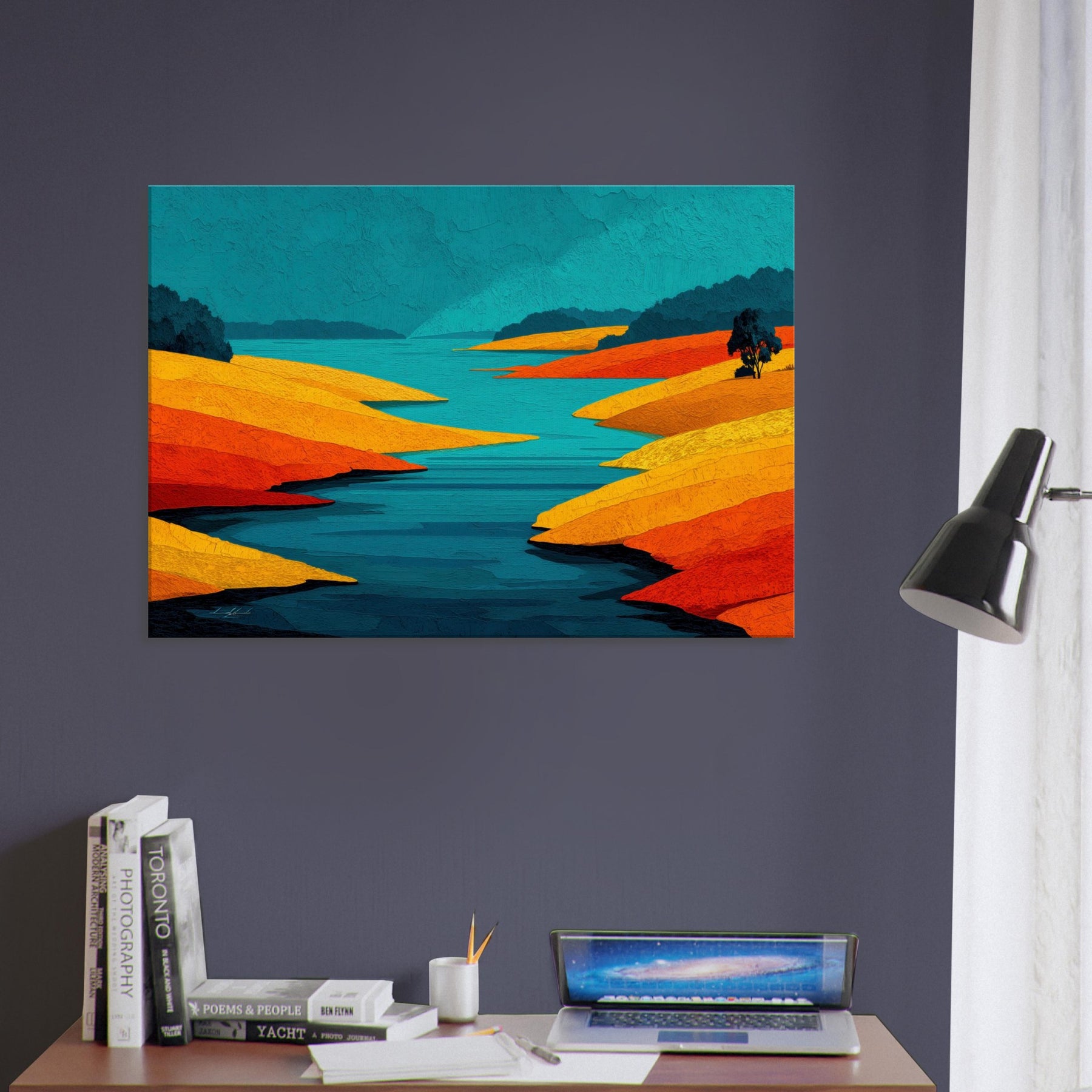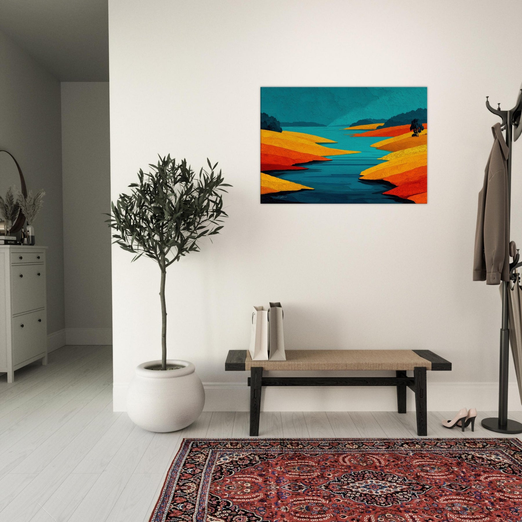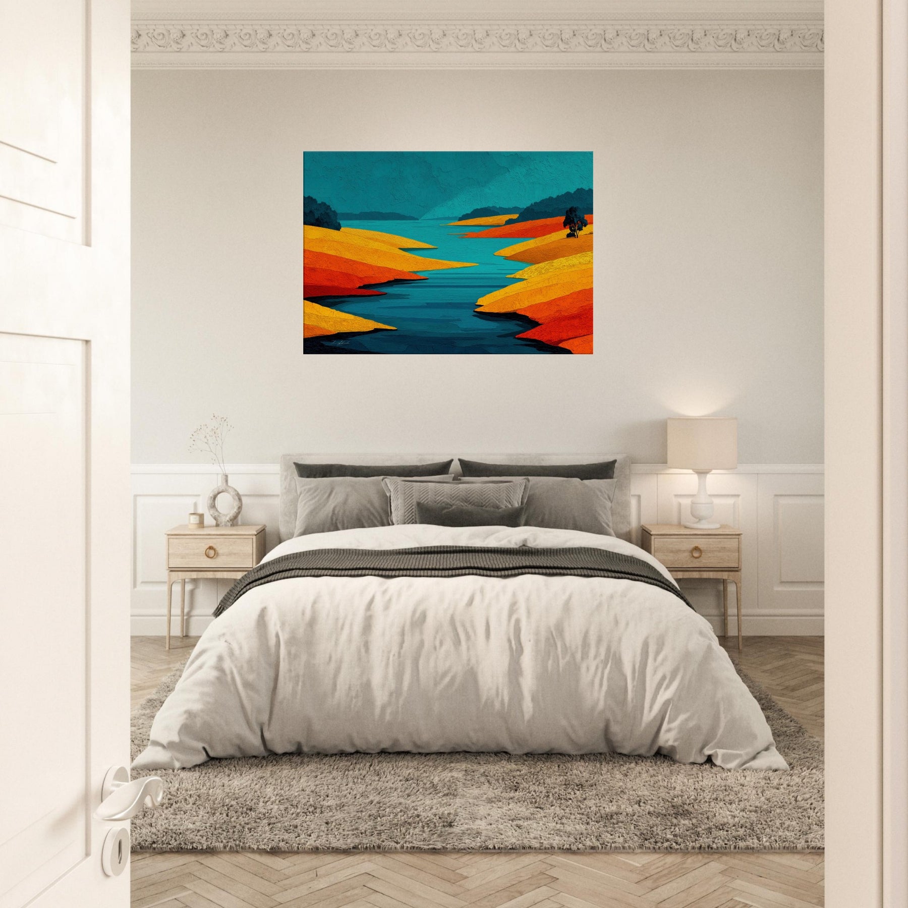 Immerse your space in the quiet drama of a Lake rendered as luminous gradients of color. This abstract seduces the senses with cool turquoise shadows, sun warmed yellows, and coral accents that drift across the canvas like a gentle current. The piece invites slow, contemplative viewing, turning a wall into a window and a living room into a retreat. Perfect above a sofa or in a hallway, it adds atmosphere, depth, and a whisper of nature’s breadth to daily life.