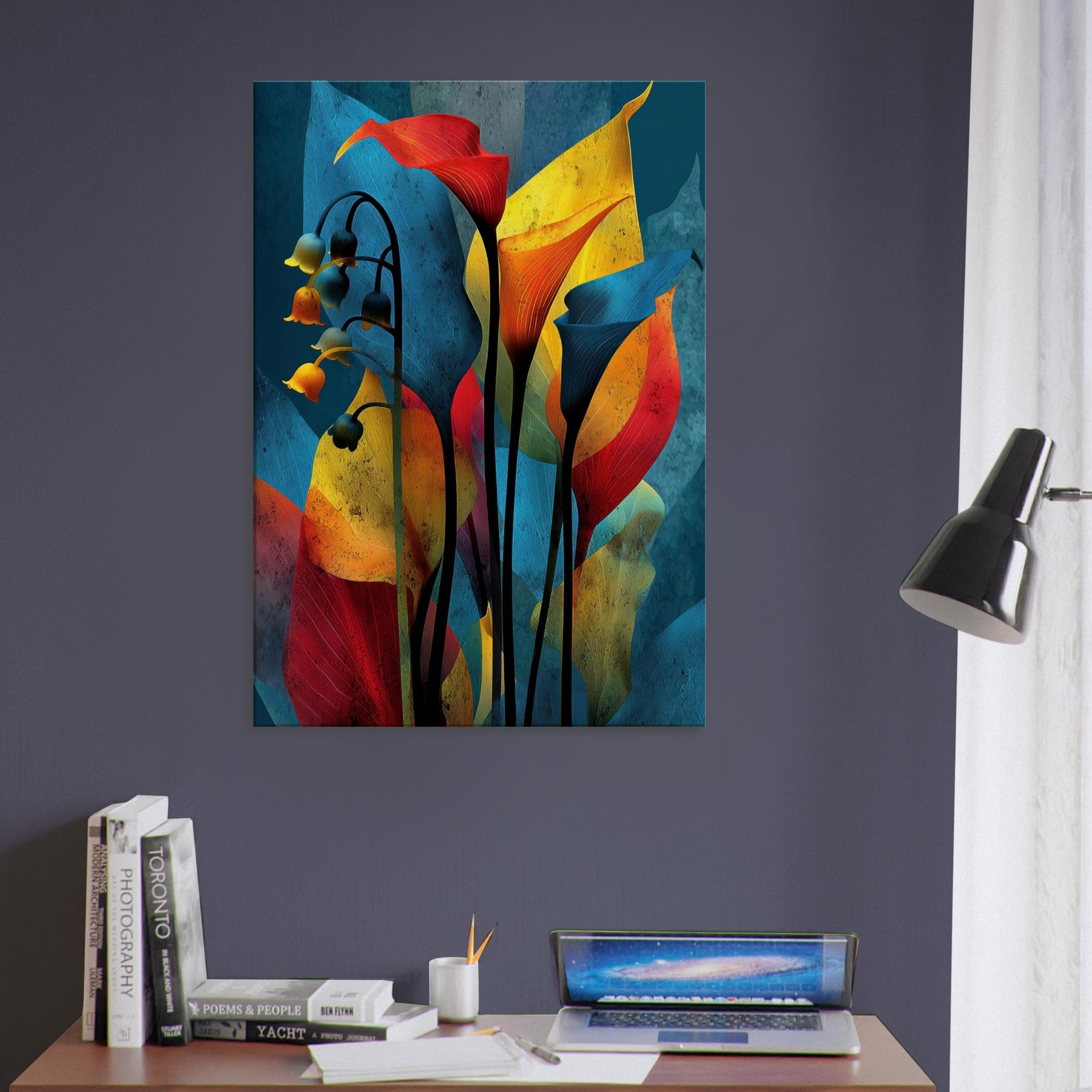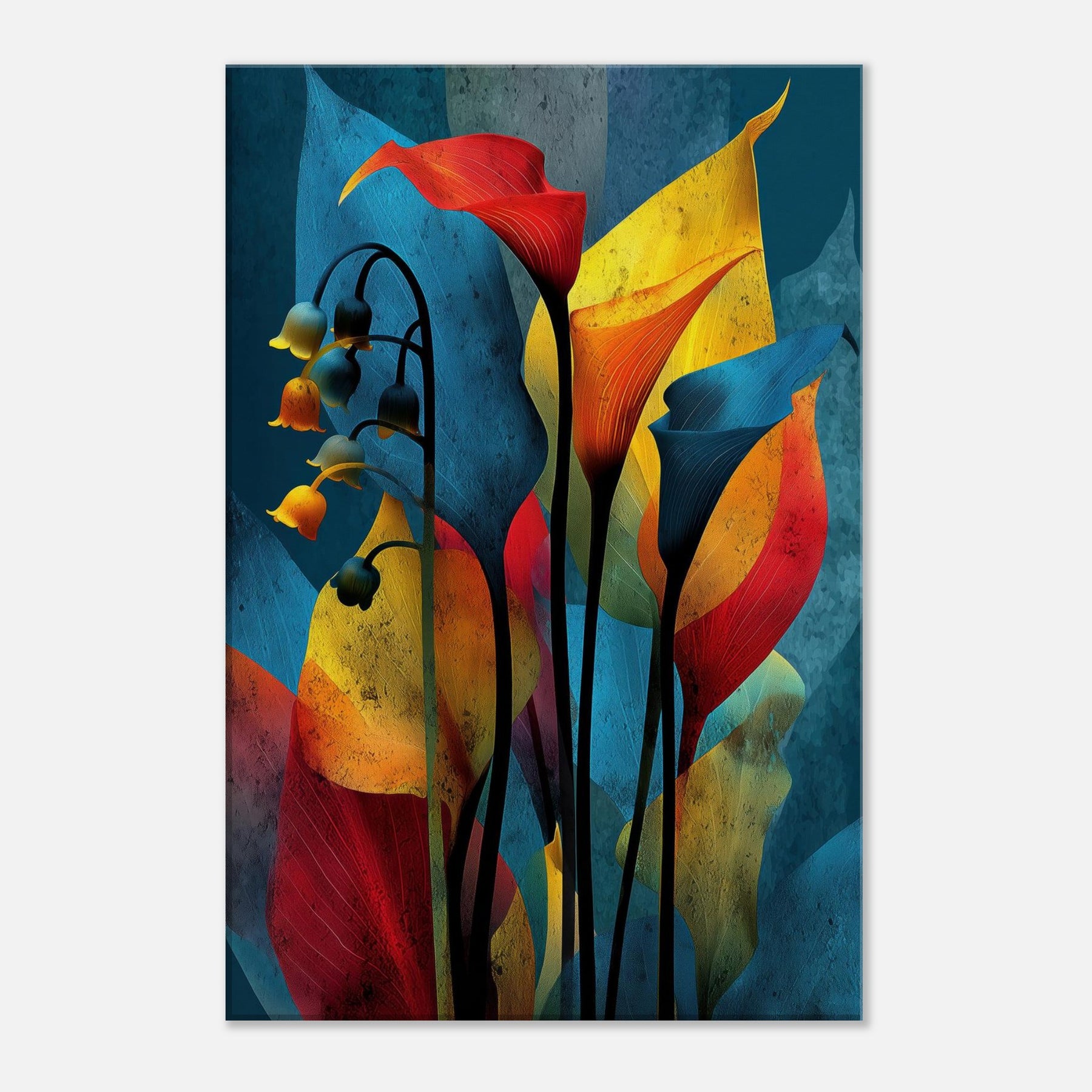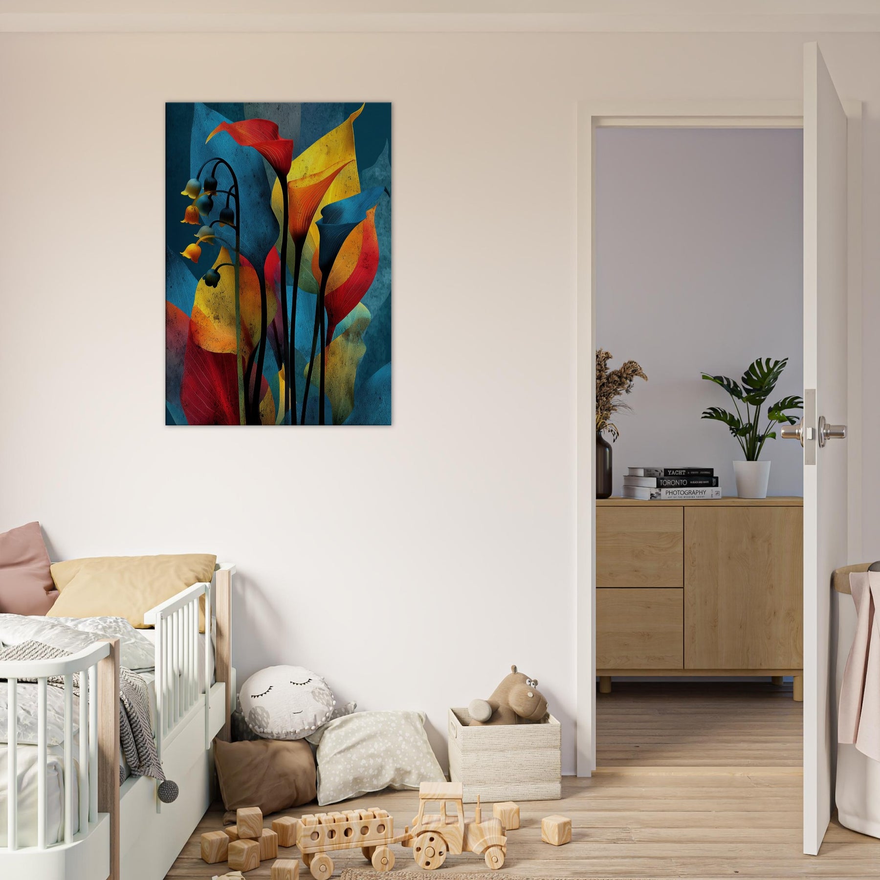 Immerse your space in the delicate drama of Lily of the Valley rendered in a luminous, abstract chorus. The artwork layers electric blues, sun kissed yellows, and midnight greens to evoke a whisper of spring and the scent of new blooms. Taller stems rise with quiet elegance, while the contours dissolve into a field of color, inviting calm and contemplation. Perfect for a living room or bedroom, it transforms walls into a serene, sculptural backdrop that nourishes creativity and rest.