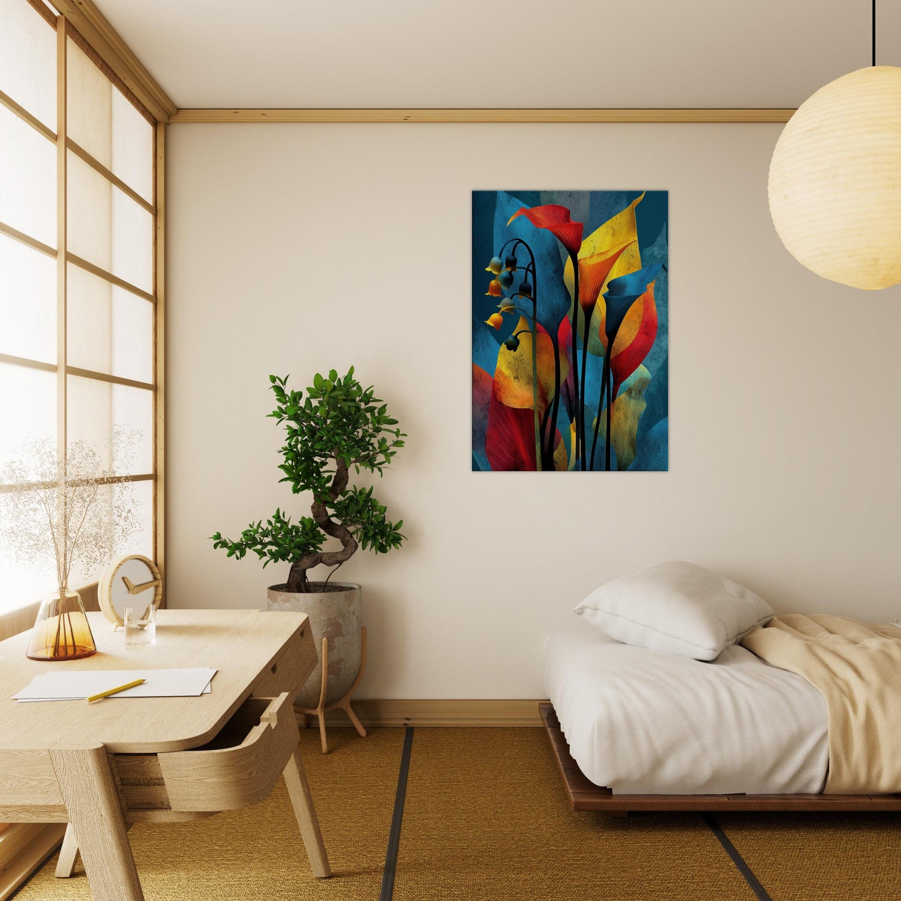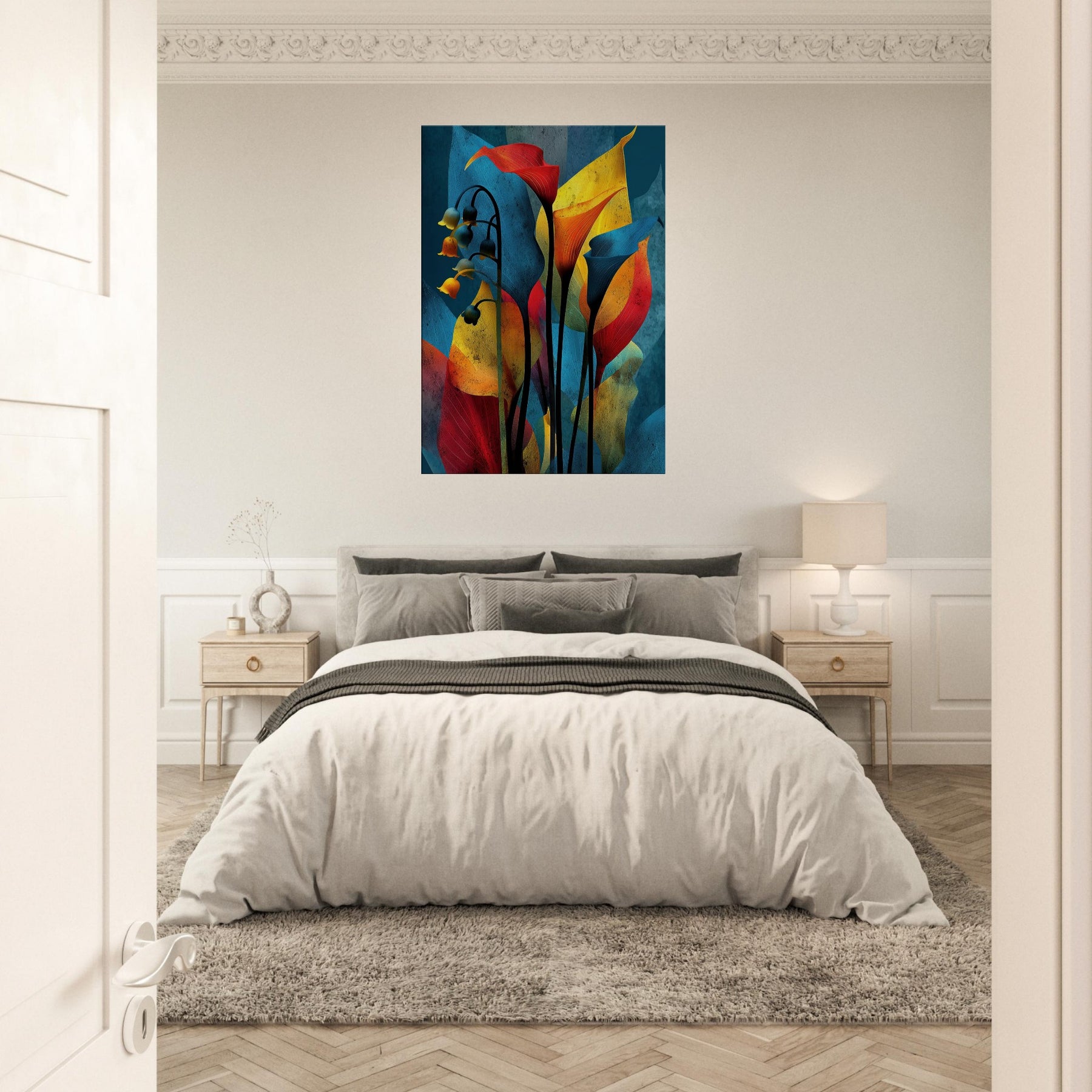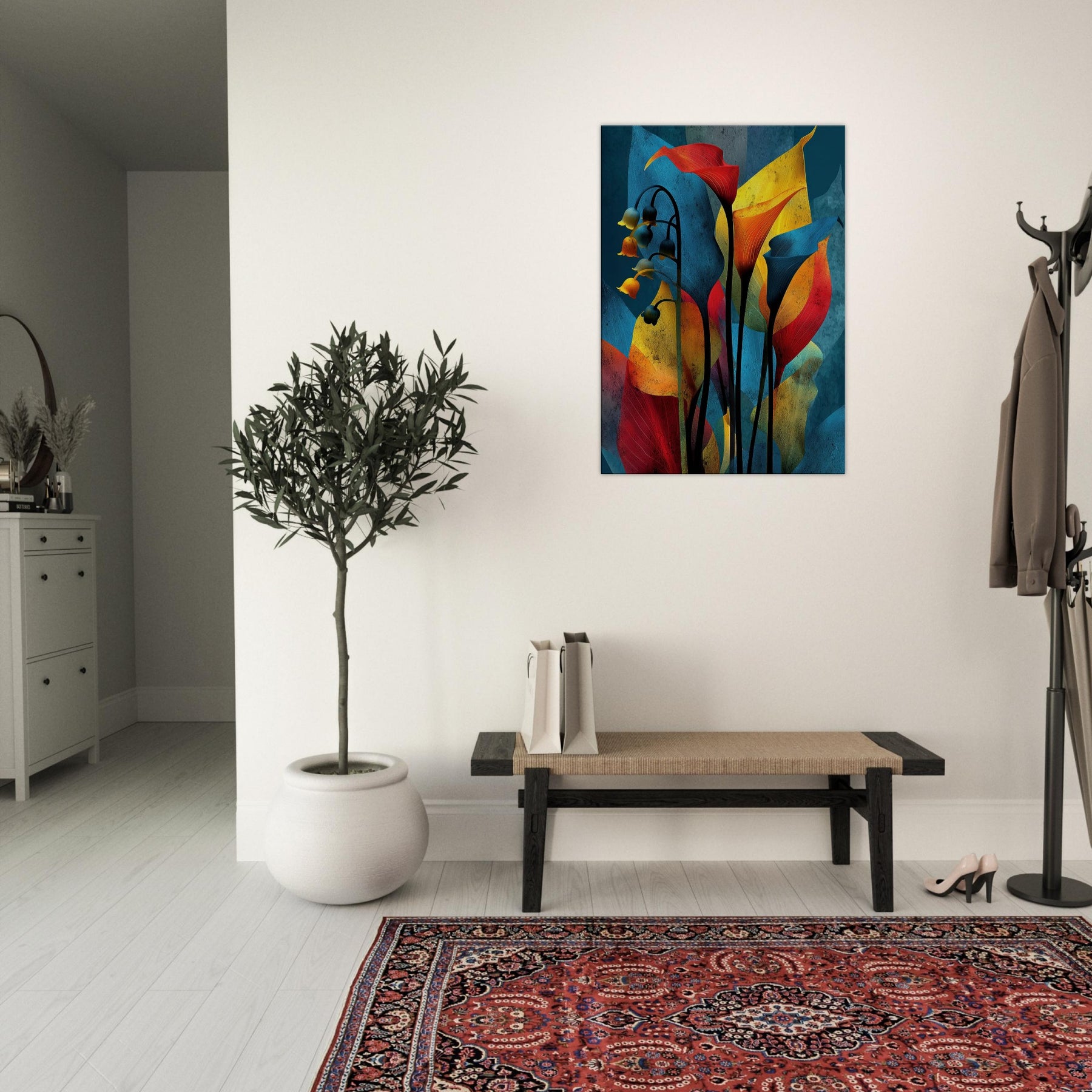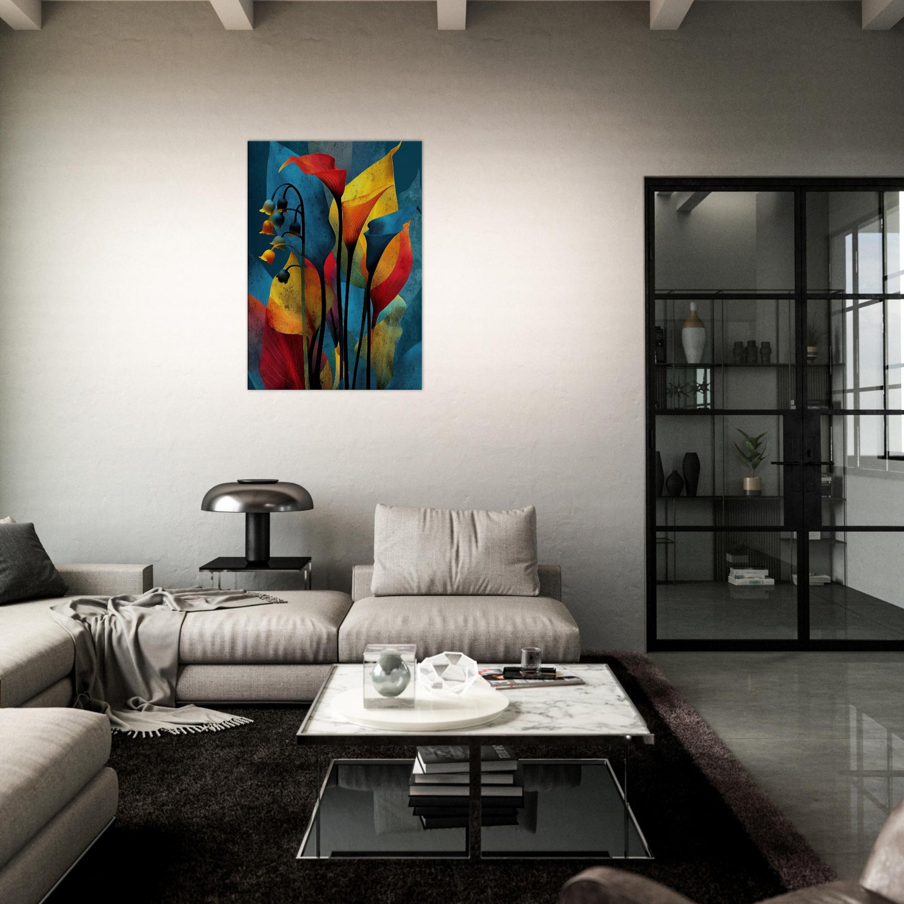 Immerse your space in the delicate drama of Lily of the Valley rendered in a luminous, abstract chorus. The artwork layers electric blues, sun kissed yellows, and midnight greens to evoke a whisper of spring and the scent of new blooms. Taller stems rise with quiet elegance, while the contours dissolve into a field of color, inviting calm and contemplation. Perfect for a living room or bedroom, it transforms walls into a serene, sculptural backdrop that nourishes creativity and rest.
