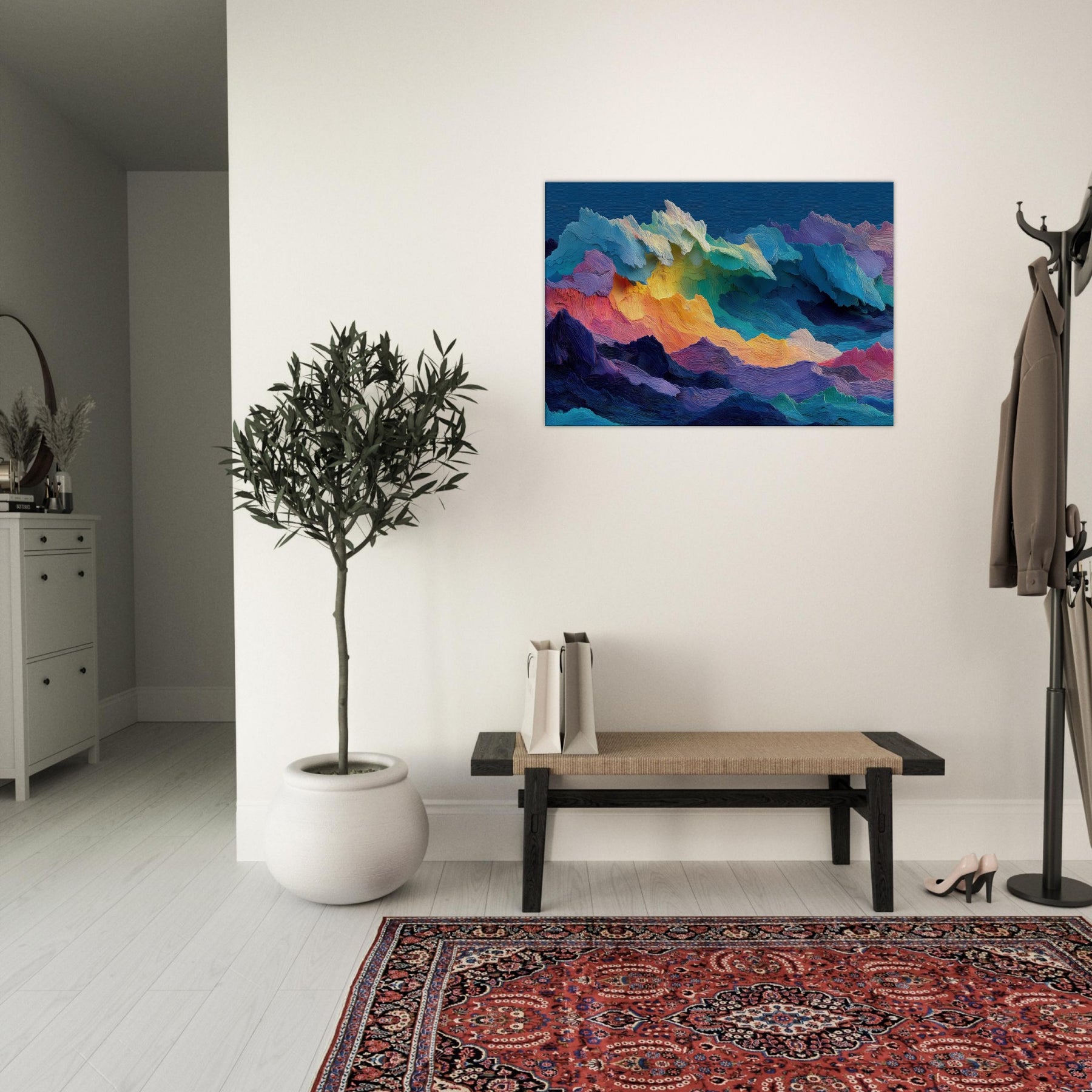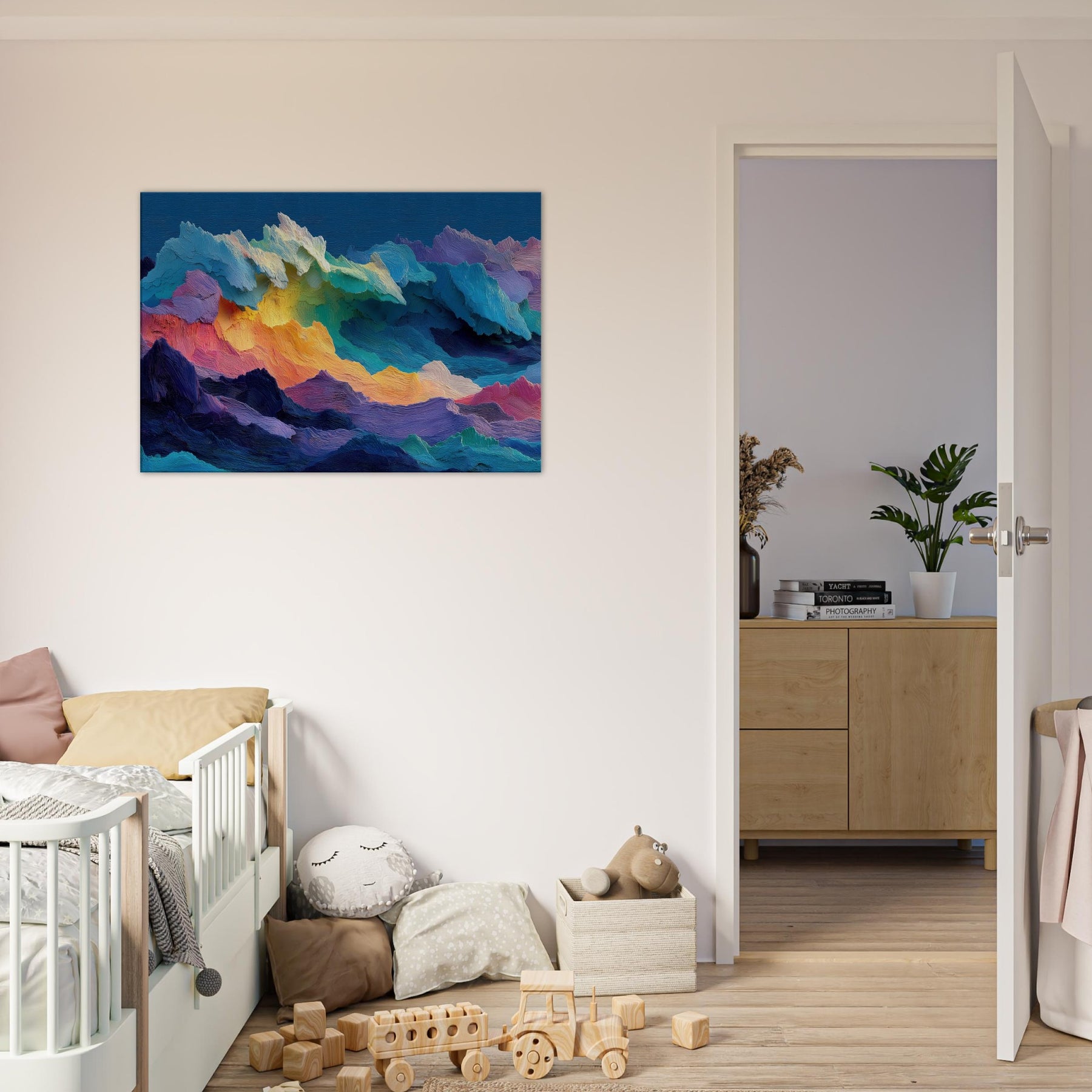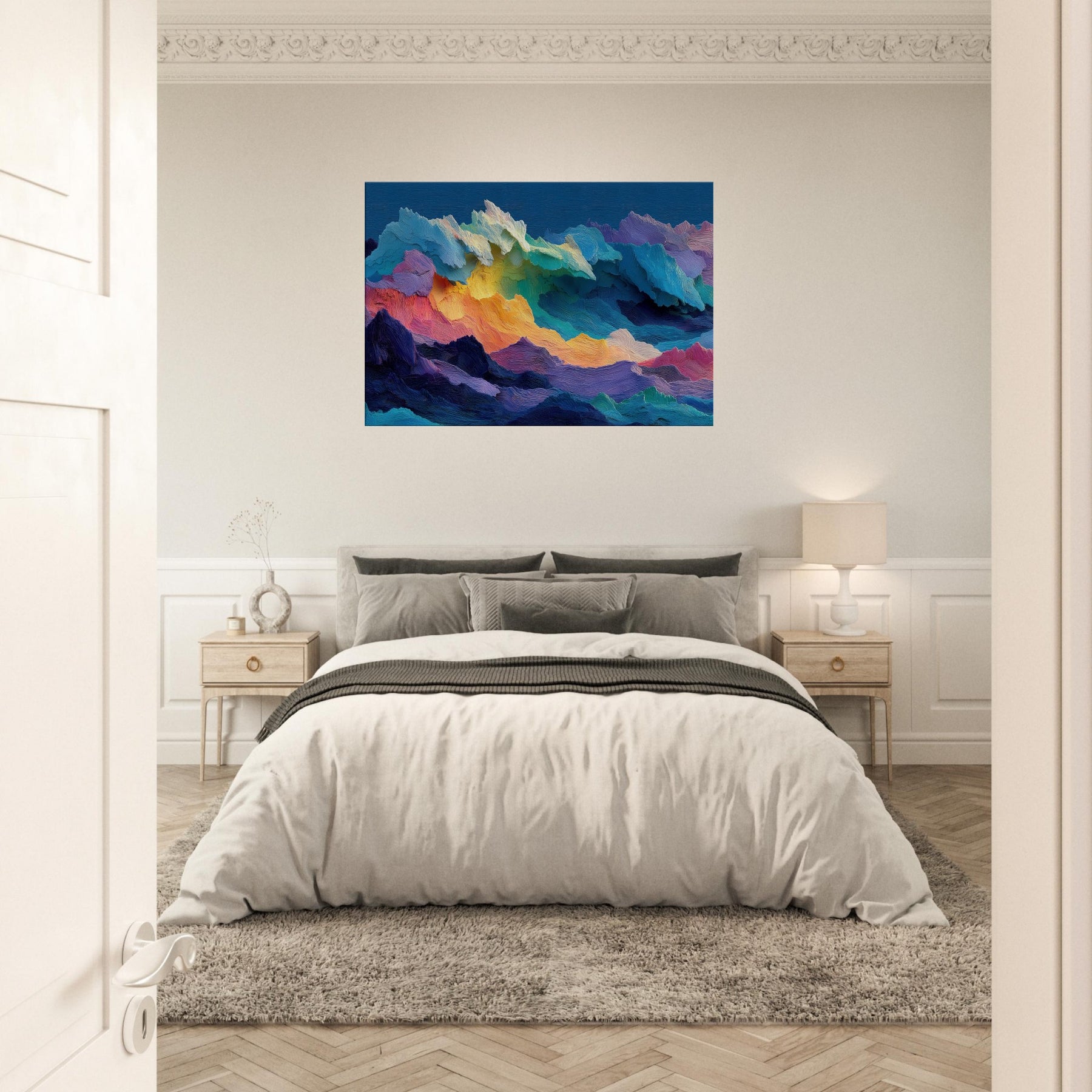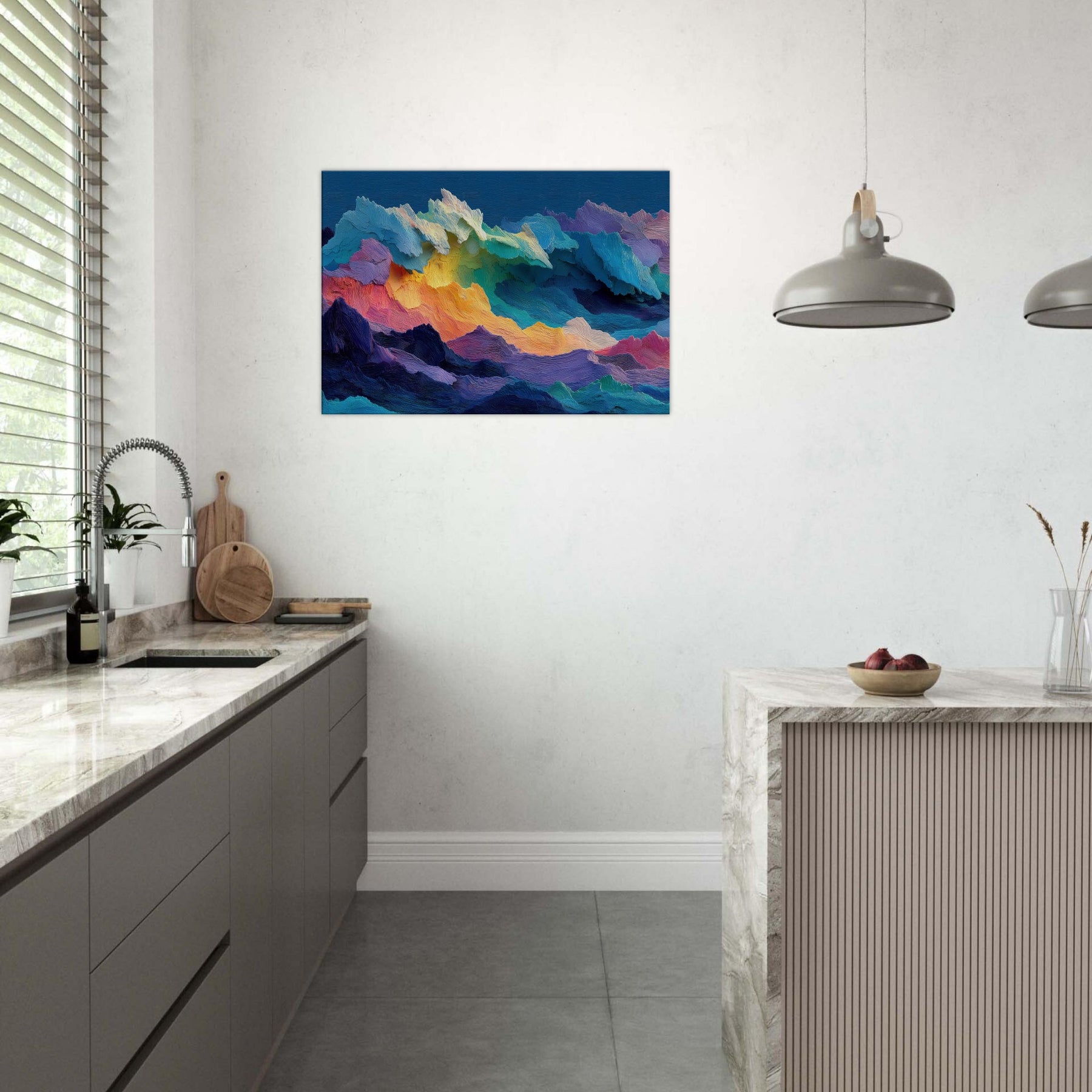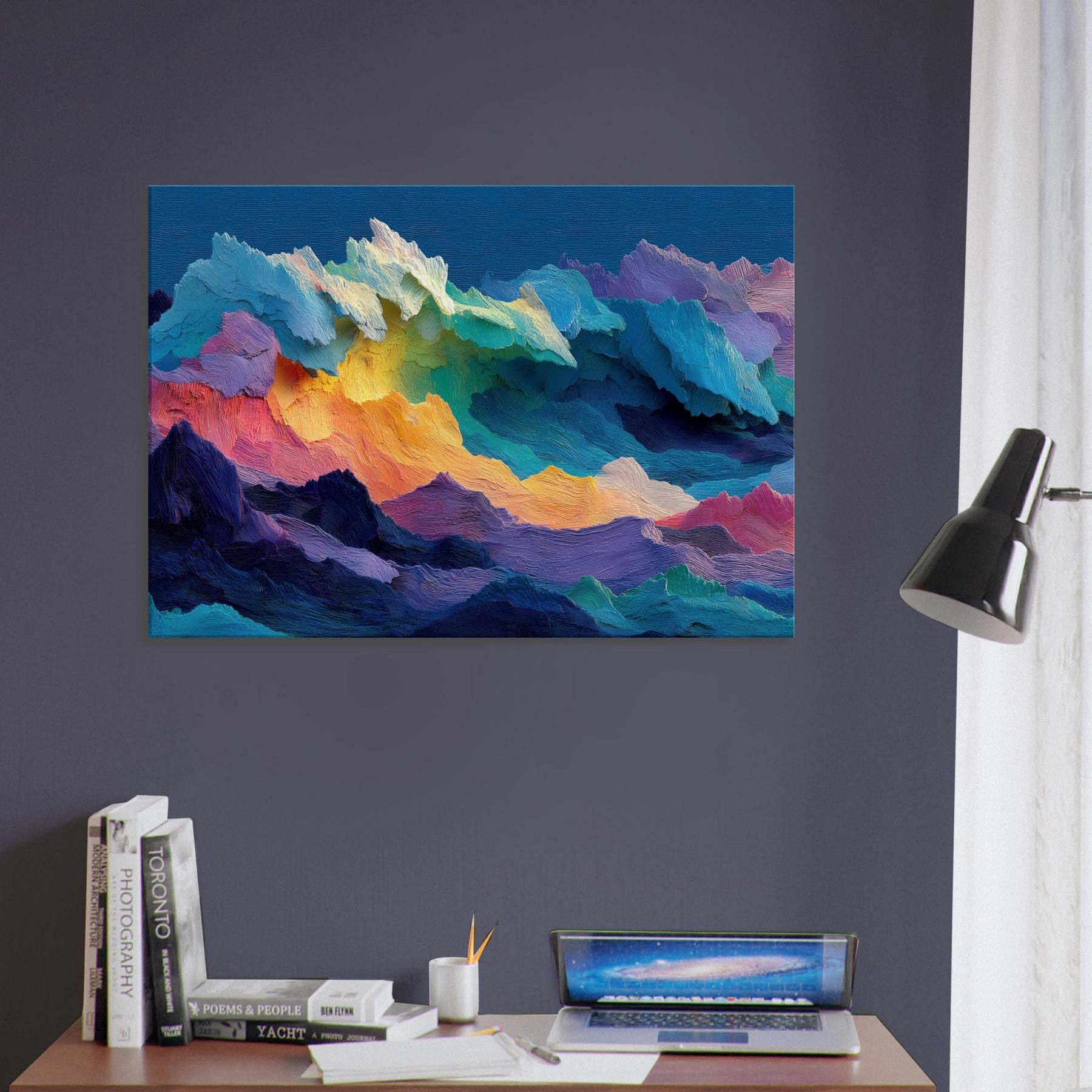 Stormy Sea sweeps across the canvas in a riot of color and texture, inviting you to lean in and listen to its quiet roar. The abstract forms mimic tidal forces, each ridge of pigment catching light and shadow like rain on a windowpane. This piece breathes movement into a room, turning a wall into a window to memory and mood. Placed above a sofa or in a bright hallway, it elevates calm, drama, and imagination in equal measure.