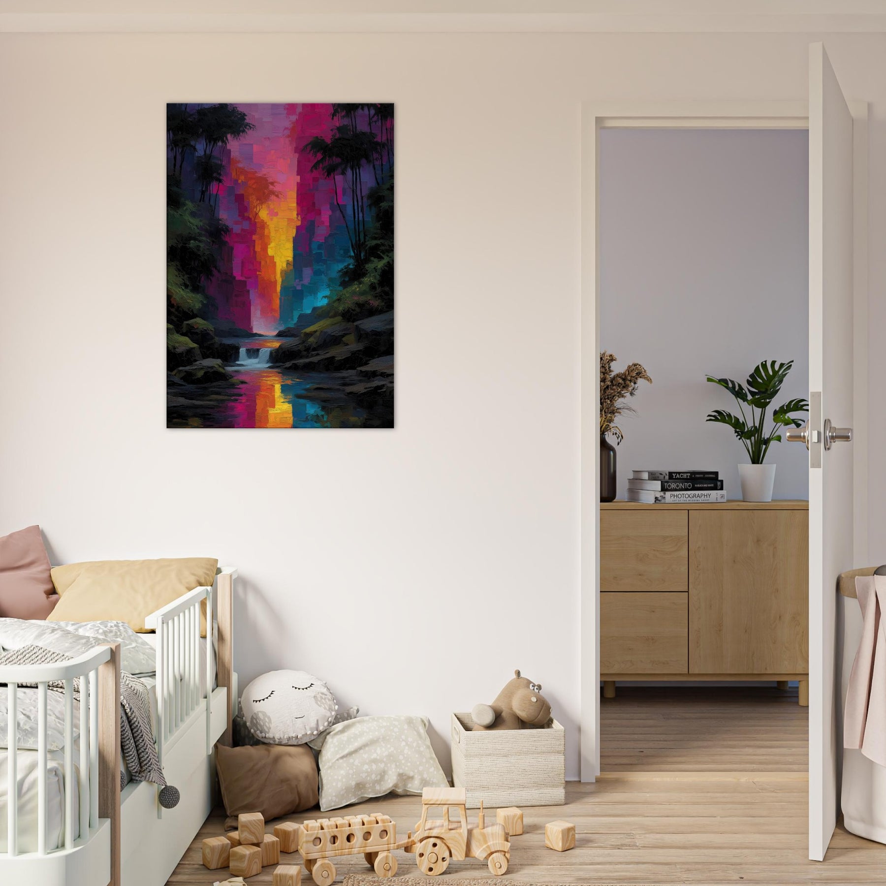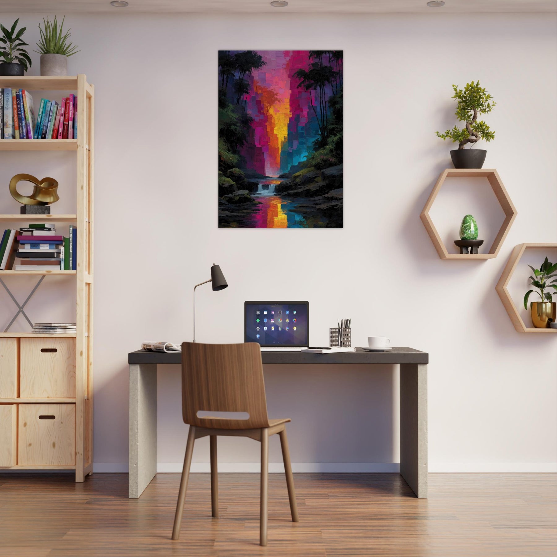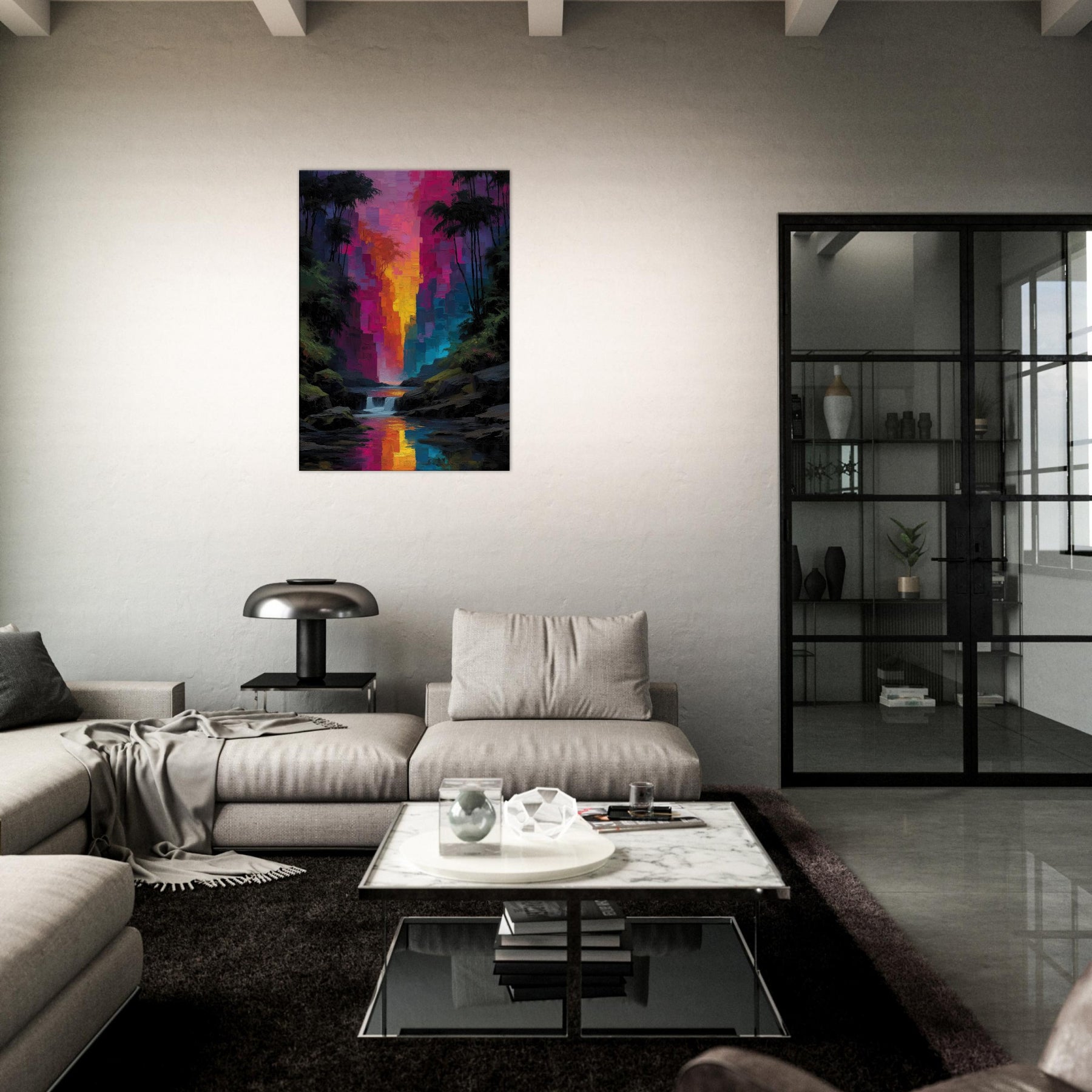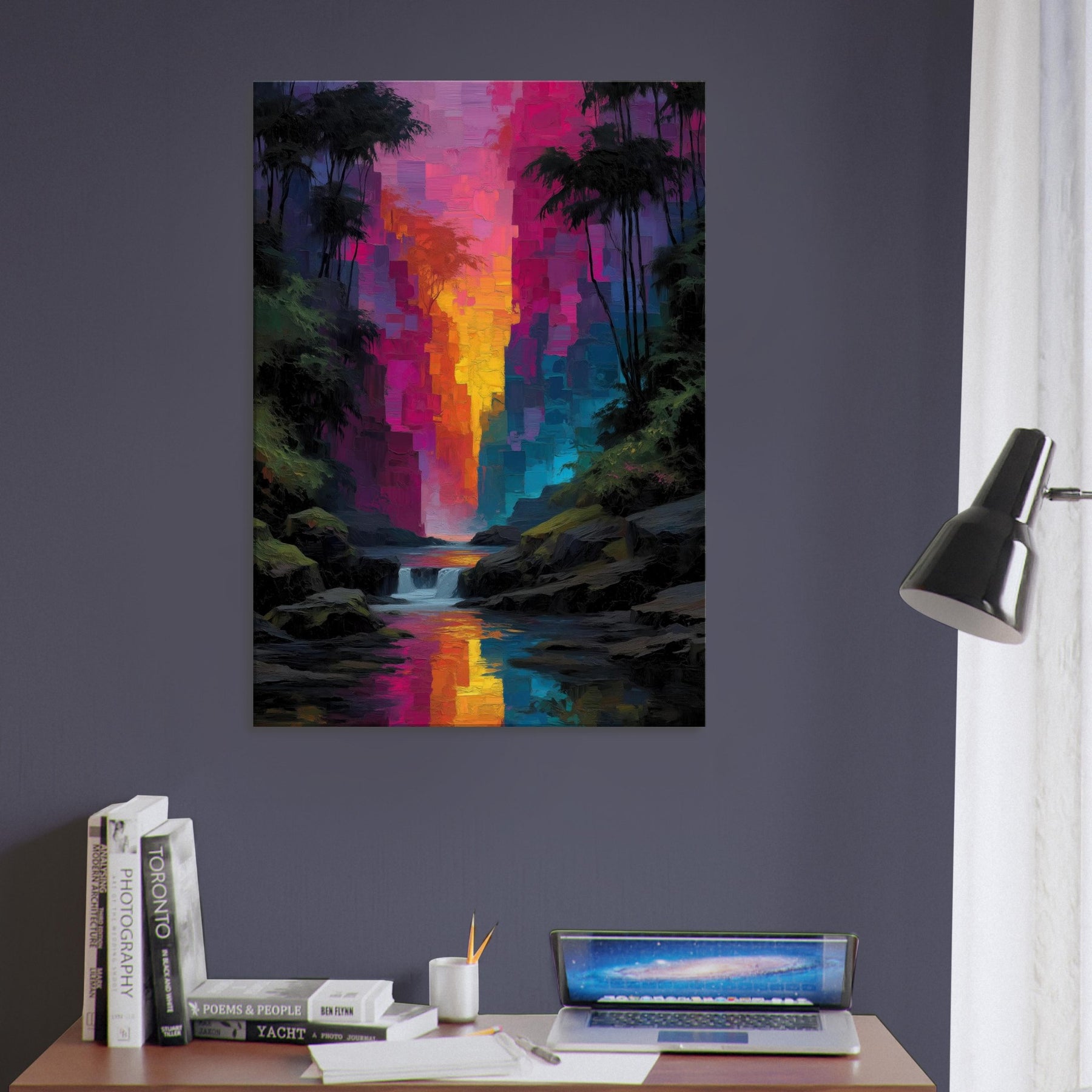 Step into a tropical rain of color where light spills through an abstract canyon and settles on your walls. This piece refracts the senses with luminous blocks that shimmer like rain kissed leaves, guiding the eye toward a river of sunset hues. The Tropical Rain subject bathes the scene in lush glow, turning a living room into a private rainforest alcove. Velvety depth and radiant reflections invite quiet, immersive moments and elevate everyday spaces with effortless elegance.