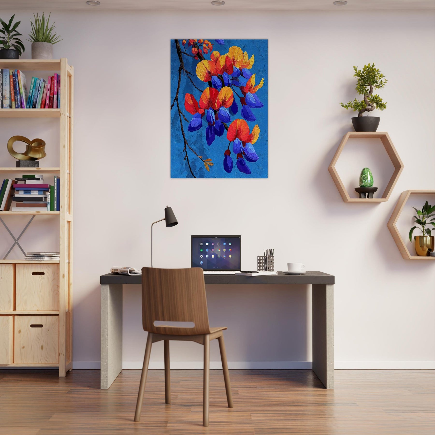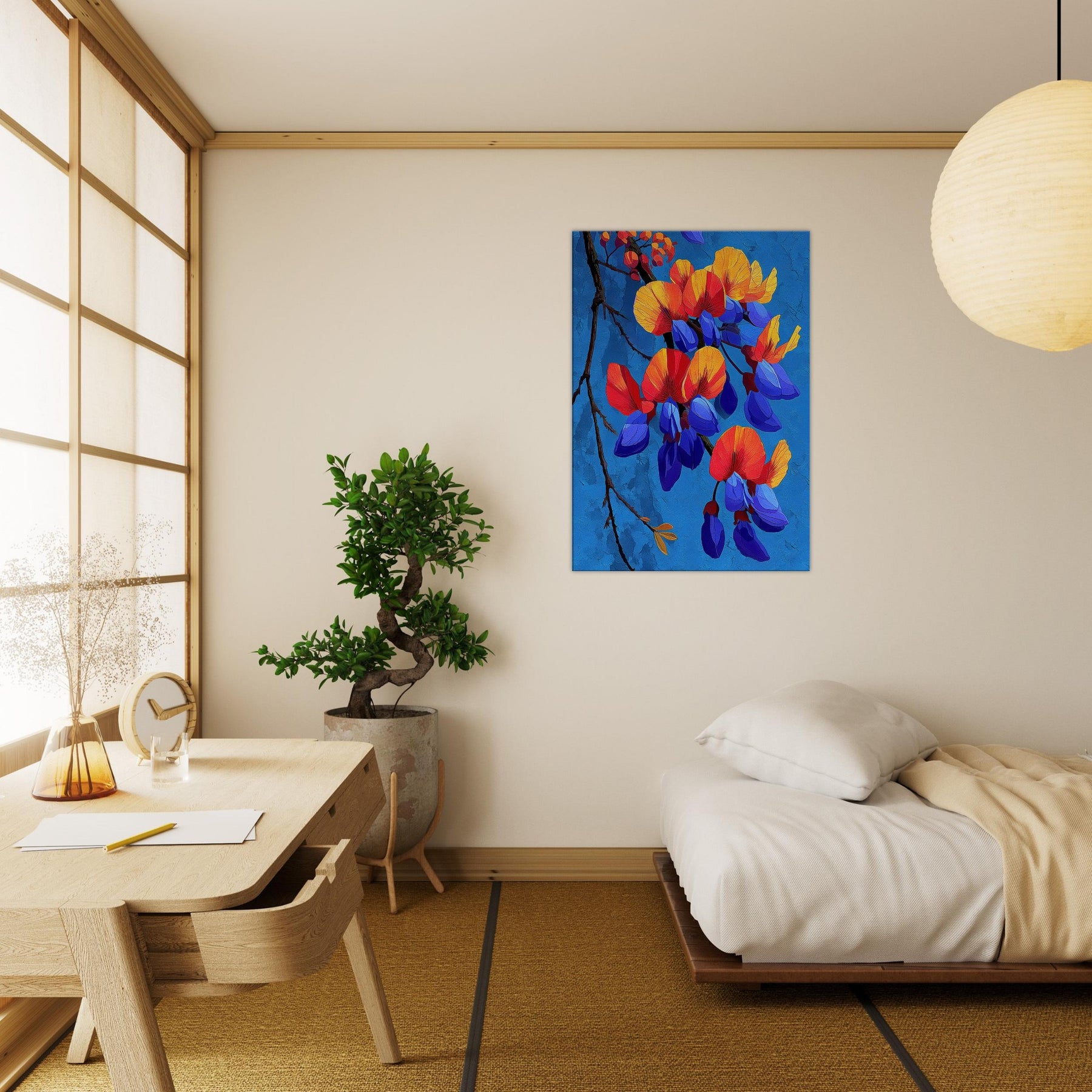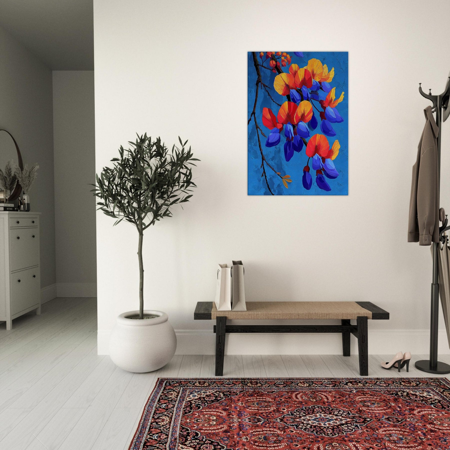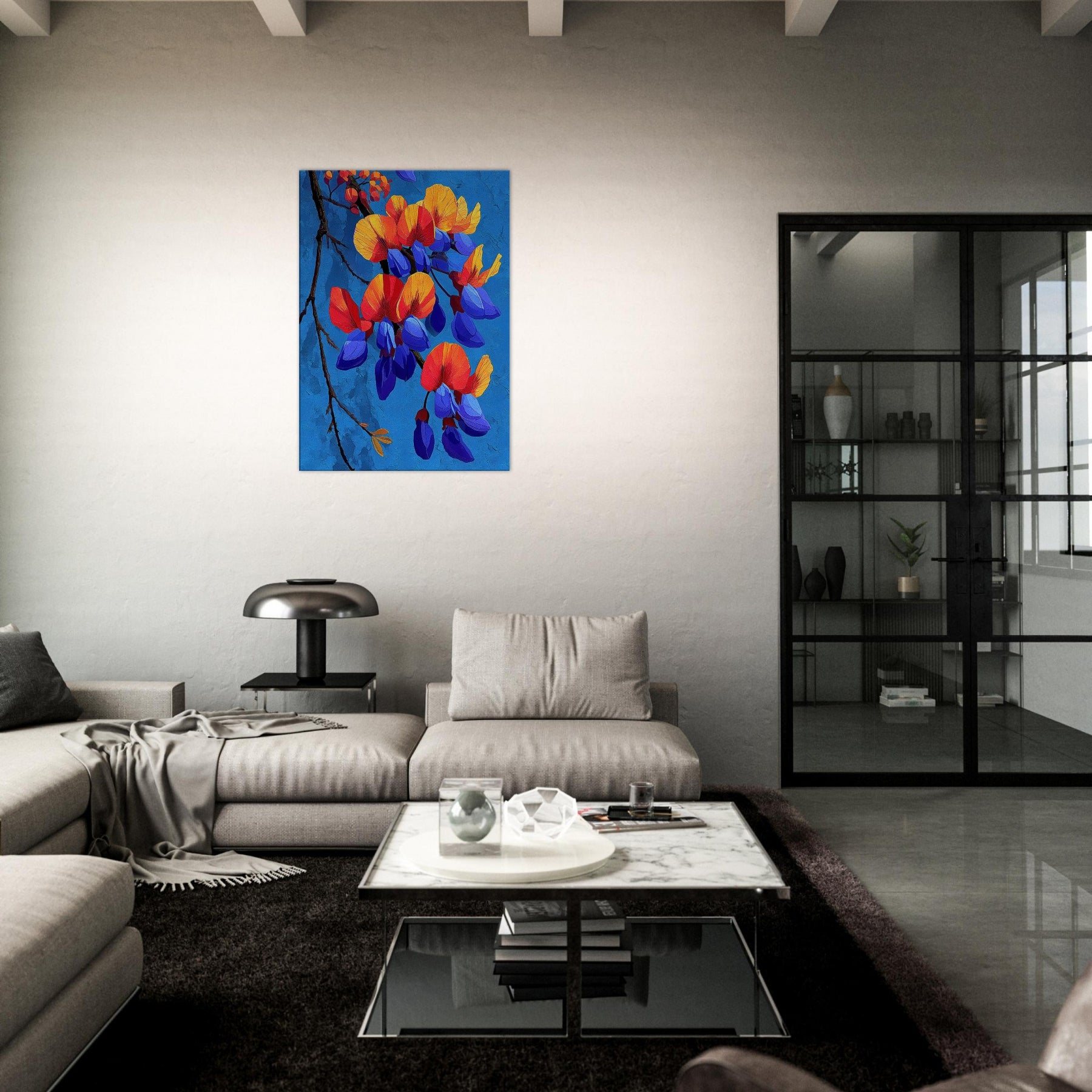 This Wisteria study blooms in a surge of color and movement, turning a wall into a window of spring. The Abstract forms ripple like wind tossed petals, coaxing light to play across the room and inviting quiet awe. Imagine evening conversations under a sky of electric blues and sunlit petals, soft, immersive, and unexpectedly intimate. The piece adds depth and vitality to living spaces, guiding the eye with bold contrasts while remaining soothing to the mind. It feels both nature's bloom and a dream you can live with daily.