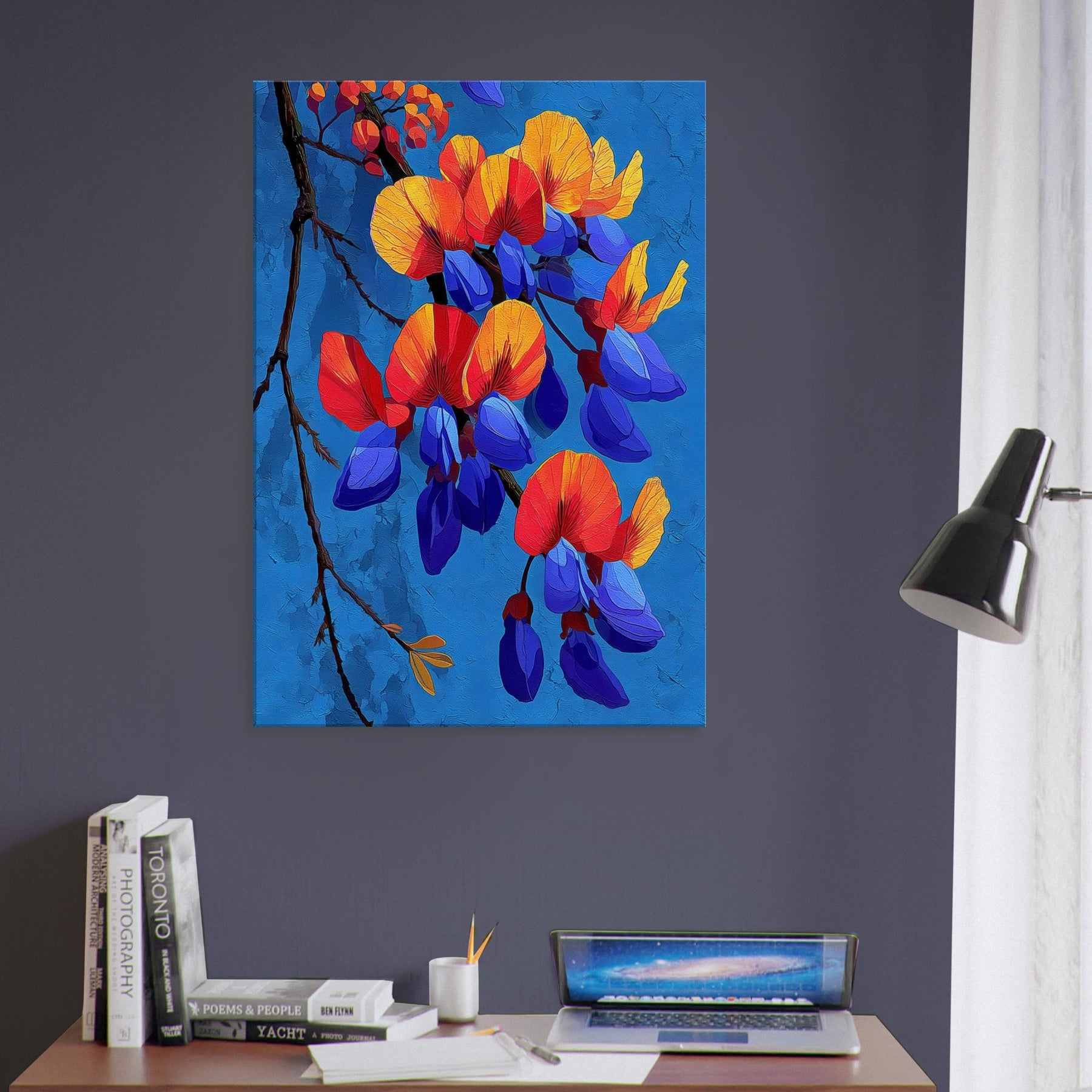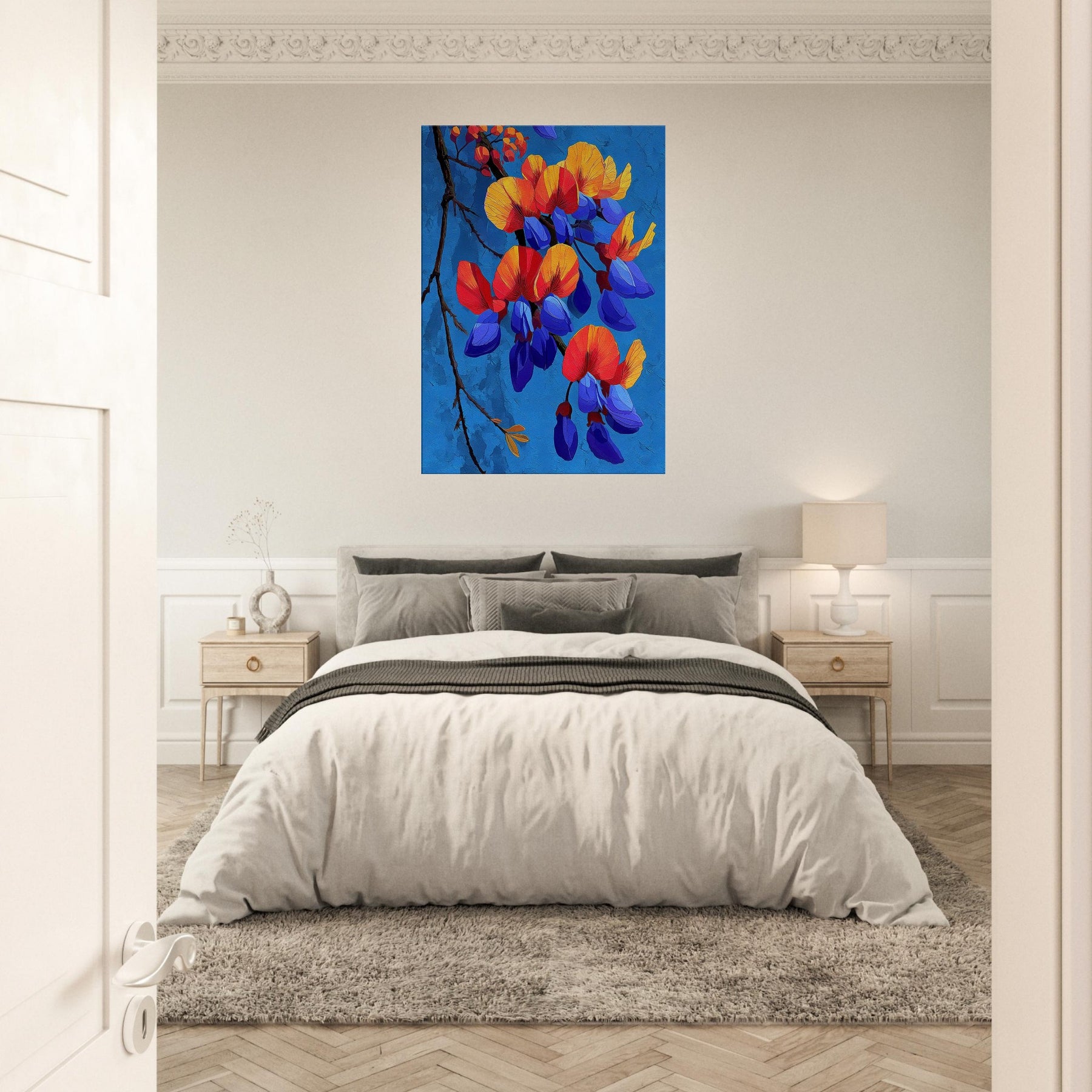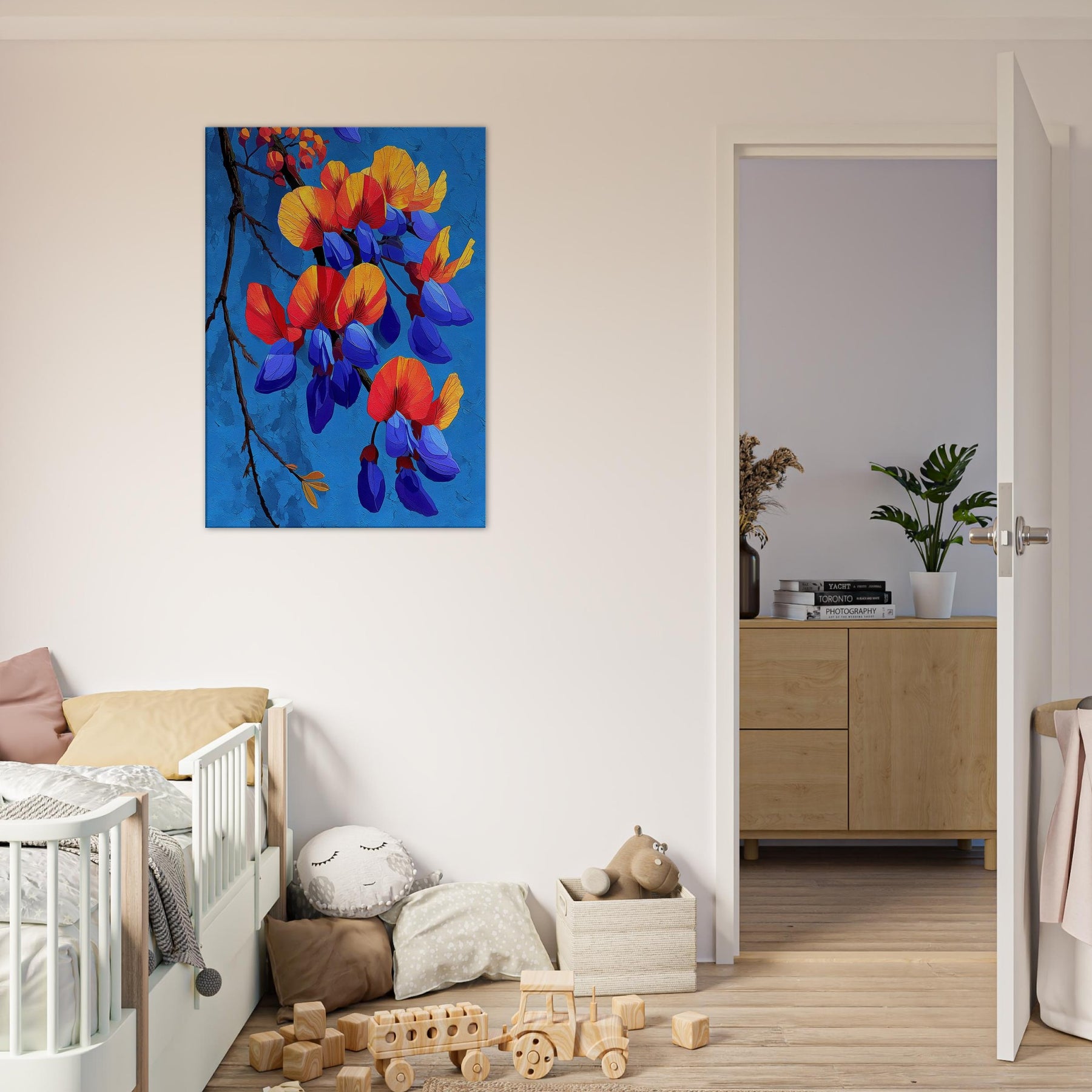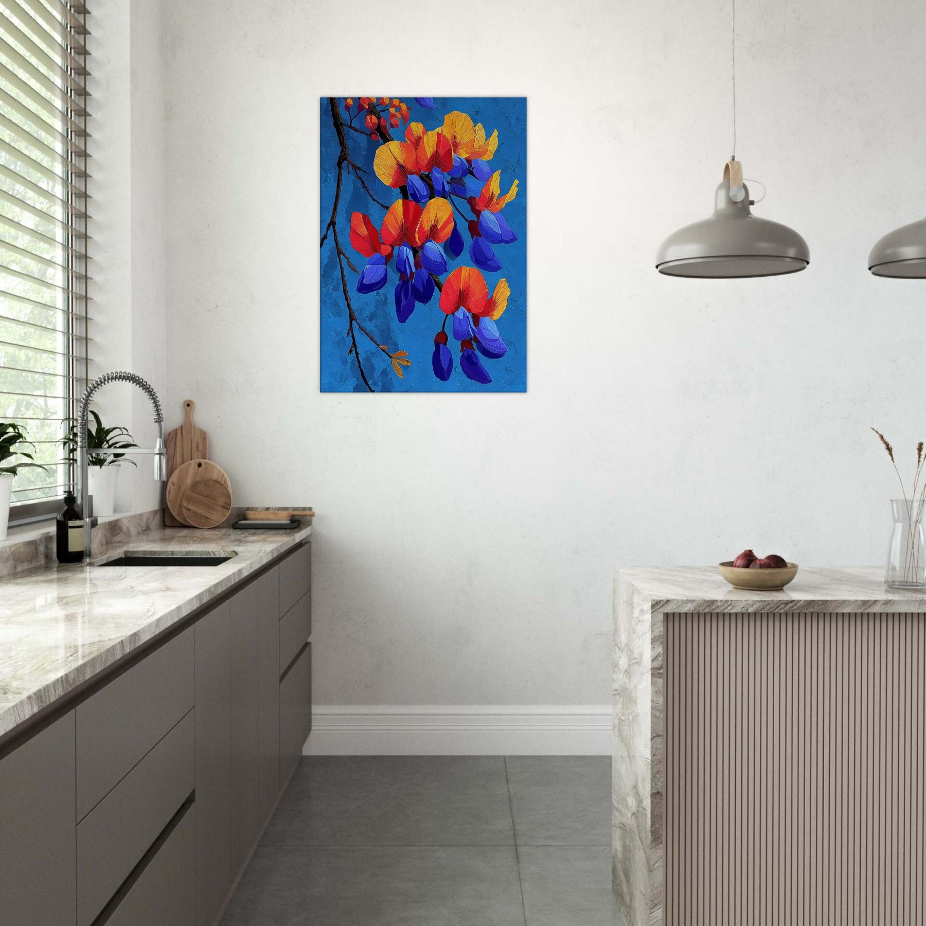 This Wisteria study blooms in a surge of color and movement, turning a wall into a window of spring. The Abstract forms ripple like wind tossed petals, coaxing light to play across the room and inviting quiet awe. Imagine evening conversations under a sky of electric blues and sunlit petals, soft, immersive, and unexpectedly intimate. The piece adds depth and vitality to living spaces, guiding the eye with bold contrasts while remaining soothing to the mind. It feels both nature's bloom and a dream you can live with daily.