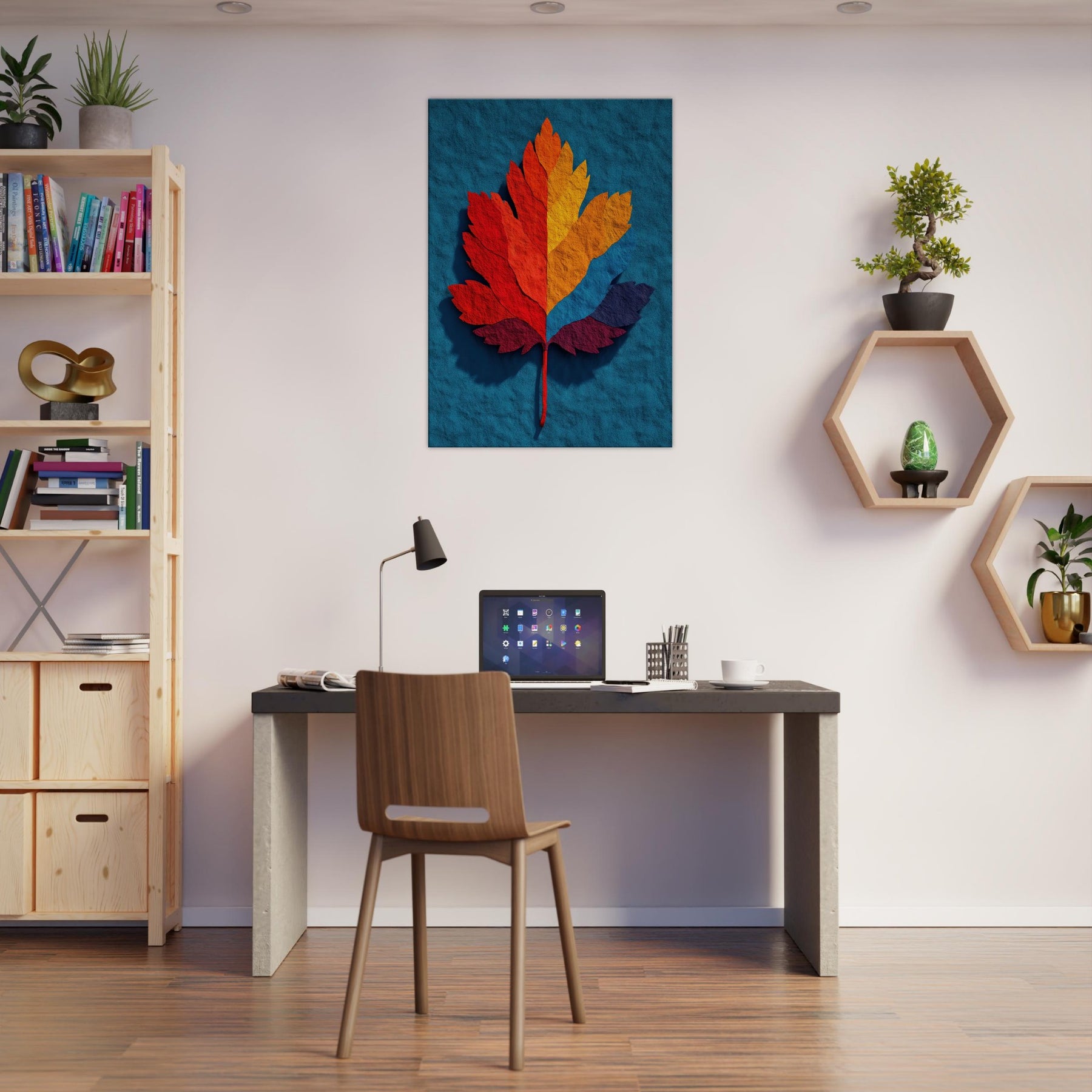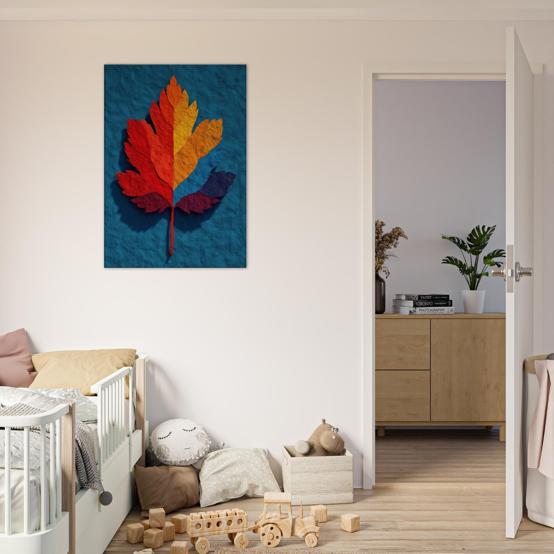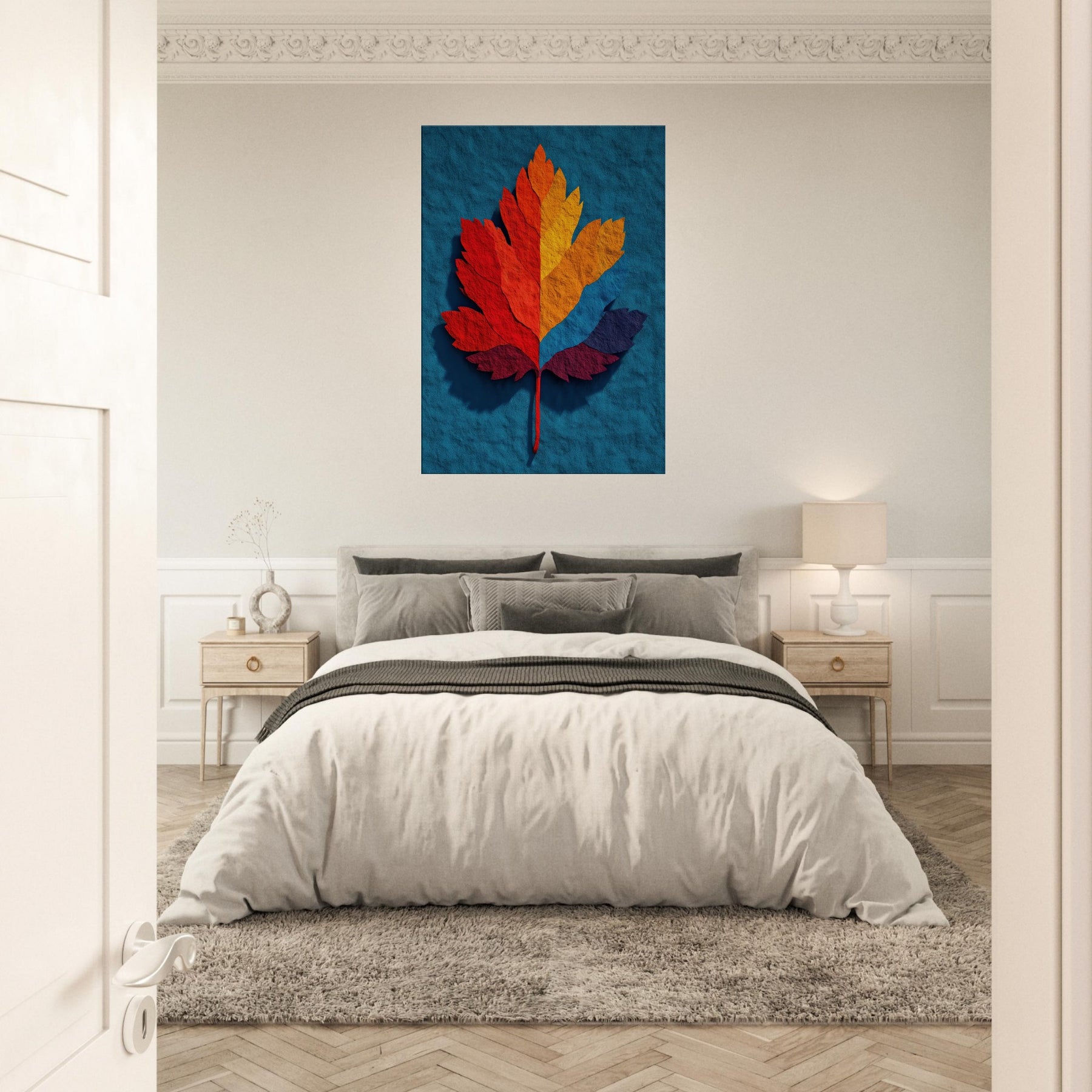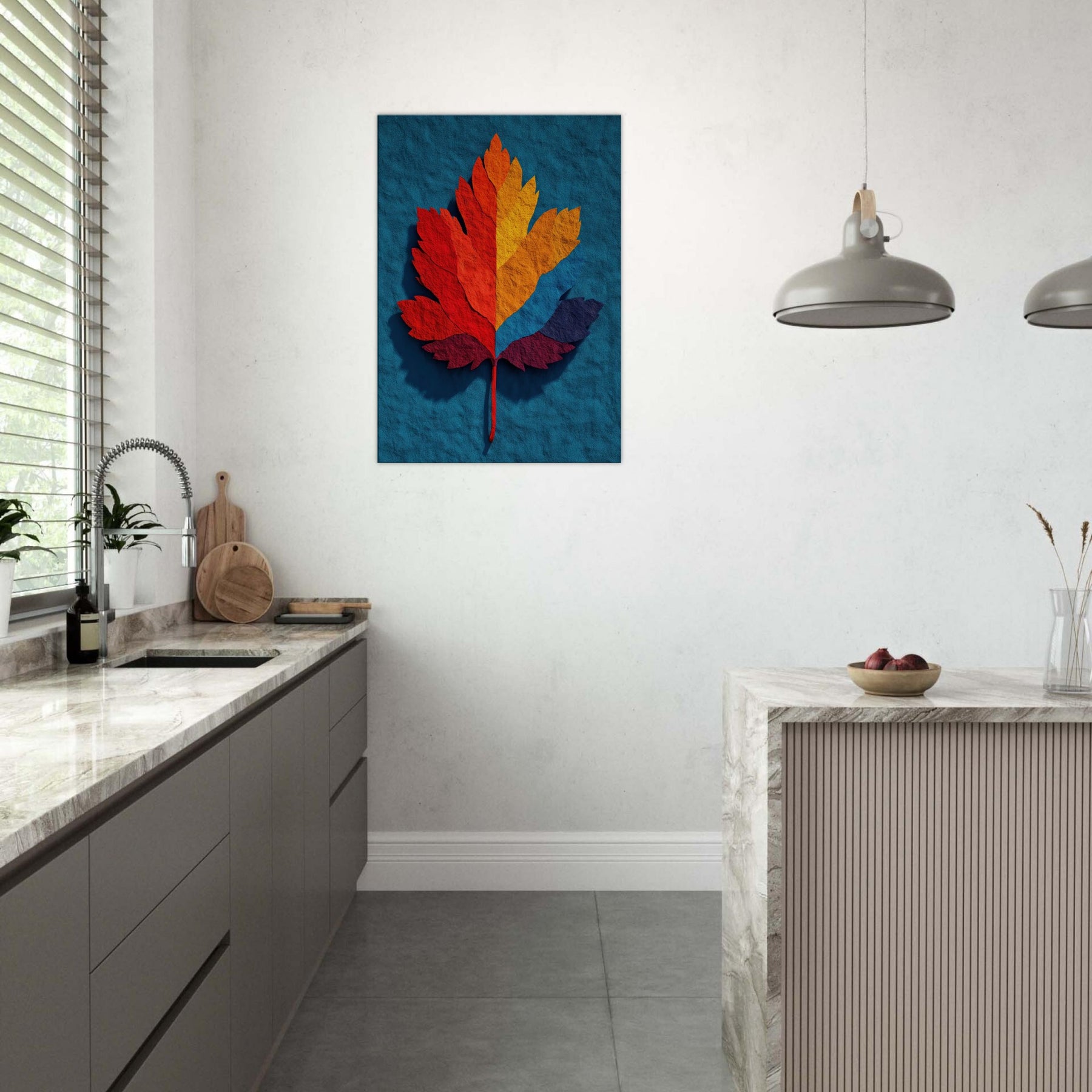 Maple Leaf unfolds across a field of color in this abstract study of nature. The layered silhouette, carved in sunset reds, warm ambers, and deep indigo, invites the room to breathe and dream. Its tactile texture and bold, organic rhythm evoke autumn light spilling over a quiet interior, turning walls into a living . Perfect above a sofa or in a hallway, it adds warmth, movement, and a subtle whisper of connection to the outdoors.
