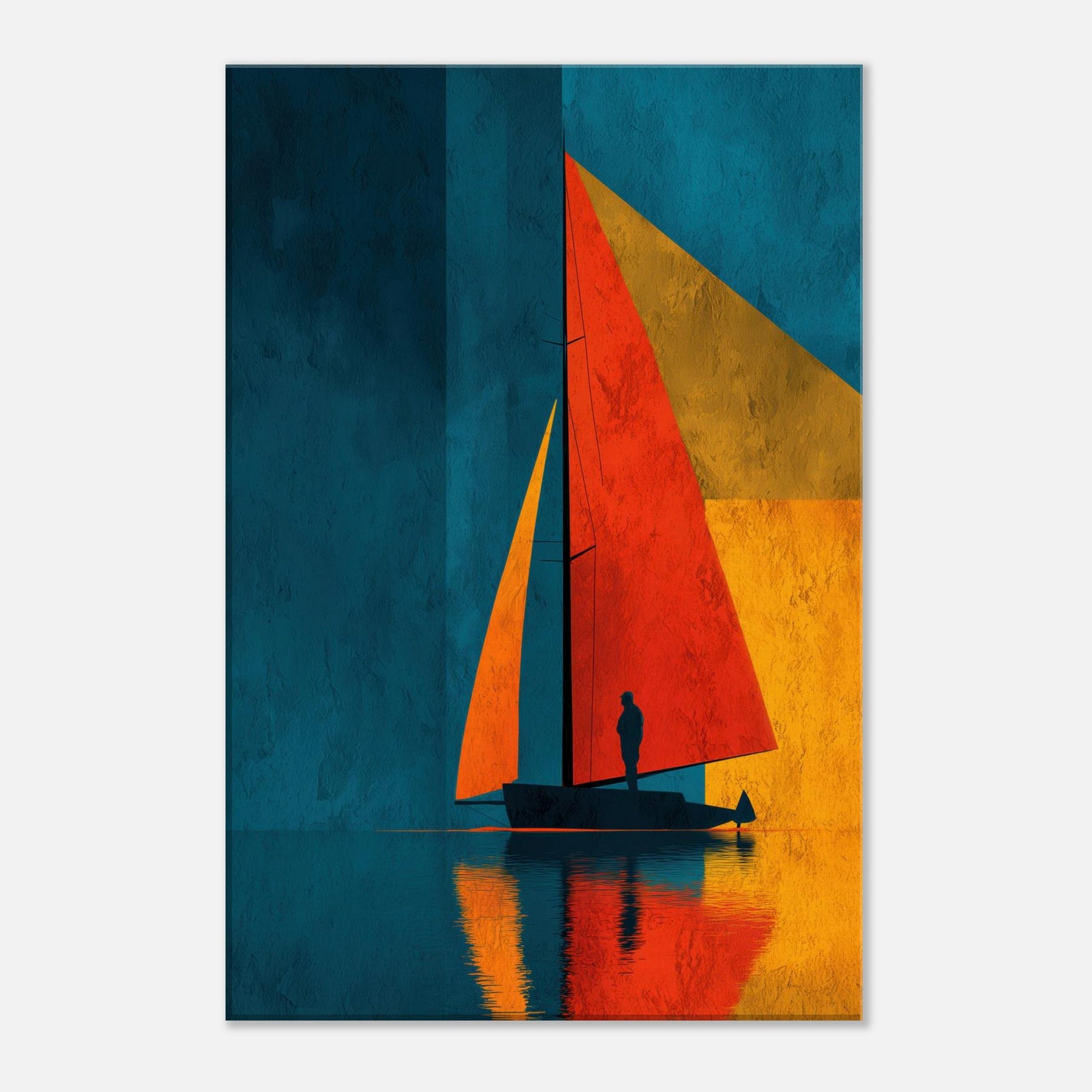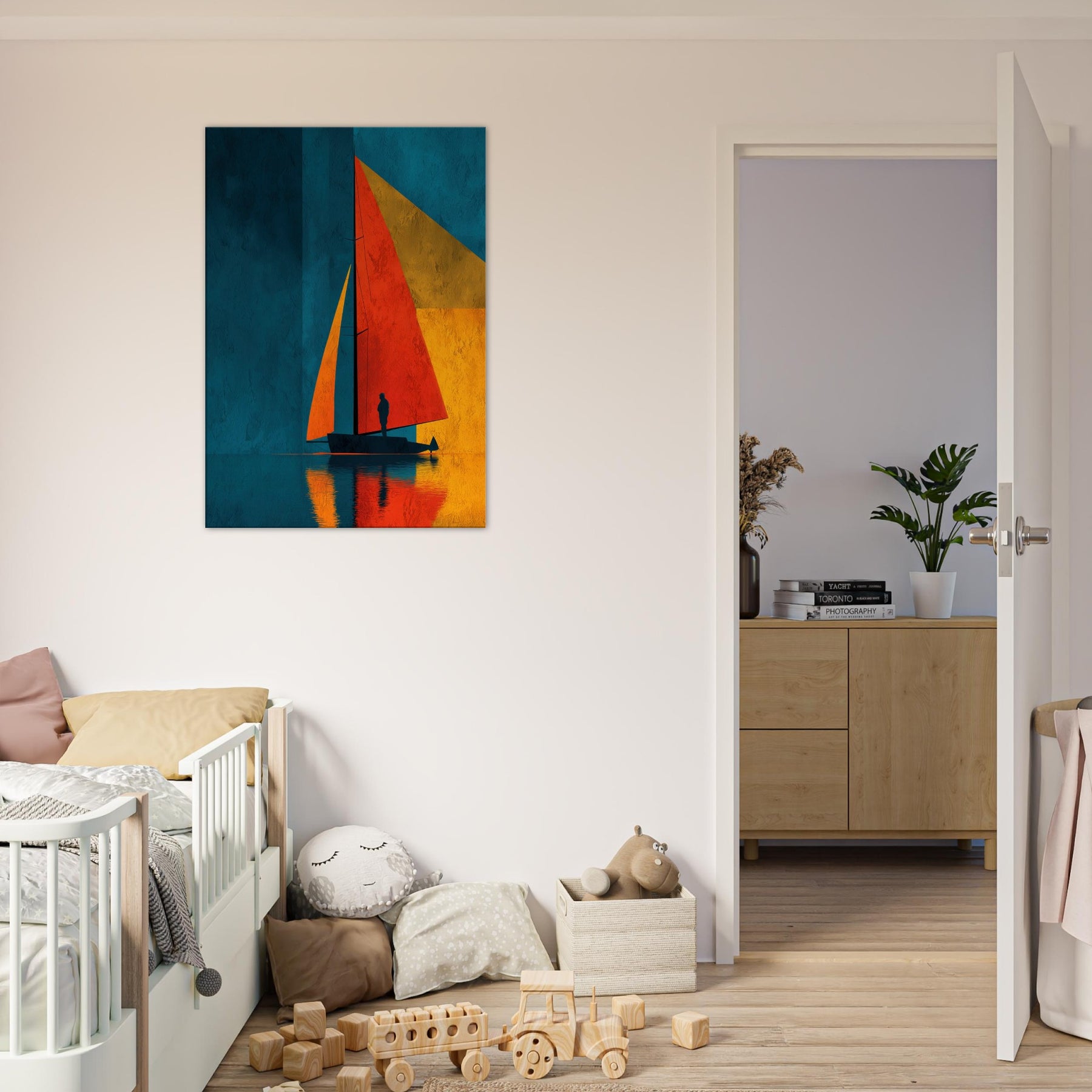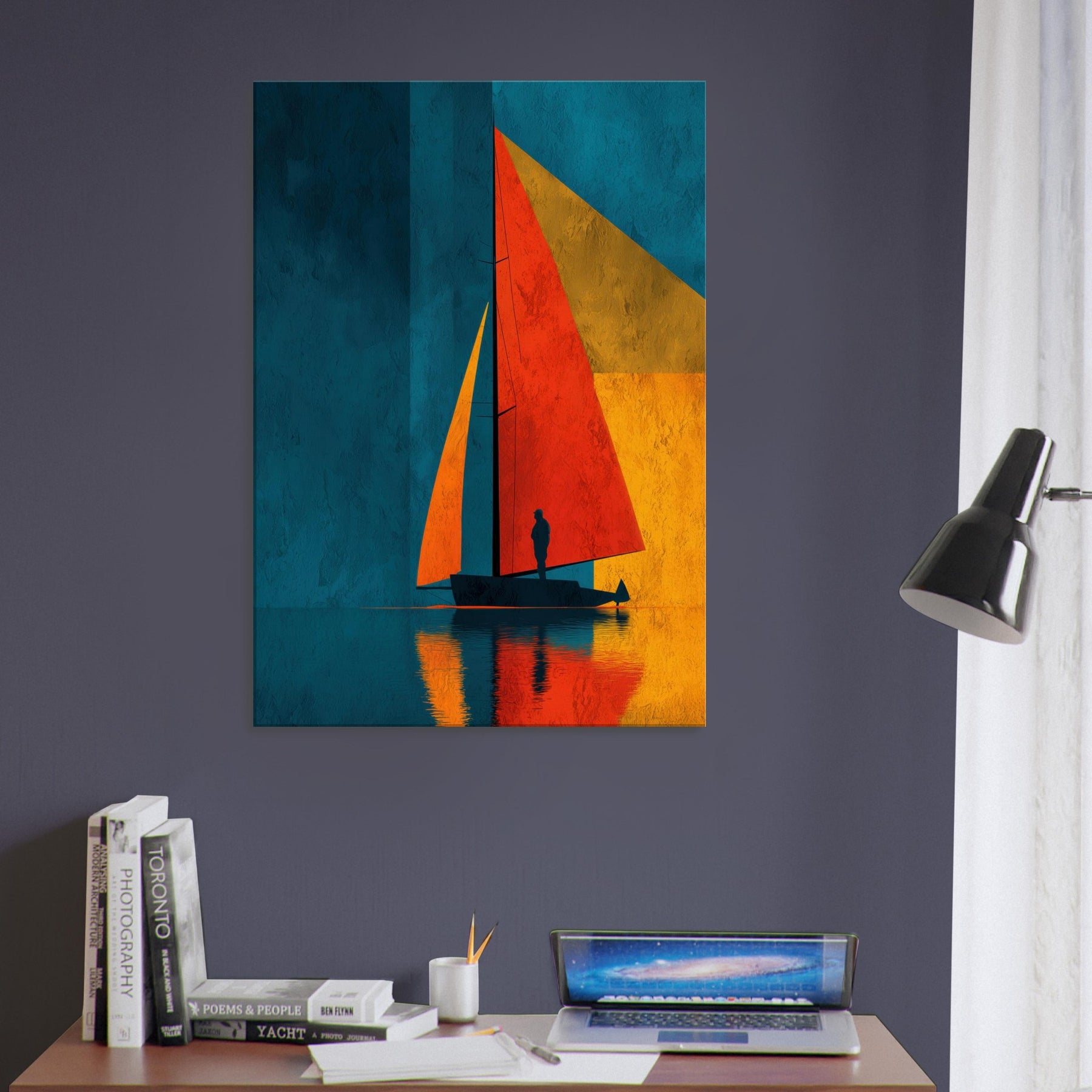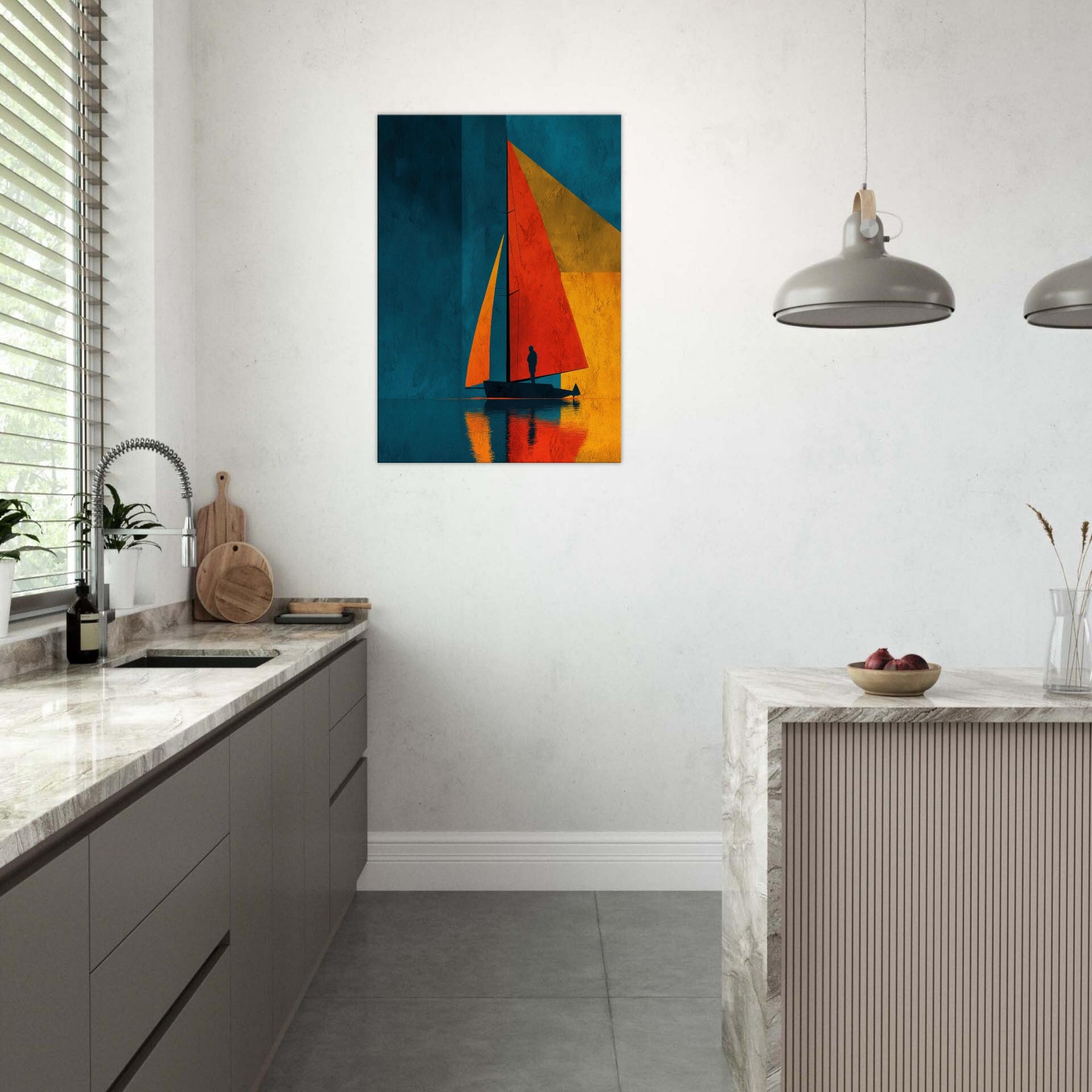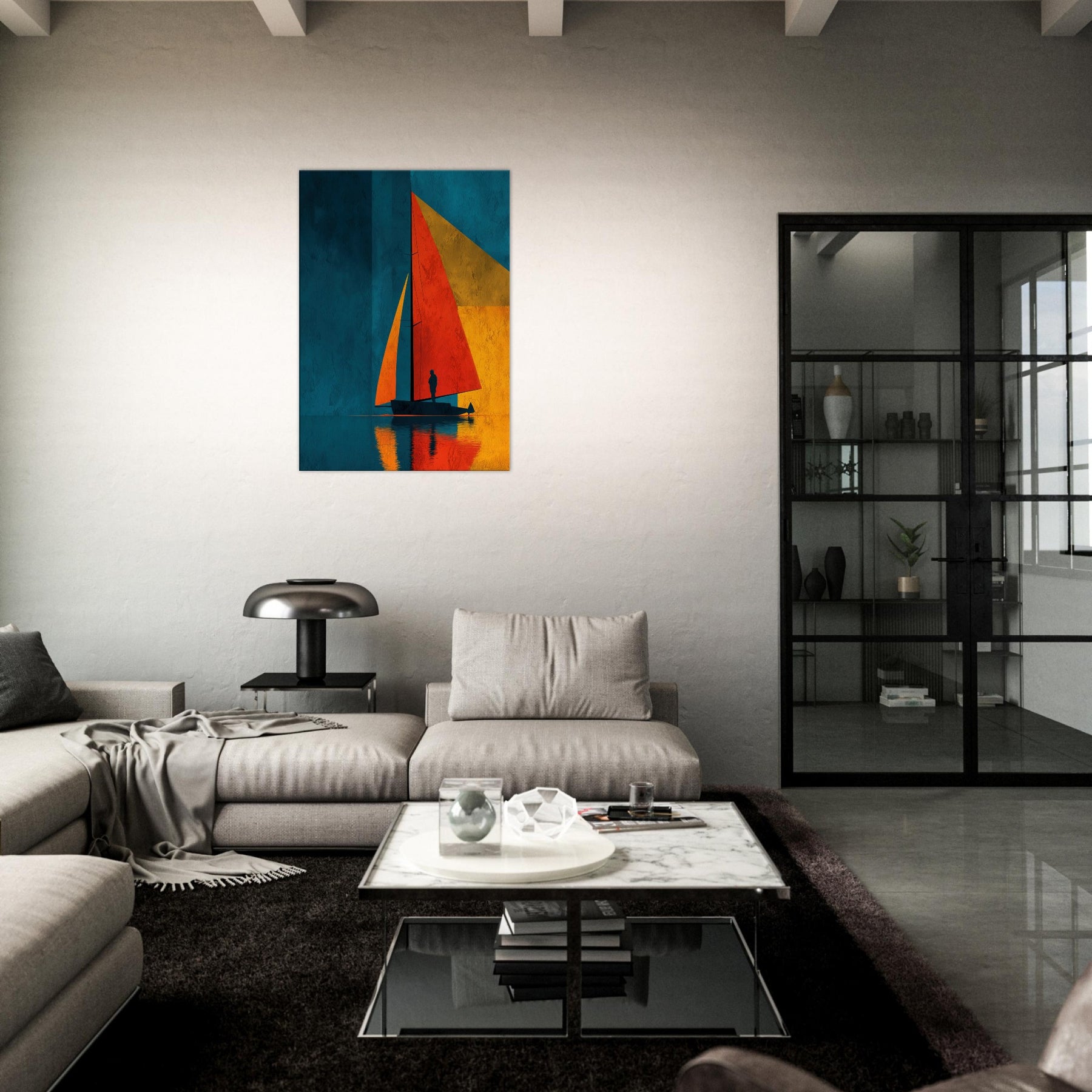 The Sailboat Silhouette glides through a harbor of teal and gold, its sails a blaze of orange and crimson against a quiet, ink blue sea. This evocative piece invites calm and contemplation, conjuring sea breeze and sunset light with a single, elegant line. In a living room or bedroom, it warms walls with a magnetic glow, converting everyday space into a harbor of memory and quiet adventure. A statement work that enhances ambience without shouting for attention.