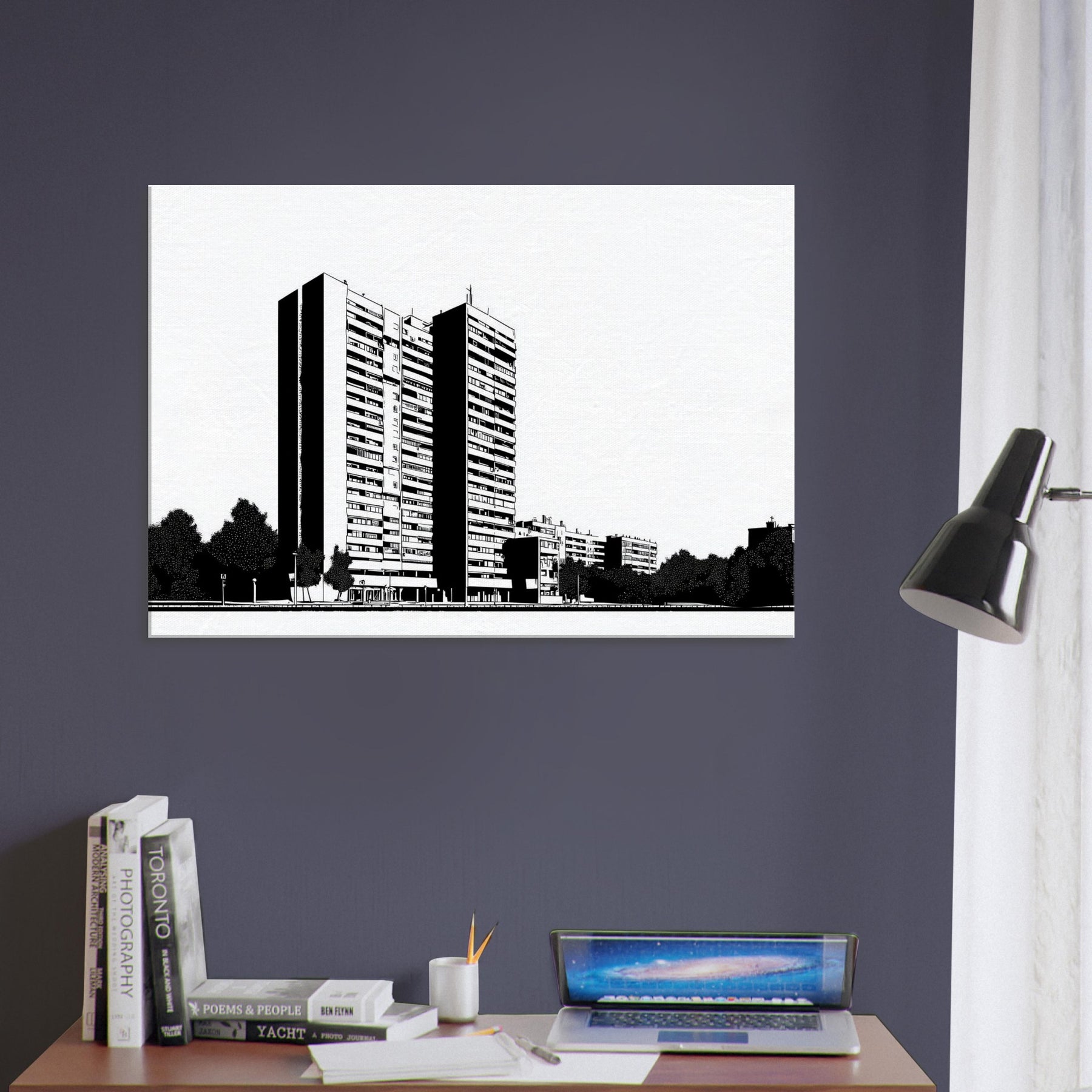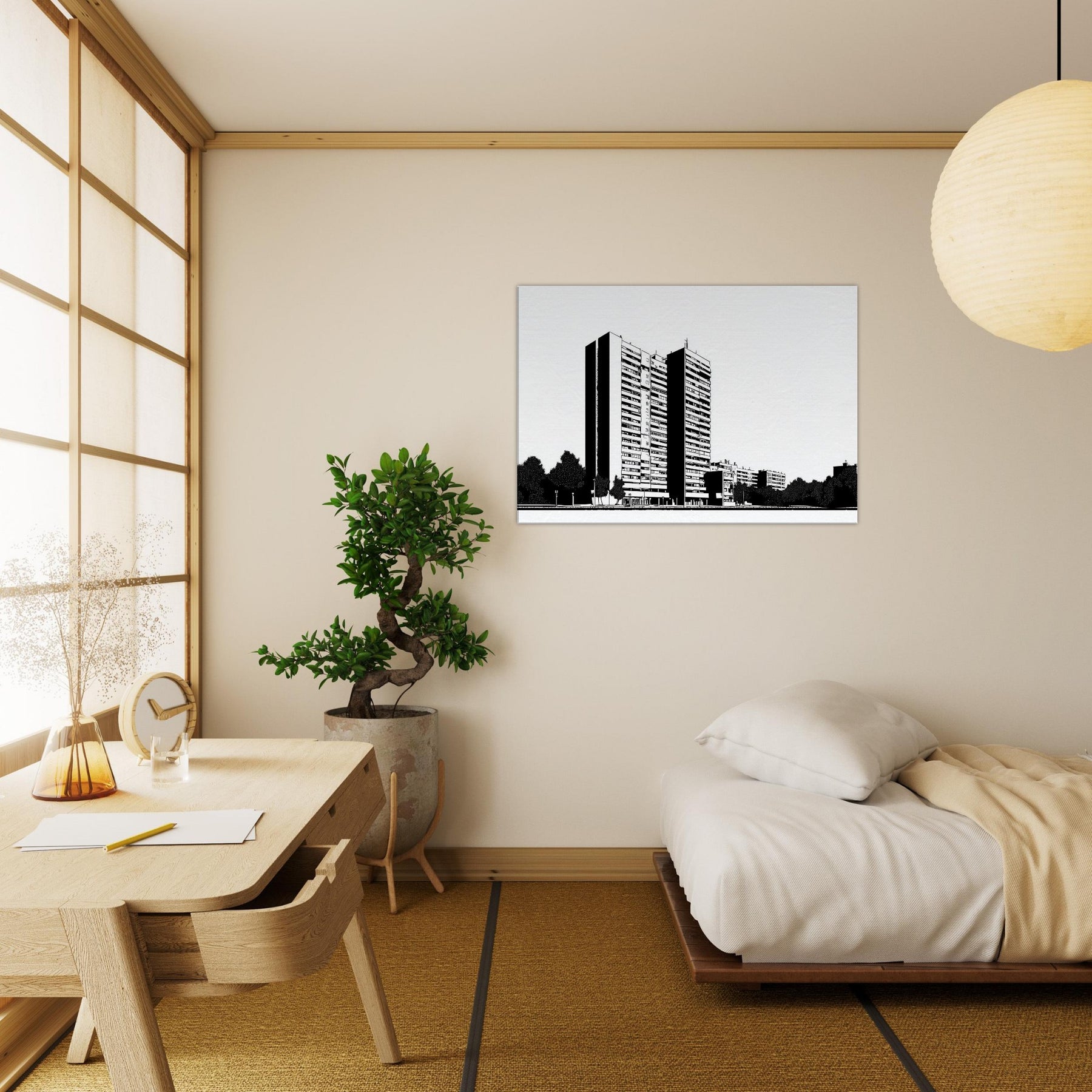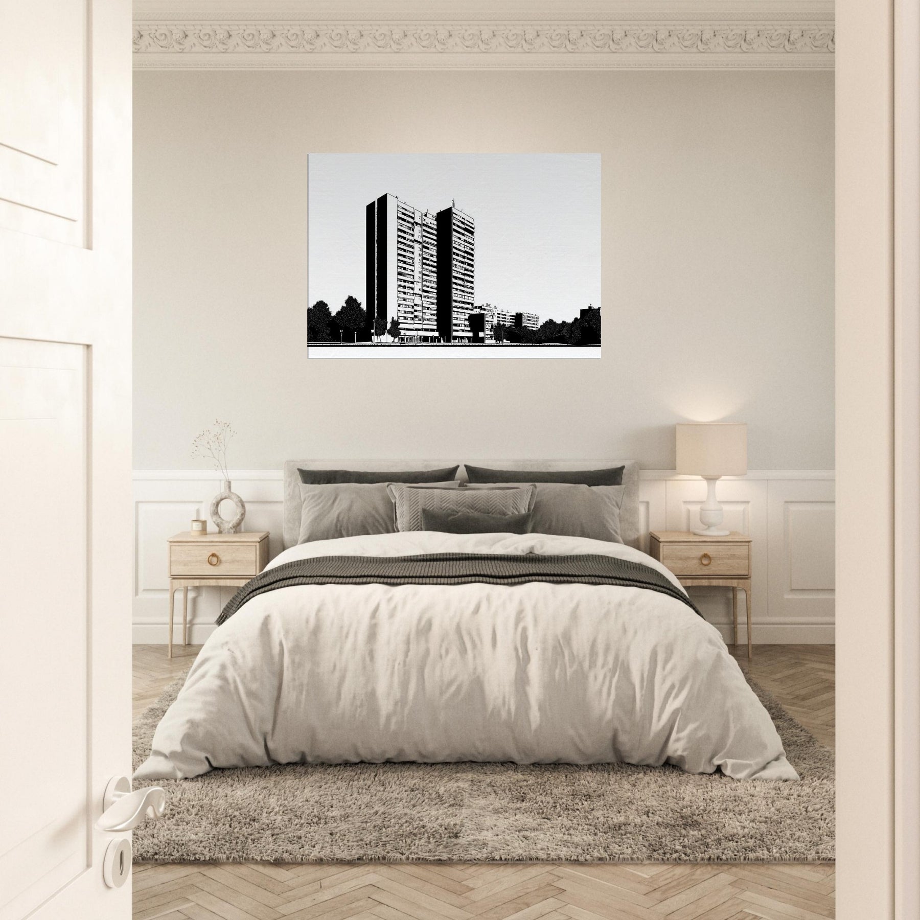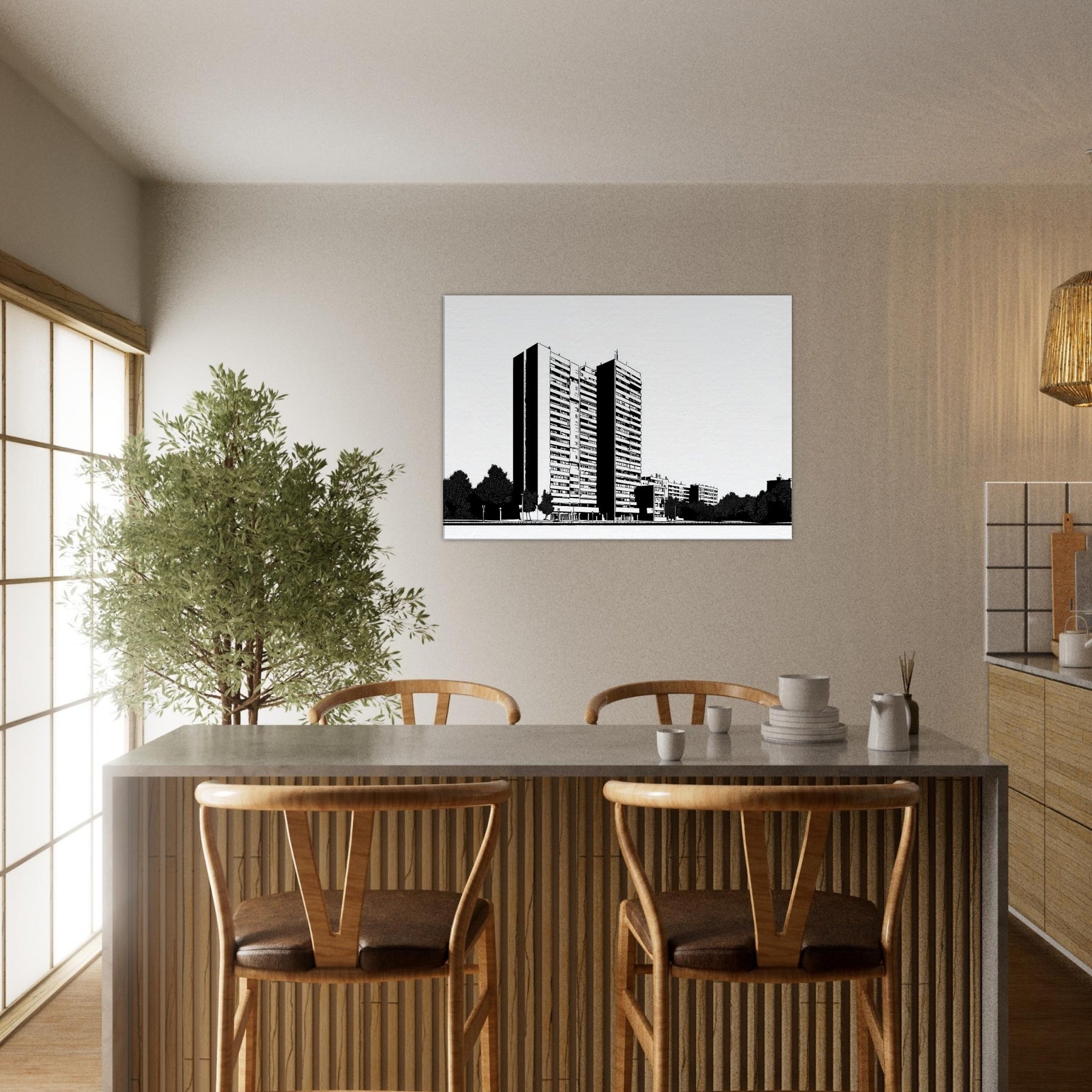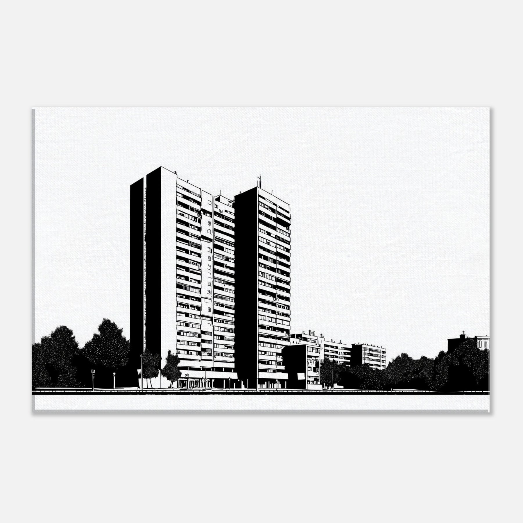 A crisp line drawing of Barcelona's urban spine, where towering blocks rise in quiet rhythm against a pristine white field. The bold monochrome lines capture the city’s architectural heartbeat, evoking sunlit façades and evening shadows without a single flourish. Perfect for modern living spaces, it brings a sense of order, clarity, and subtle drama to a lounge, hallway, or office. Let this minimalist Barcelona scene anchor your surroundings an elegant reminder that structure can be serene and inspiring.