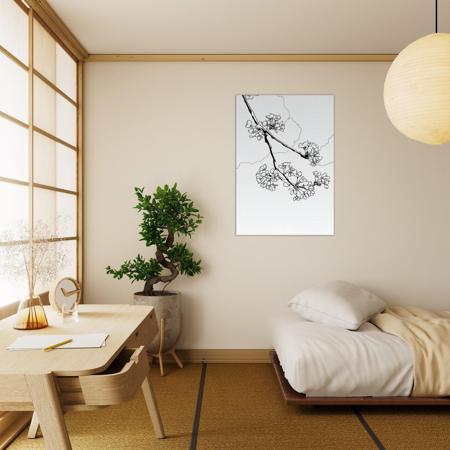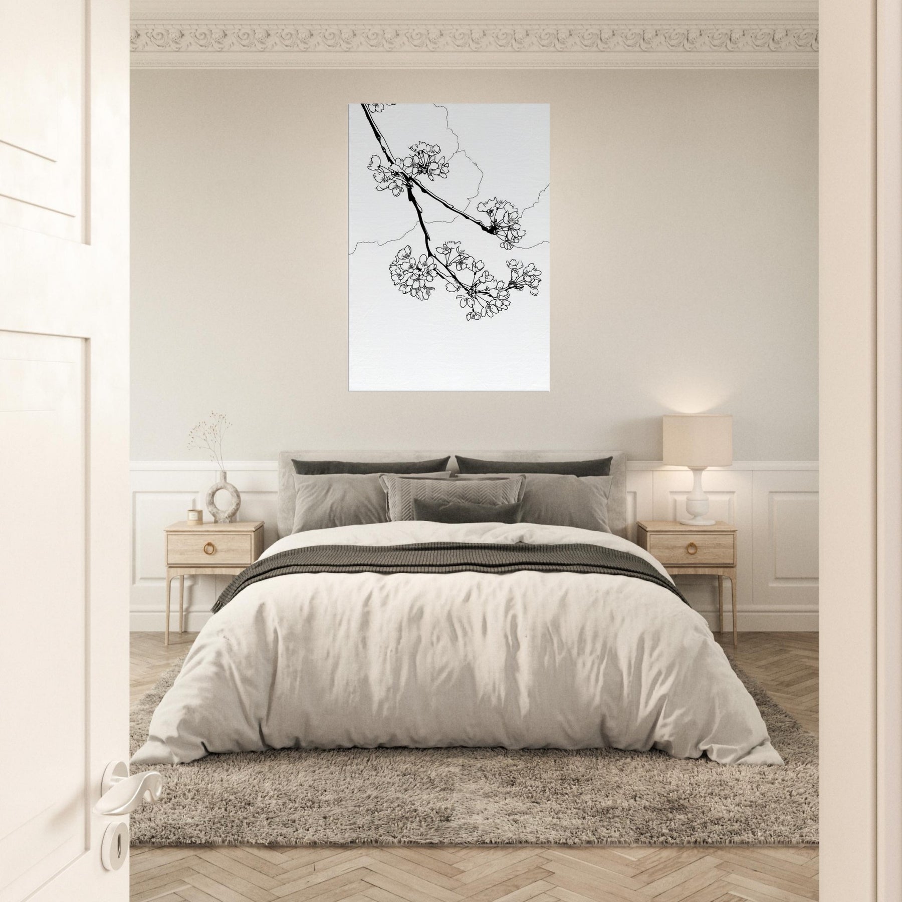 Immerse your space in the quiet elegance of Cherry Blossom rendered in delicate line art. This monochrome study breathes serenity, inviting the eye to follow its airy branches as if tracing a breeze through a sunlit garden. The generous negative space makes the room feel taller and calmer, perfect for a living room nook or tranquil bedroom. With its timeless simplicity, this piece elevates a modern interior while honoring nature’s fleeting beauty an intimate focal point that ages gracefully with your home.