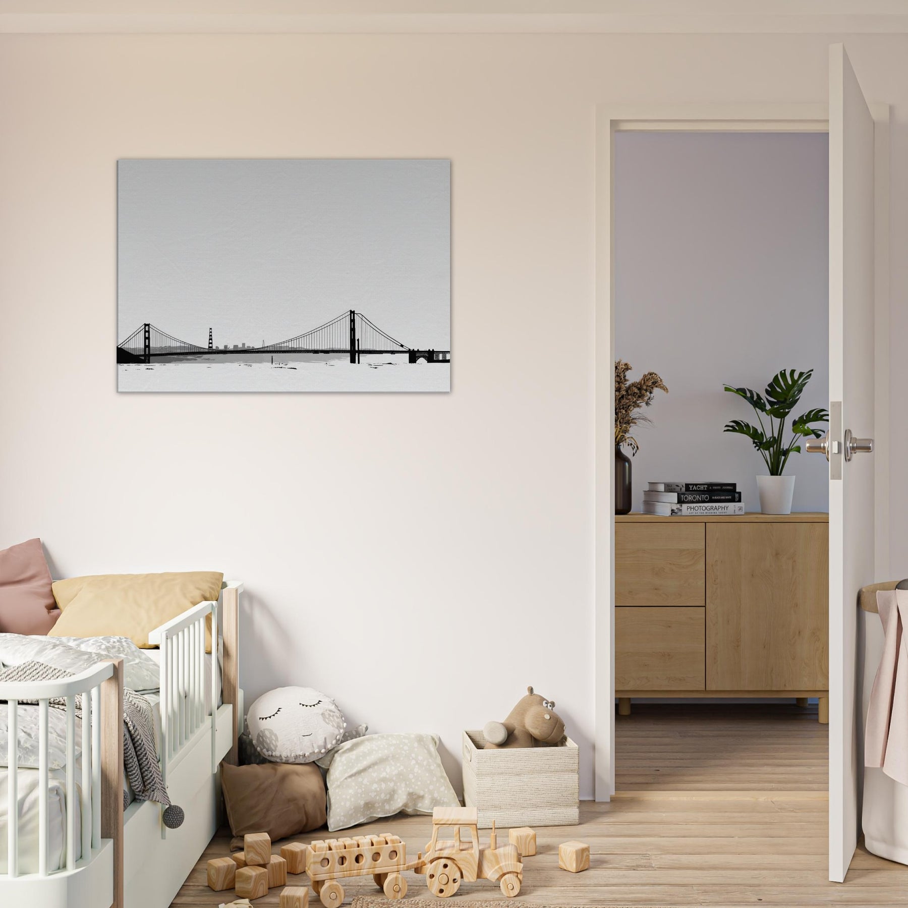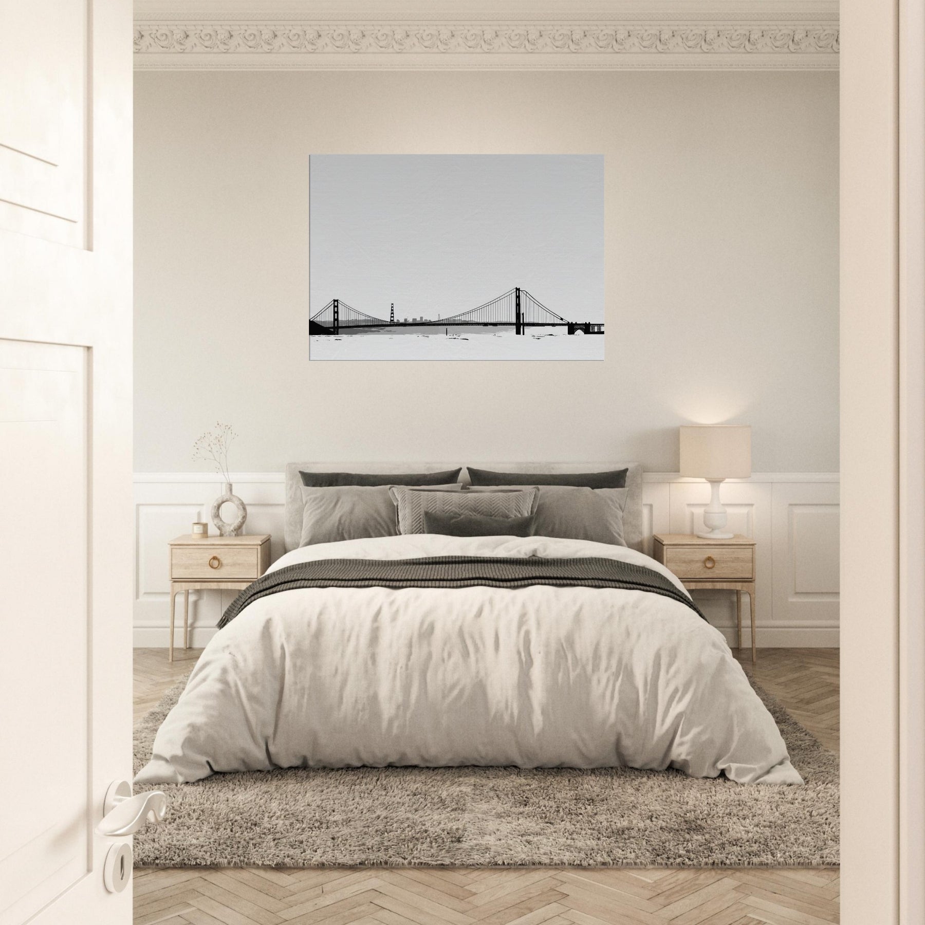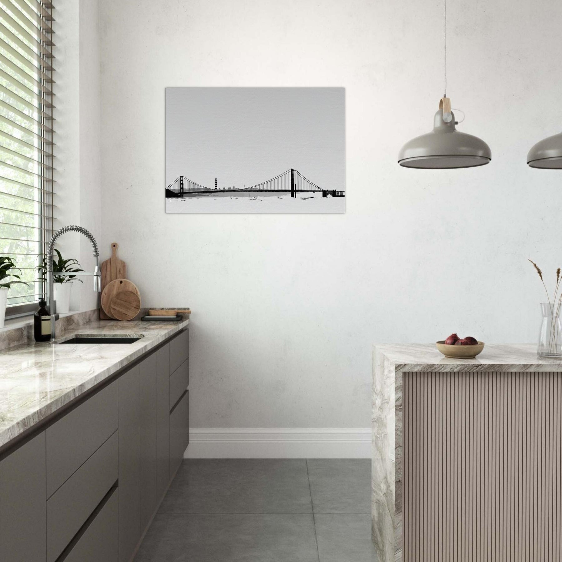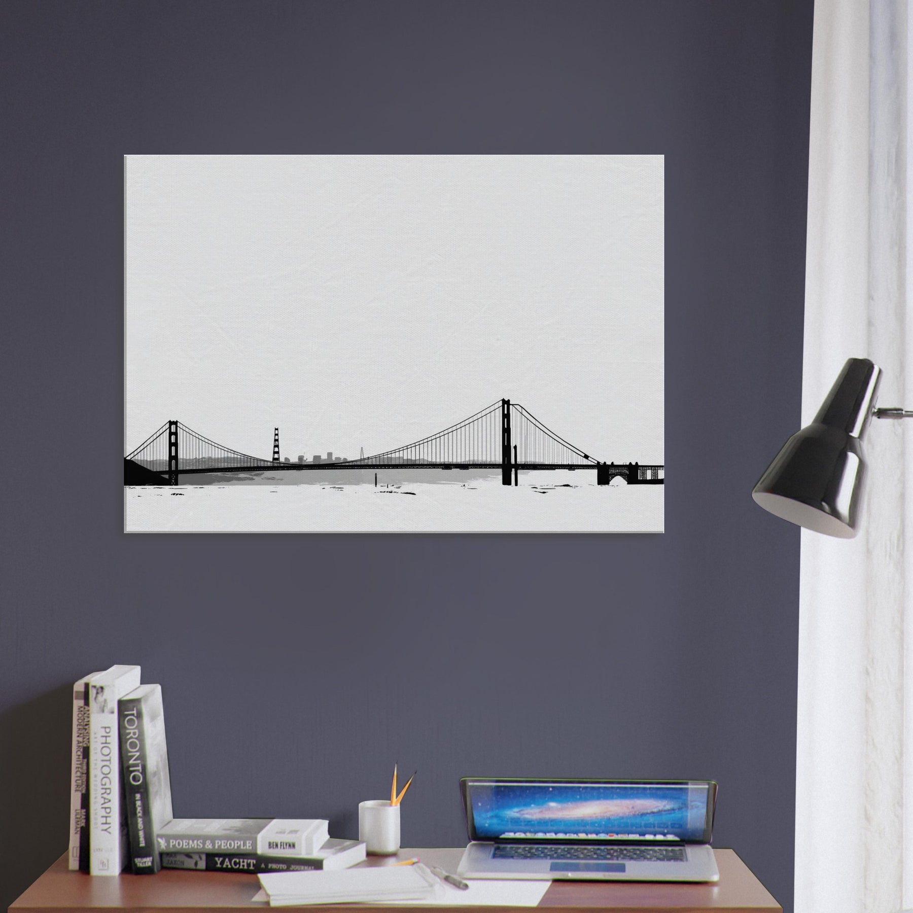 Drawn in crisp, continuous lines, this piece captures the elegance of Famous Bridges the Golden Gate and Tower Bridge without superfluous detail. The result is a serene, architectural presence that feels both modern and timeless. As light shifts across the room, the stark black and white design casts graceful silhouettes that illuminate a seating area or entryway, inviting quiet contemplation. Hang it where conversation flows and let the city’s iconic lines inspire daily balance and clarity in your space.