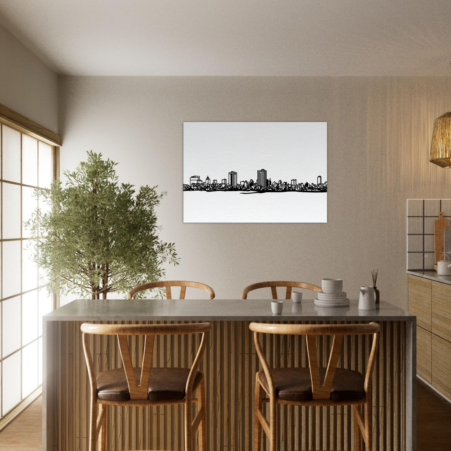 Cairo, rendered in elegant, continuous lines, becomes a quiet city song you can hang above your couch. This line art portrayal captures the rhythm of a shoreline skyline and the silhouette of towers in a study like simplicity. The stark black on white surface invites calm focus, turning a busy day into a moment of reflection. In your living room or office, it pairs with natural textures and soft lighting to add depth, balance, and the feeling of endless, open horizons.