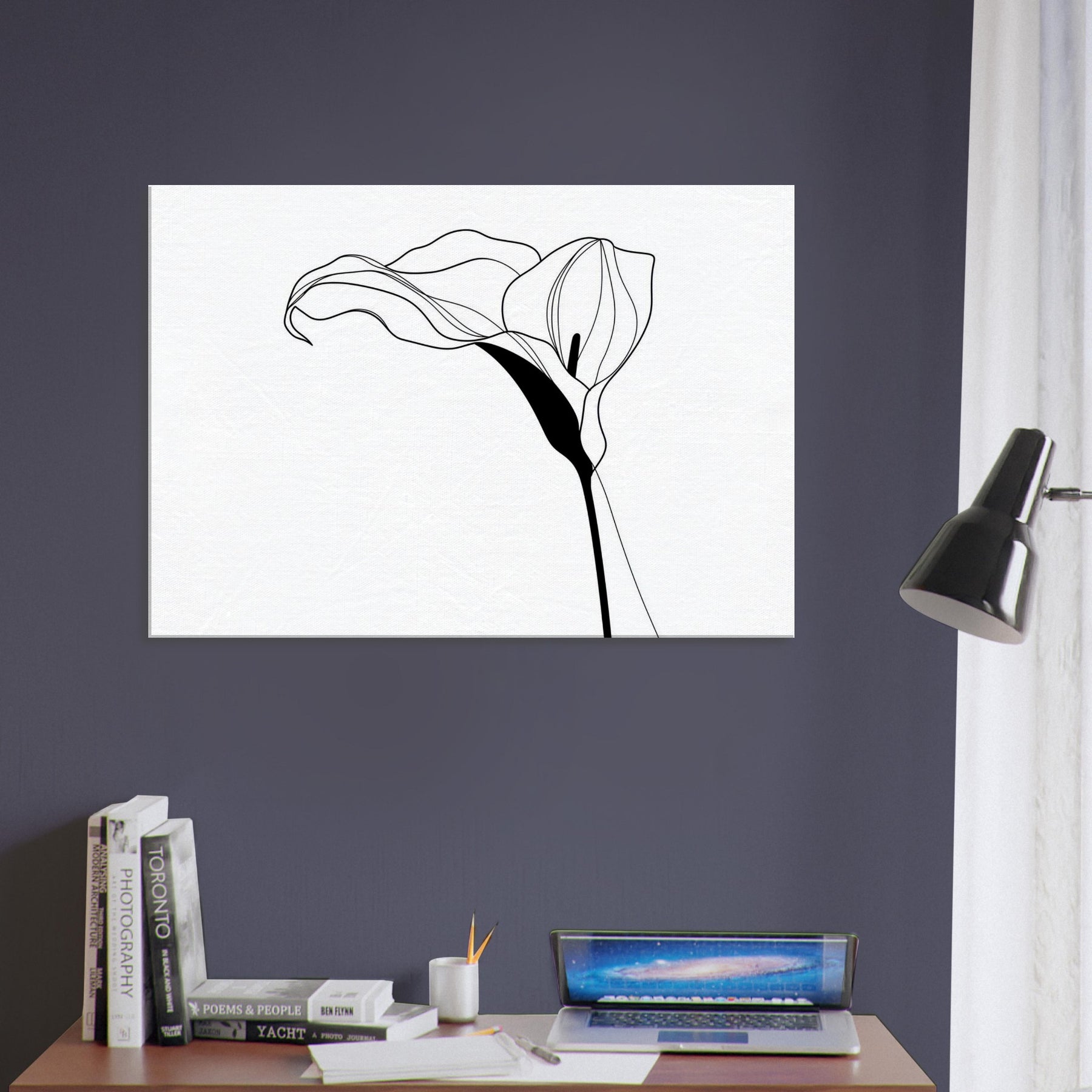 Within its delicate, continuous lines, the Calla Lily unfolds with quiet grace, a study in restraint and poetry. This line art bloom casts soft shadows across a serene white space, inviting calm to settle over your living room or bedroom. The minimal topology of ink against negative space creates a modern whisper of nature, a subtle focal point that enhances light, texture, and mood. Ideal for a gallery wall or a calm corner, it breathes clarity and organic elegance into everyday living.