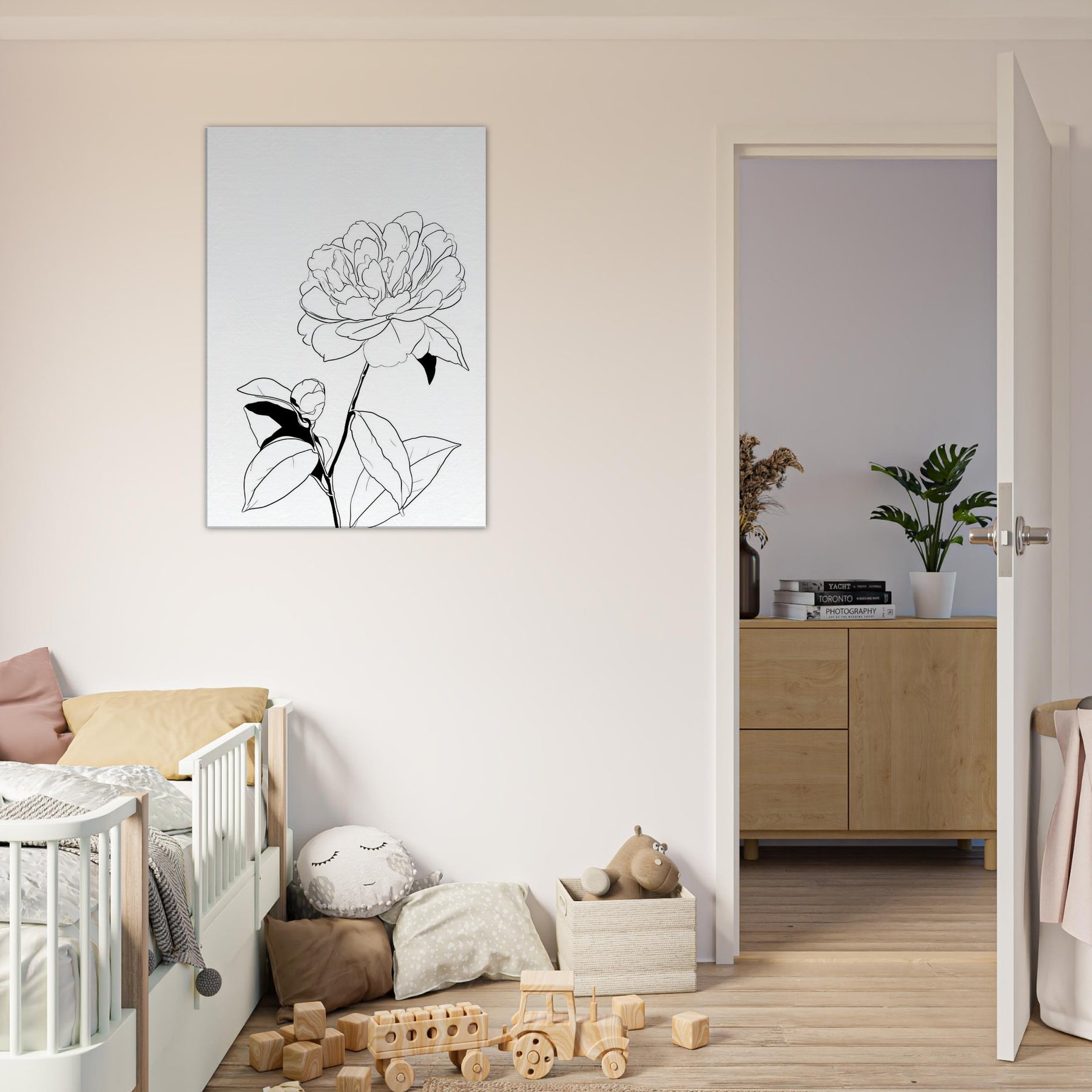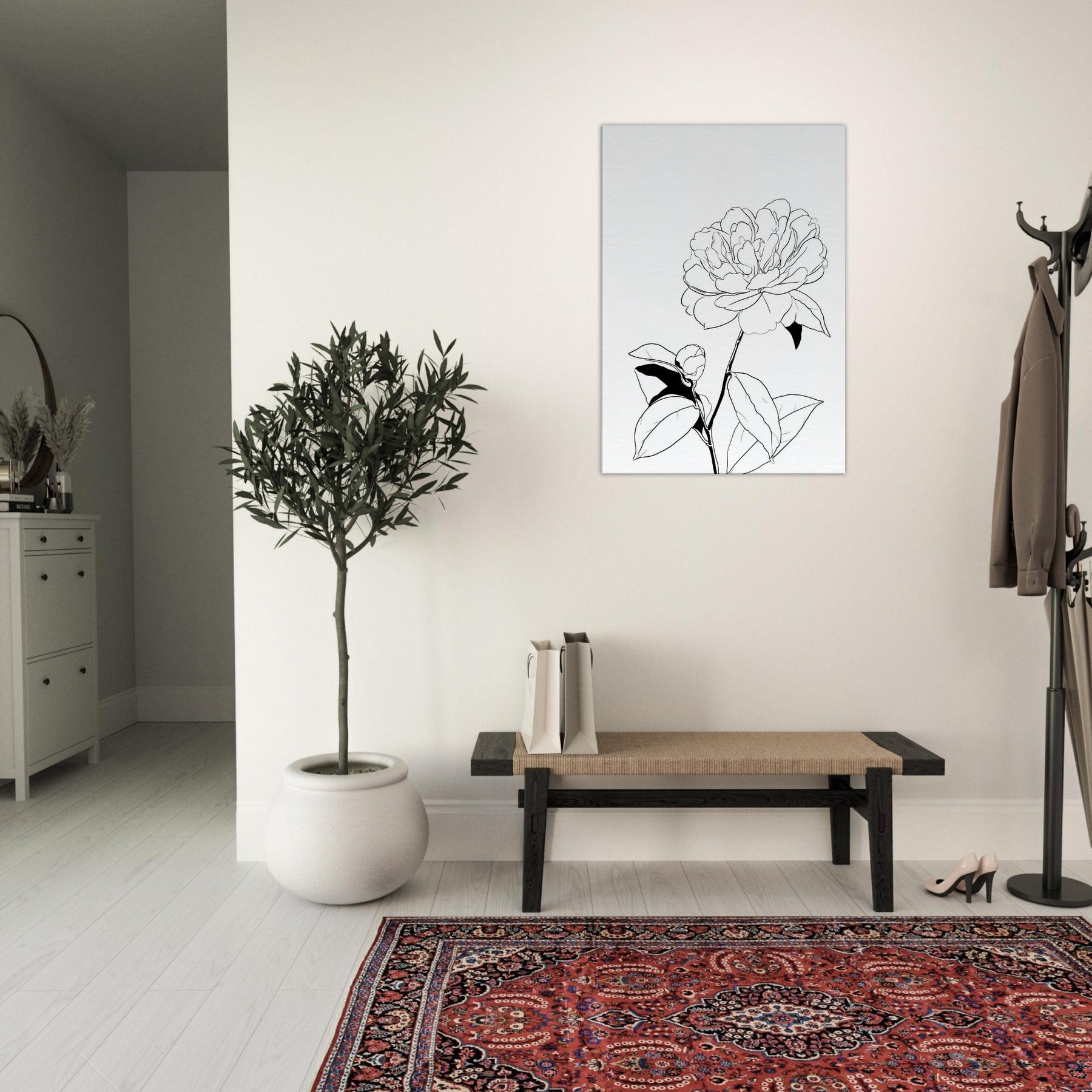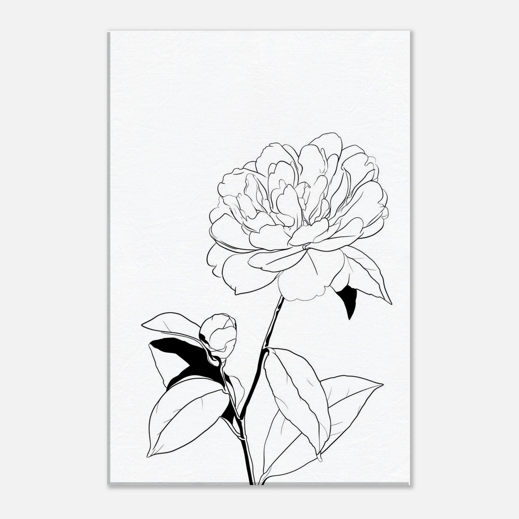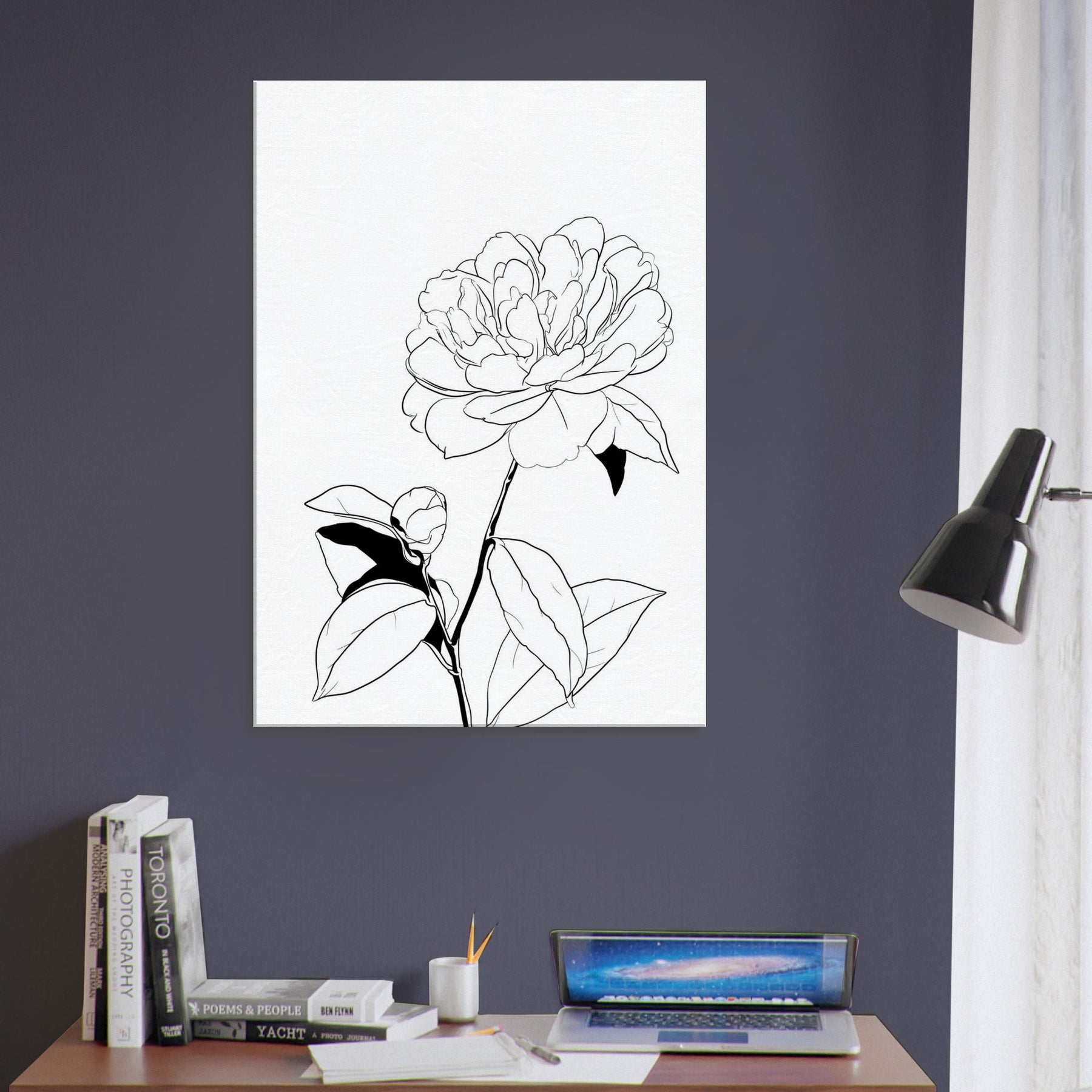 In this elegant line drawing, a Camellia unfurls its petals with quiet grace, its stem a single, confident line that invites the eye to trace every contour. The stark black on white breathes clarity into a room, turning walls into a gallery of stillness and poise. Ideal for living rooms or bedrooms, this fresh botanical study adds a touch of refined nature, offering calm, focus, and a whisper of luxury to everyday space.