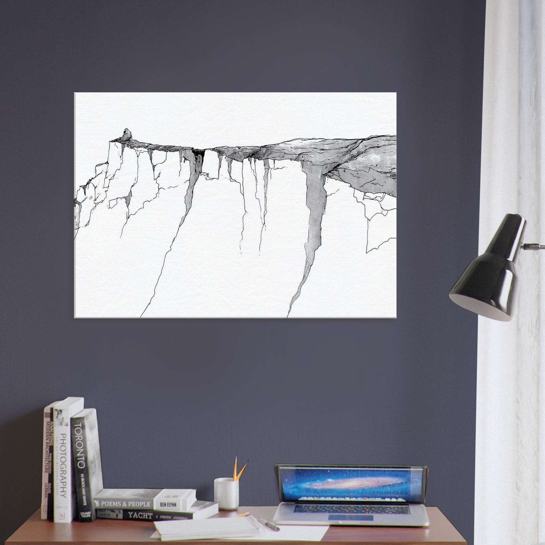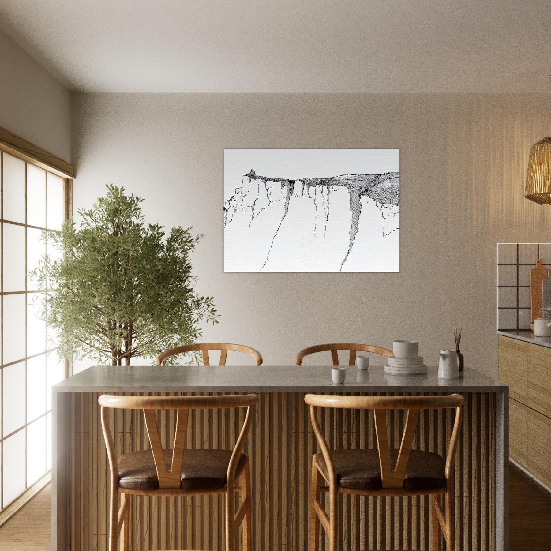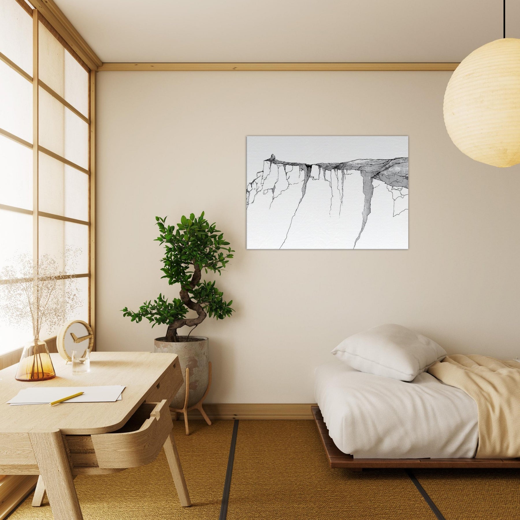 An elemental meditation realized in clean contours, this Canyon image traces the quiet drama of a cliff edge in a single, unbroken line. The deliberate pauses and feathered shadows evoke the warm wind across stone and the chill of shade after noon sun. Placed in a living room or hallway, its minimalist energy invites calm focus, turning a bare wall into a window of vast skies and distant horizons. A statement piece that grounds interiors with natural grandeur and graceful restraint.