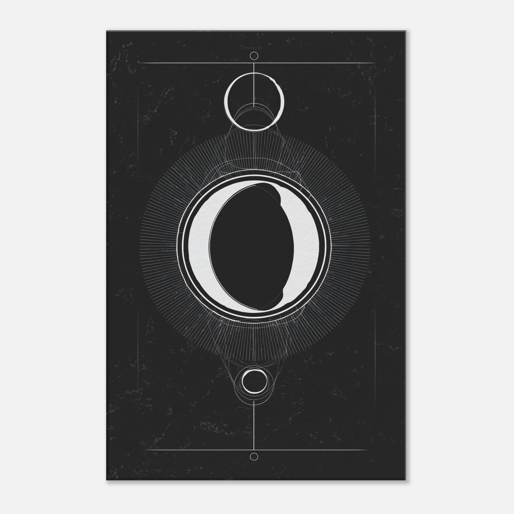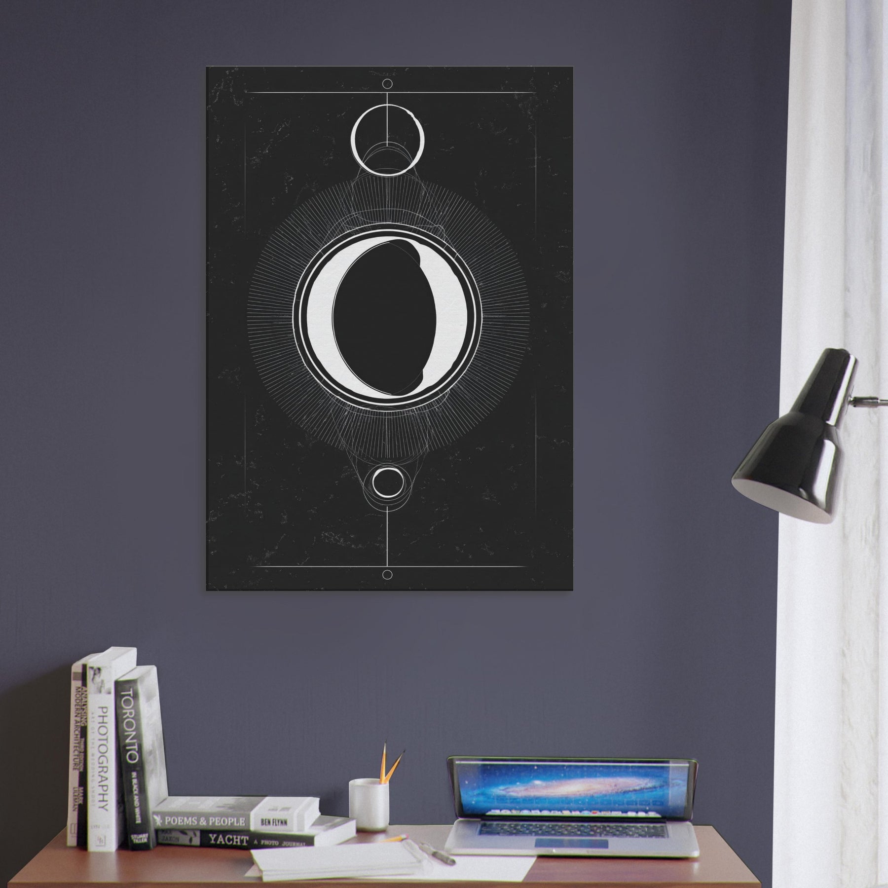 Let the Eclipse unfold across your wall, a hush of night captured in elegant lines. This mystical composition glows with precise arcs and a centered void, inviting quiet contemplation as daylight slips away. The restrained contrast white contours on midnight creates a focal breath in any room, from a serene bedroom to a sunlit study. Its austere poetry pairs beautifully with modern furnishings, turning a hallway into a moonlit corridor of mood and meaning without shouting for attention.