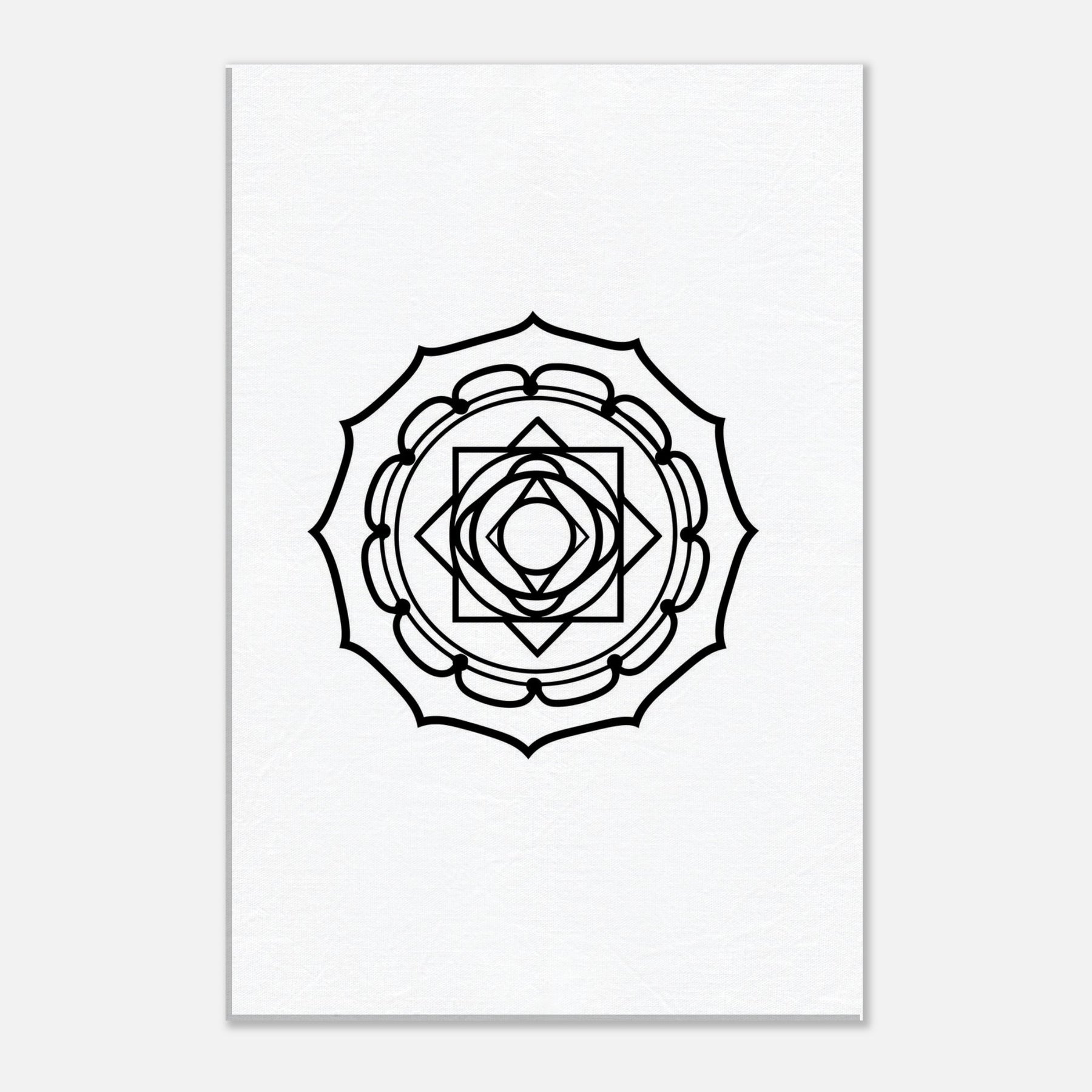Chakra Meridian invites a calm perception into any room with precise line work and meditative geometry. The concentric mandala circles and squares folding toward a quiet center suggests a gentle energy flow through the chakras from root to crown. In a sunlit living space, the piece casts subtle shadows and creates a serene focal point, turning walls into a sanctuary of focus and breath. Its minimal, mystical presence elevates everyday rituals with clarity.