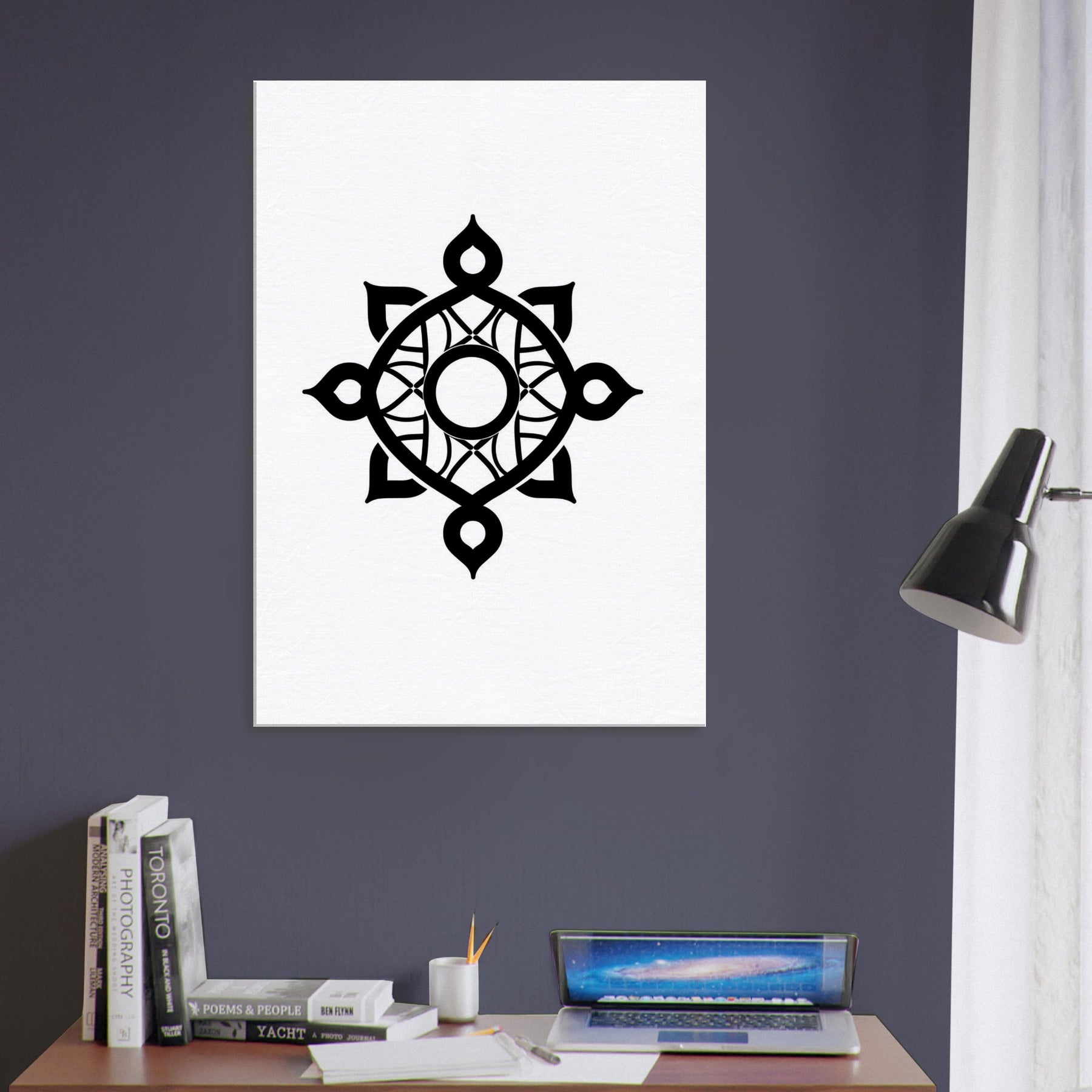 Chakras in Orbit invites stillness into any room with its precise black line work and circular grace. This mystical mandala like design traces energy from center outward, balancing rhythm and breath in the mind. The stark contrast of ink on clean white walls creates a quiet focal point perfect for a living room, studio, or meditation nook. As light shifts, the contours seem to breathe, turning everyday spaces into a sanctuary where the chakras feel seen, supported, and ready to align.