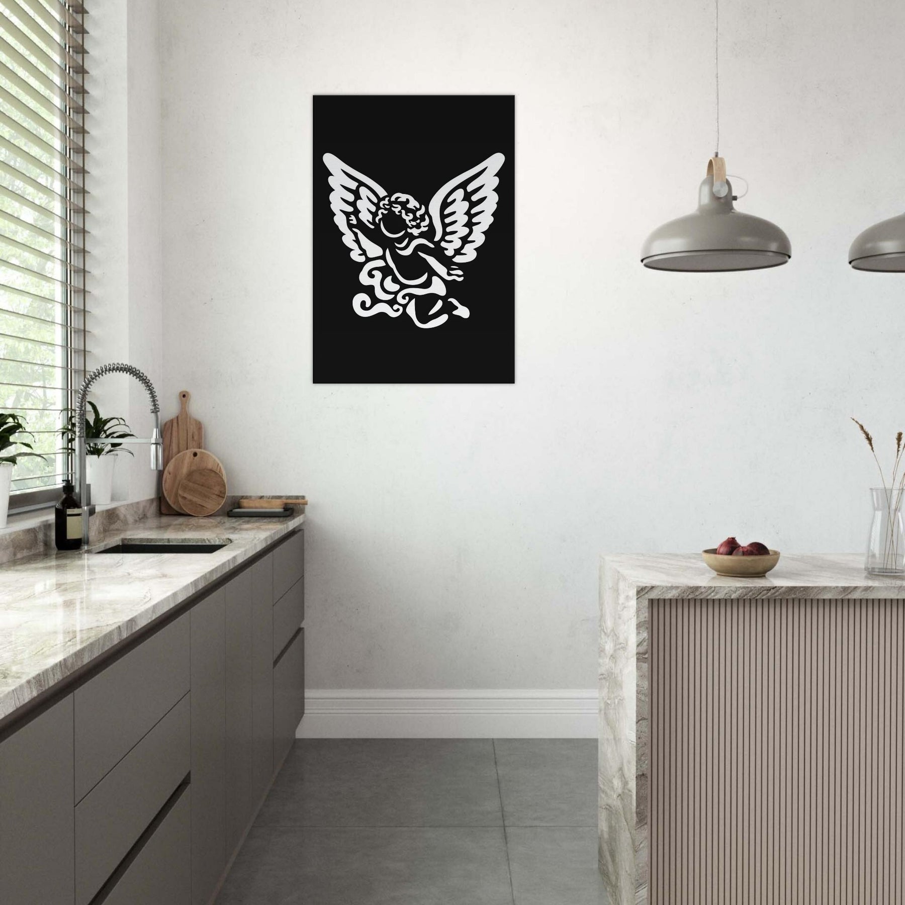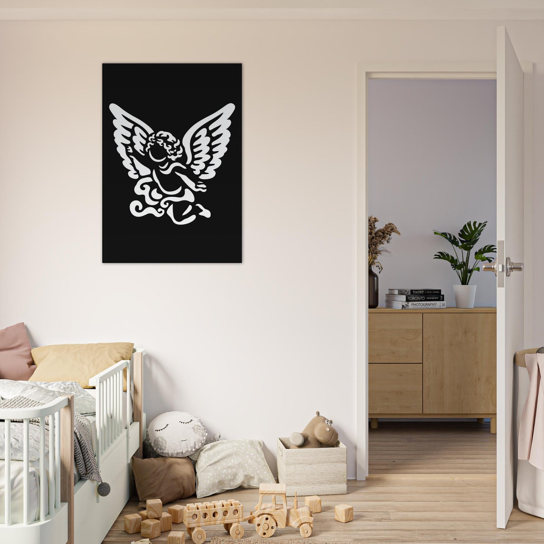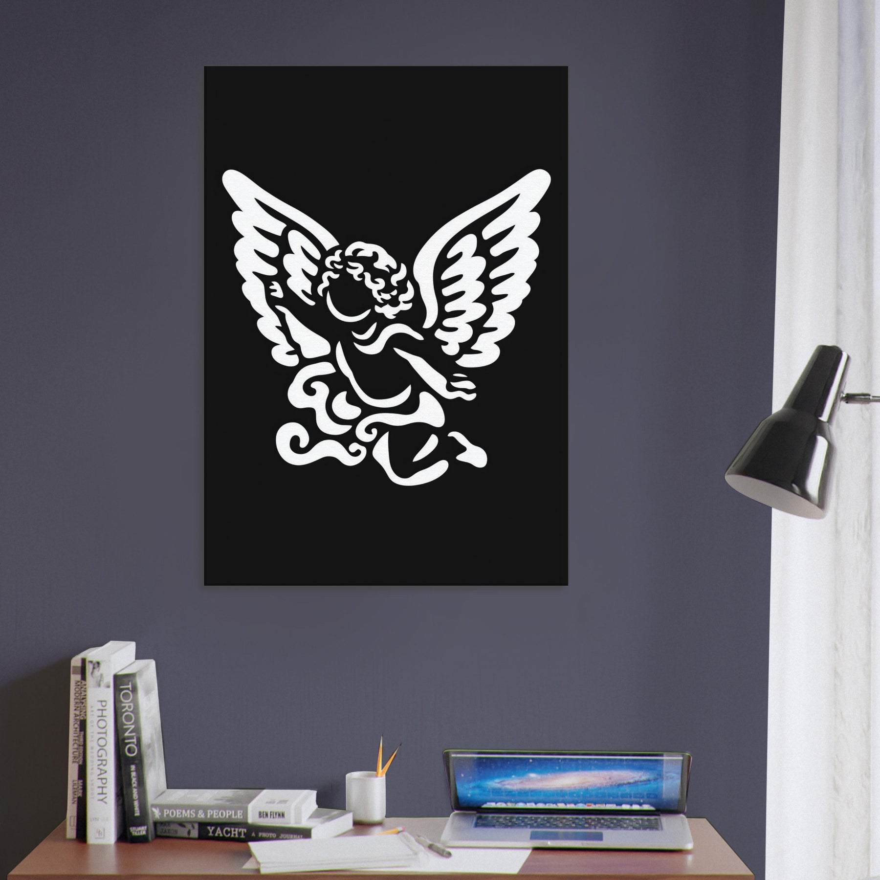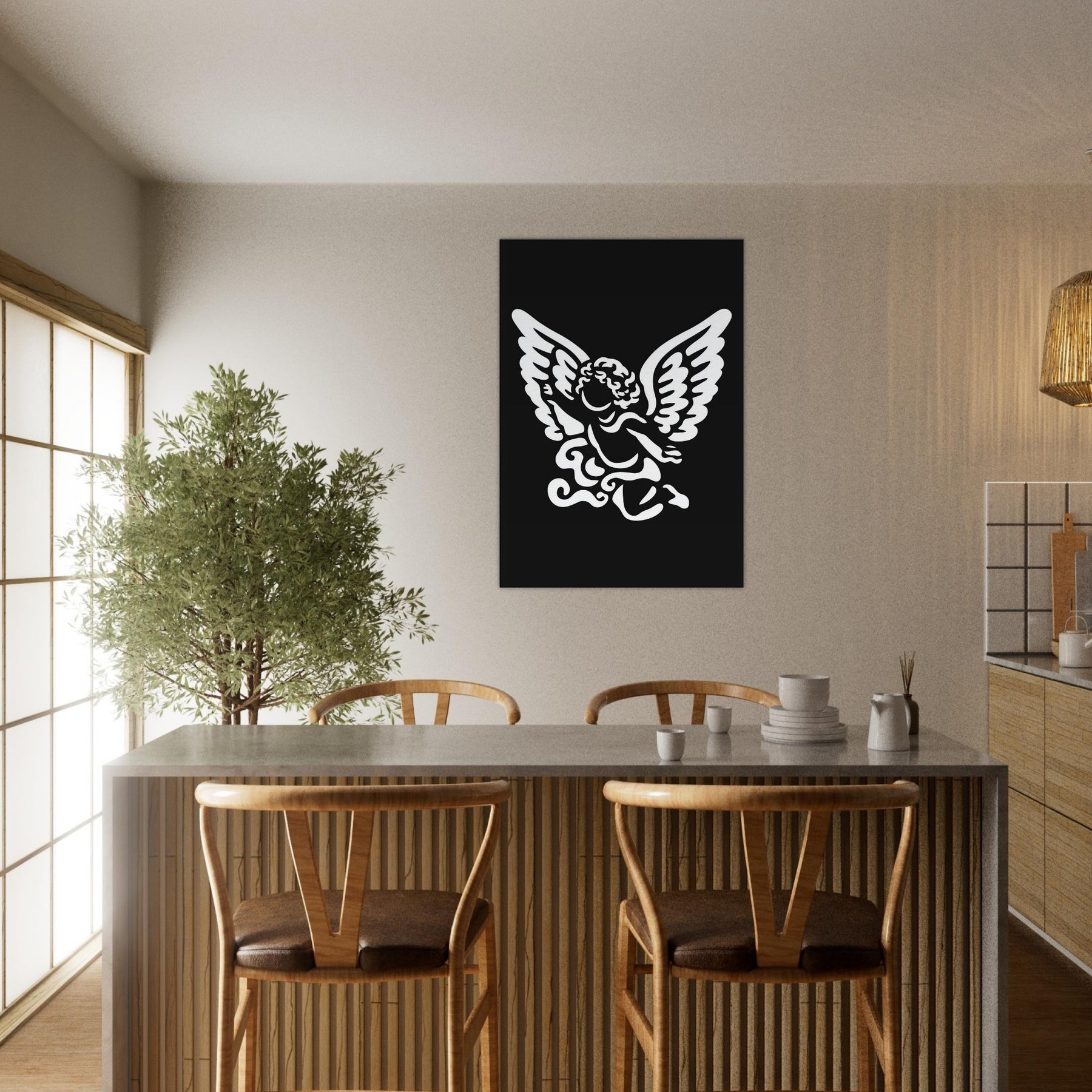 An airy meditation in black and white, this line art cherub wings piece invites quiet contemplation into your living space. The flowing white contours carve movement against a velvety dark field, suggesting a celestial presence that is at once timeless and contemporary. Perfect for a minimalist foyer, a soothing bedroom nook, or a gallery wall, it echoes serenity, casts soft contrast, and makes the room feel taller, calmer, and more expansive. The central subject is Cherub (Wings Only).