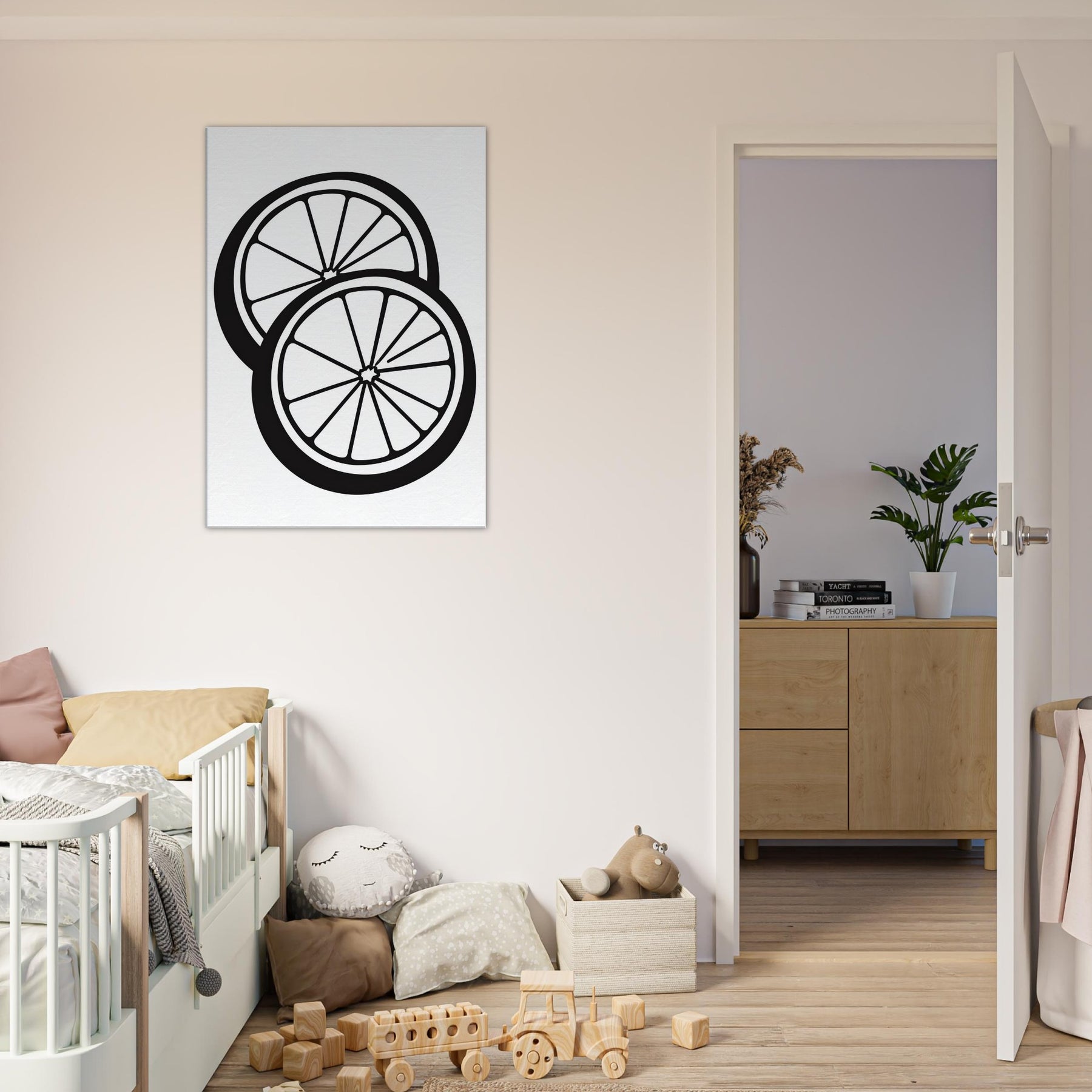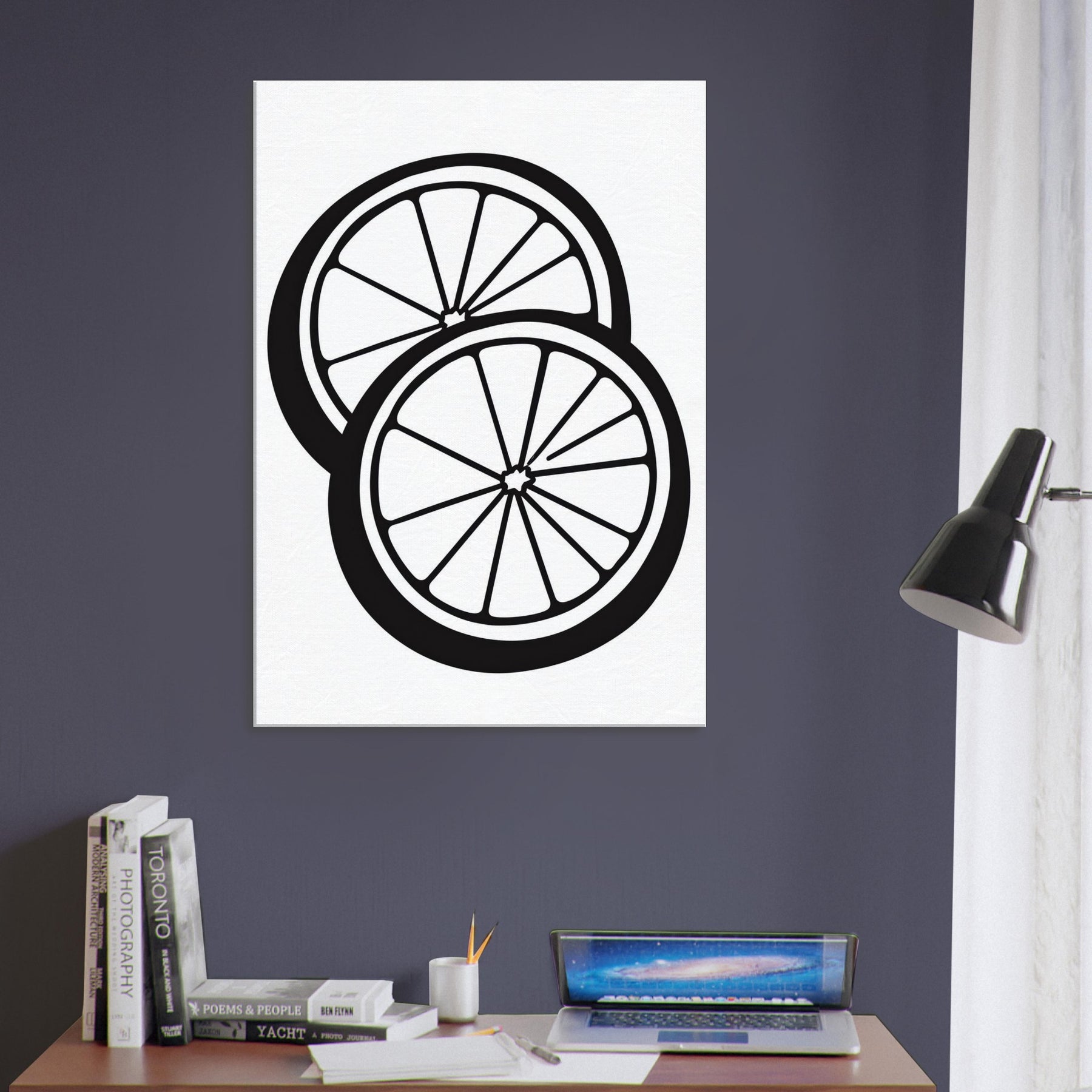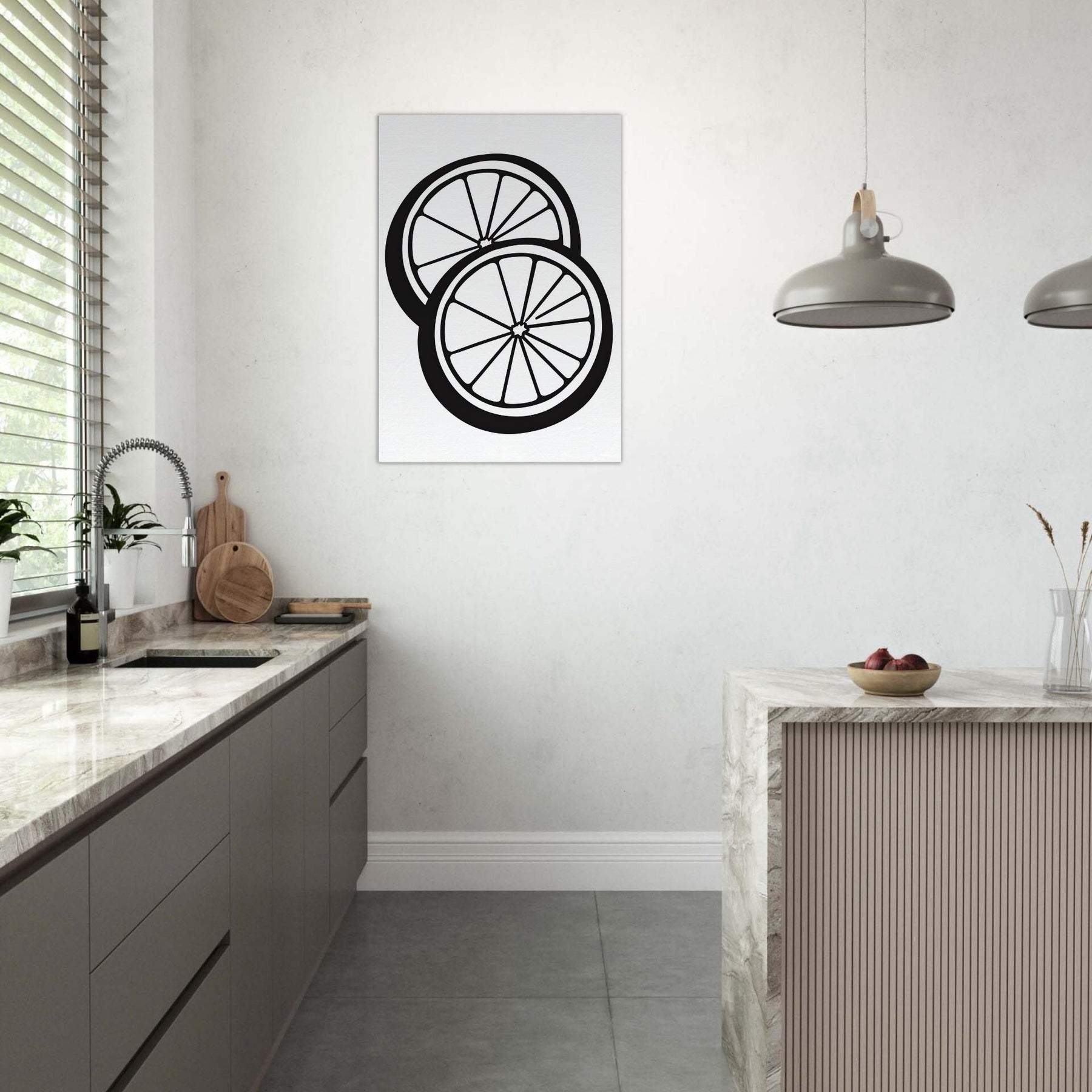 Let the crisp geometry of Citrus Halves transform your room into a sunlit studio. This line art print strips citrus down to its most confident geometry zip of zest, luminous rind, and bright, white interior creating a fresh, modern mood. The bold black lines float on white, offering rhythm and breath to a living room, dining nook, or kitchen. Pair with light woods or metallic accents to amplify its crisp, daytime glow and effortless sophistication.