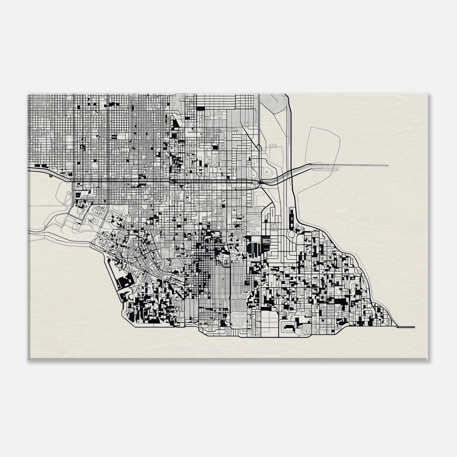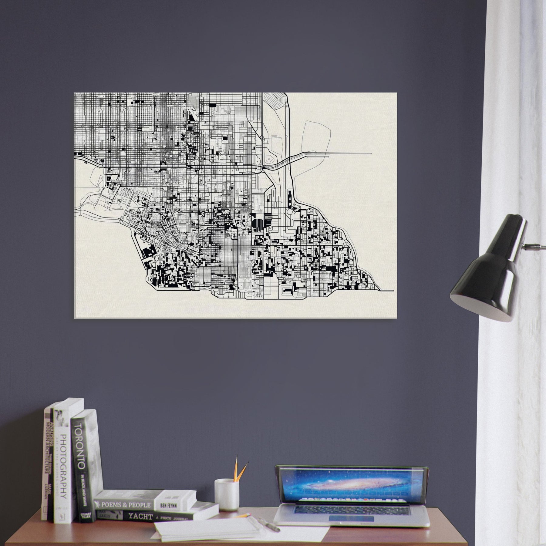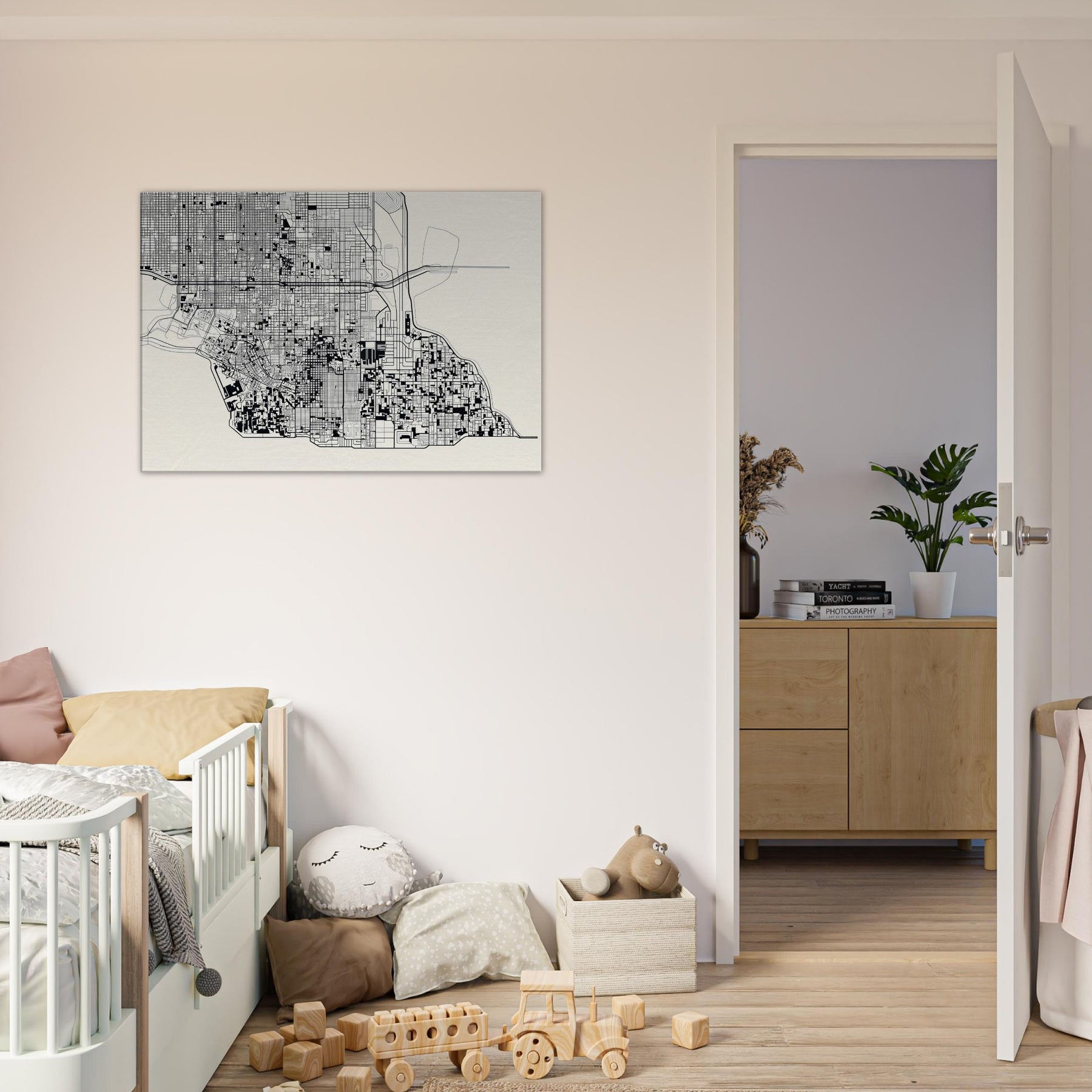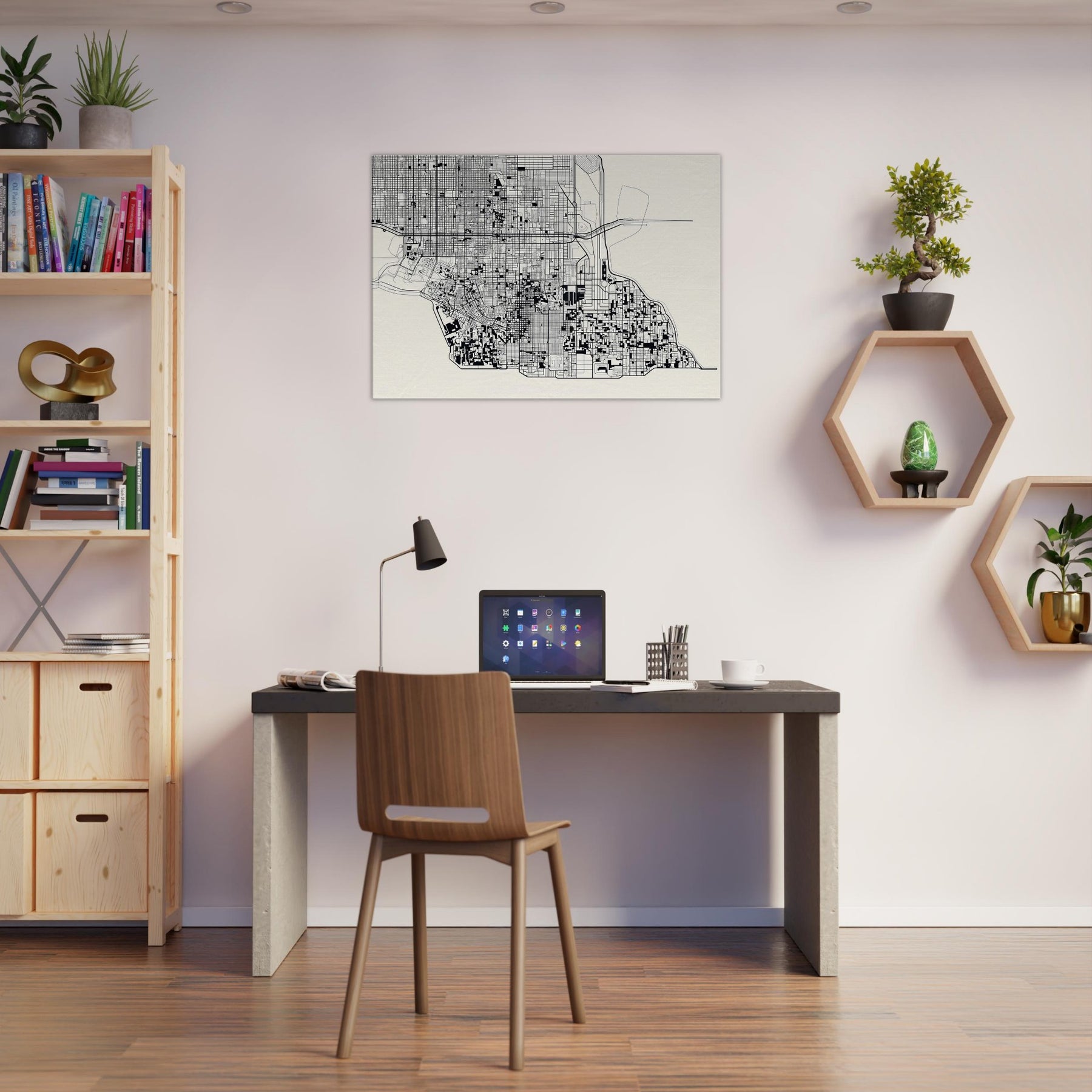 Immerse your space in the precision and poetry of a Minimal City Map rendered in delicate line art. The map's clean network of streets and blocks invites quiet contemplation, turning a wall into a memory of place. Its black on cream simplicity enhances daylight or lamplight, adding a refined anchor to living rooms, bedrooms, or hallways. A subtle urban heartbeat for modern interiors, this piece blends nostalgia with contemporary restraint, making every glance feel like a guided stroll through familiar avenues.
