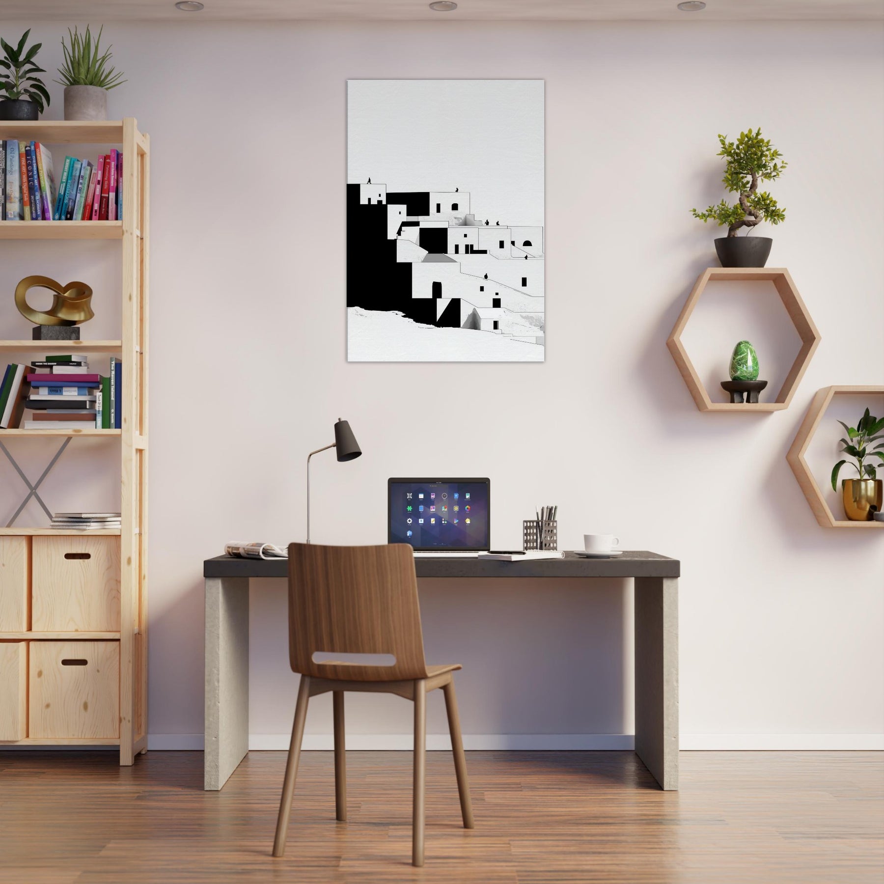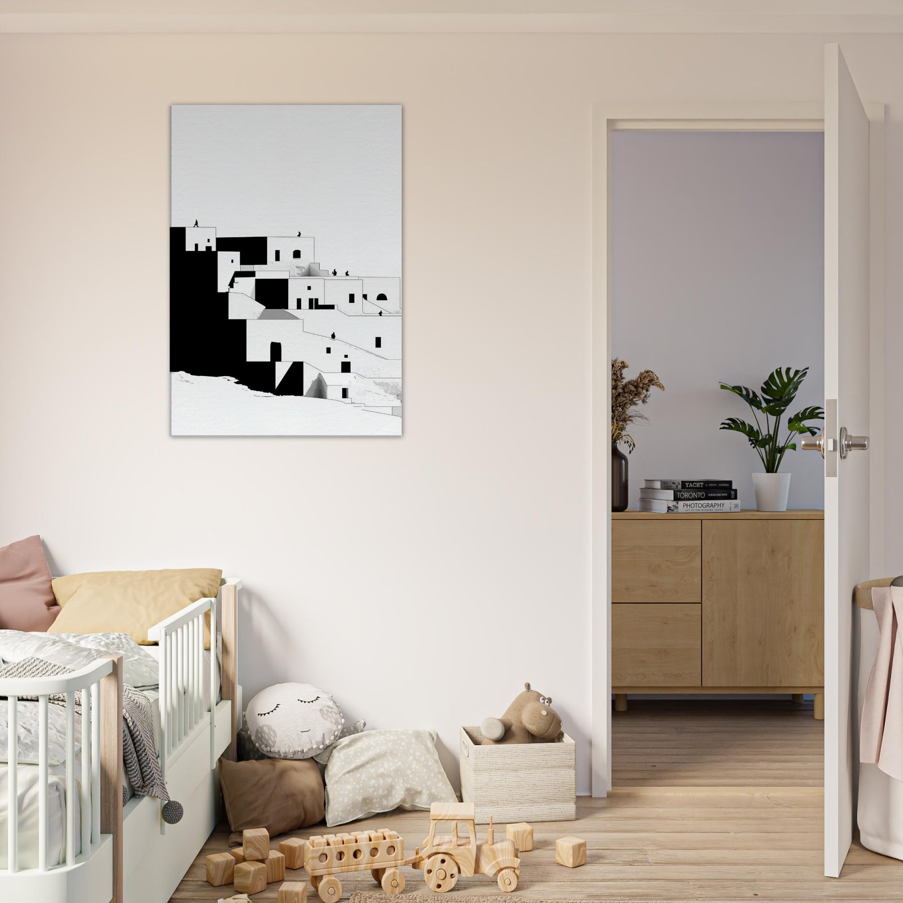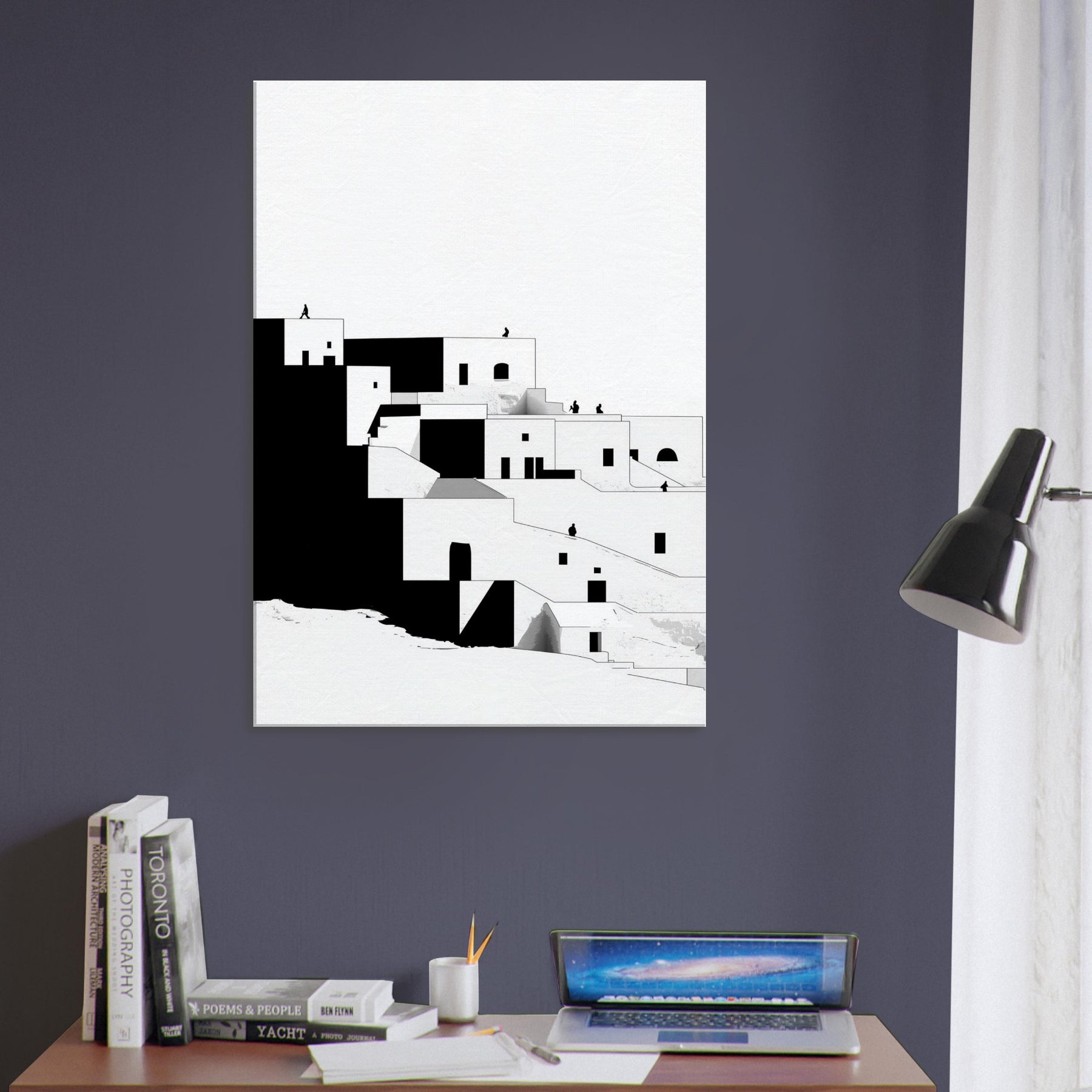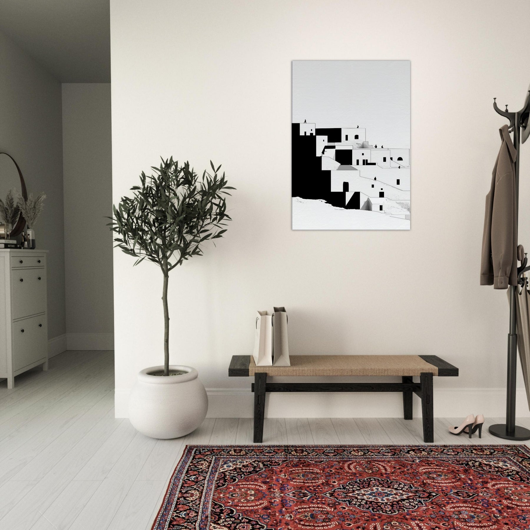 Immerse your space in the quiet majesty of Santorini translated into a lucid, architectural line. This line art rendering strips color to reveal clean planes, gentle terraces, and the cliffside rhythm that defines hillside villages. The result is a calm, magnetic mood that invites daylight to hover along white walls and deep shadows, making a room feel expansive and serene. Perfect over a sofa or entryway, it flows with modern furnishings while whispering travel and memory.