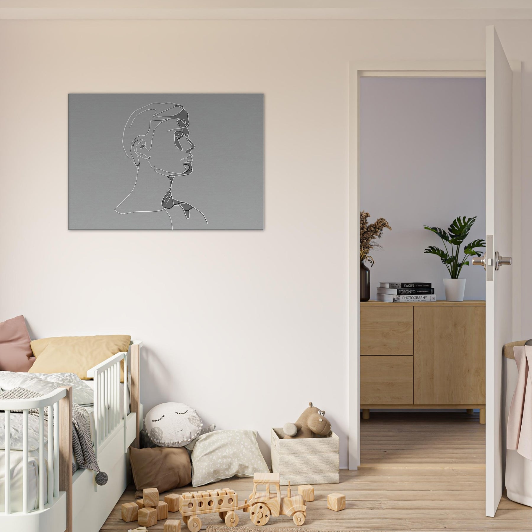 Let the Sculptural Bust in line art breathe softly across your room. Its single, continuous contour lends architectural grace to a living space, turning walls into a quiet gallery. The luminous line against a mellow gray backdrop conjures shadow, light, and tempo, inviting calm reflection at every glance. Placed above a sofa or beside a lamp, it adds airy elegance, modern drama, and a subtle tactile presence that elevates everyday moments into artful, serene ambience.