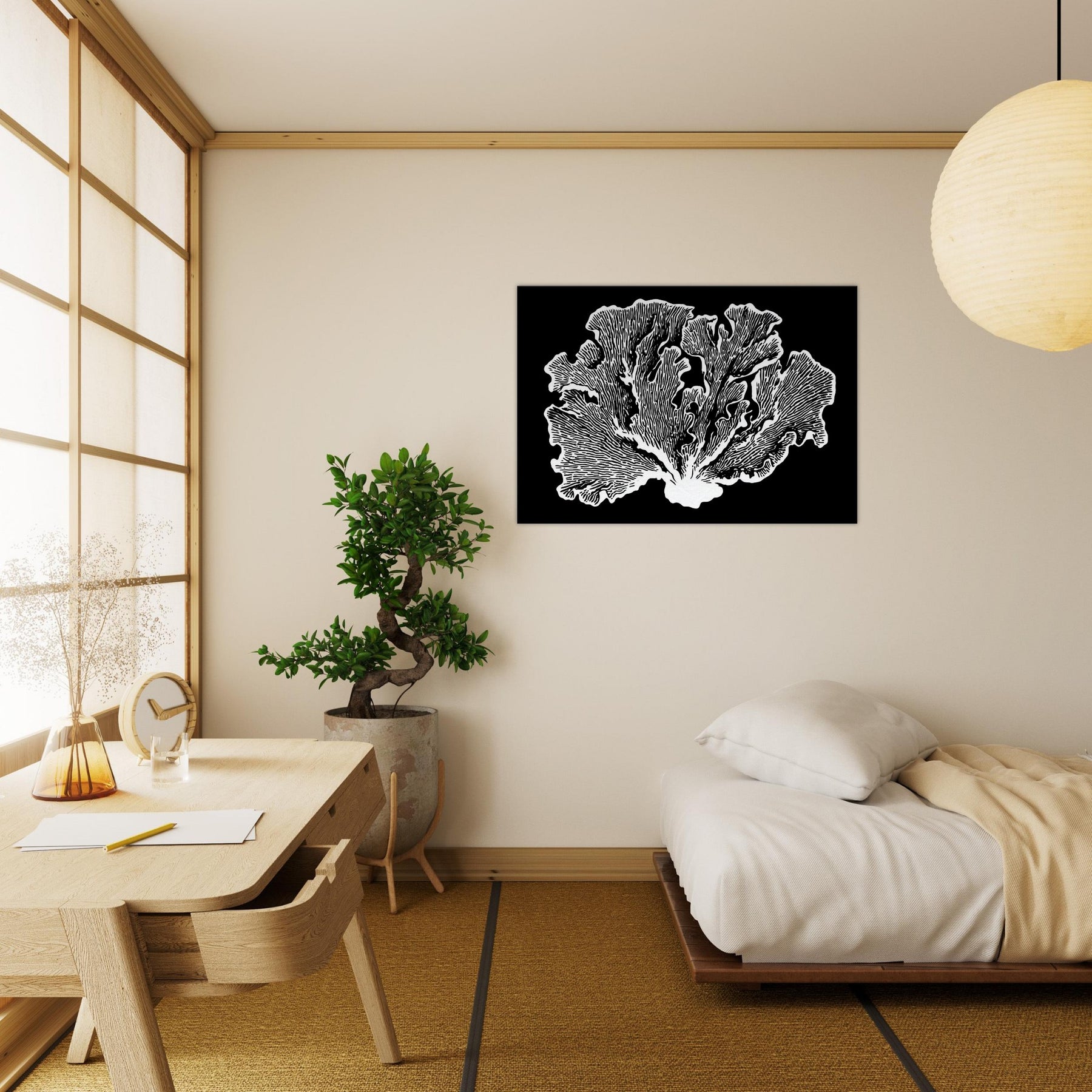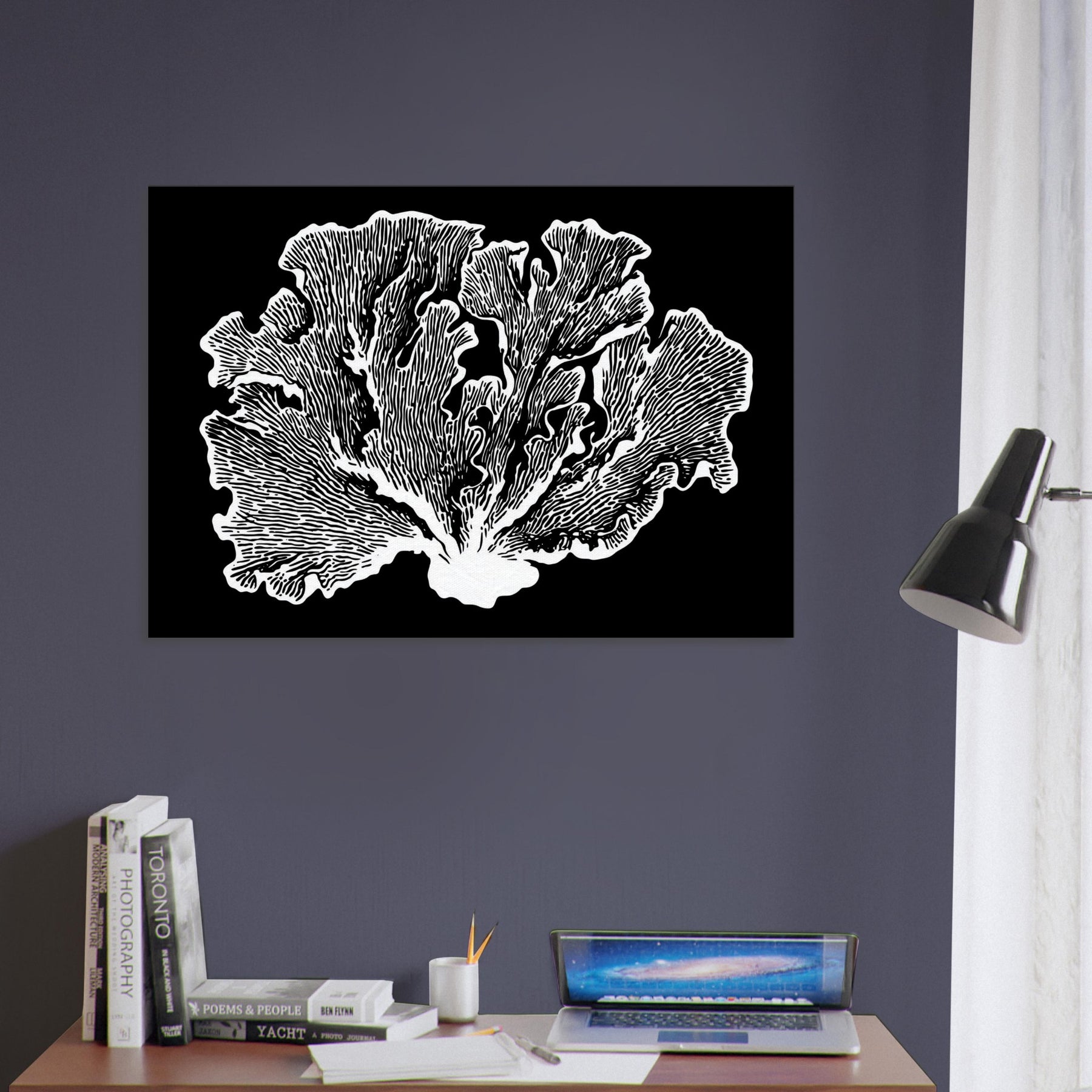 Let the Coral unfold in delicate, sinewy lines that recall a tranquil reef. This line art study exudes quiet movement and tactile texture, turning any wall into an underwater bloom of light and negative space. The Coral becomes a gentle focal point, pairing with neutral palettes or bold accents to soften rooms with oceanic serenity. Perfect for living rooms and bedrooms, it invites contemplation without crowding the senses.
