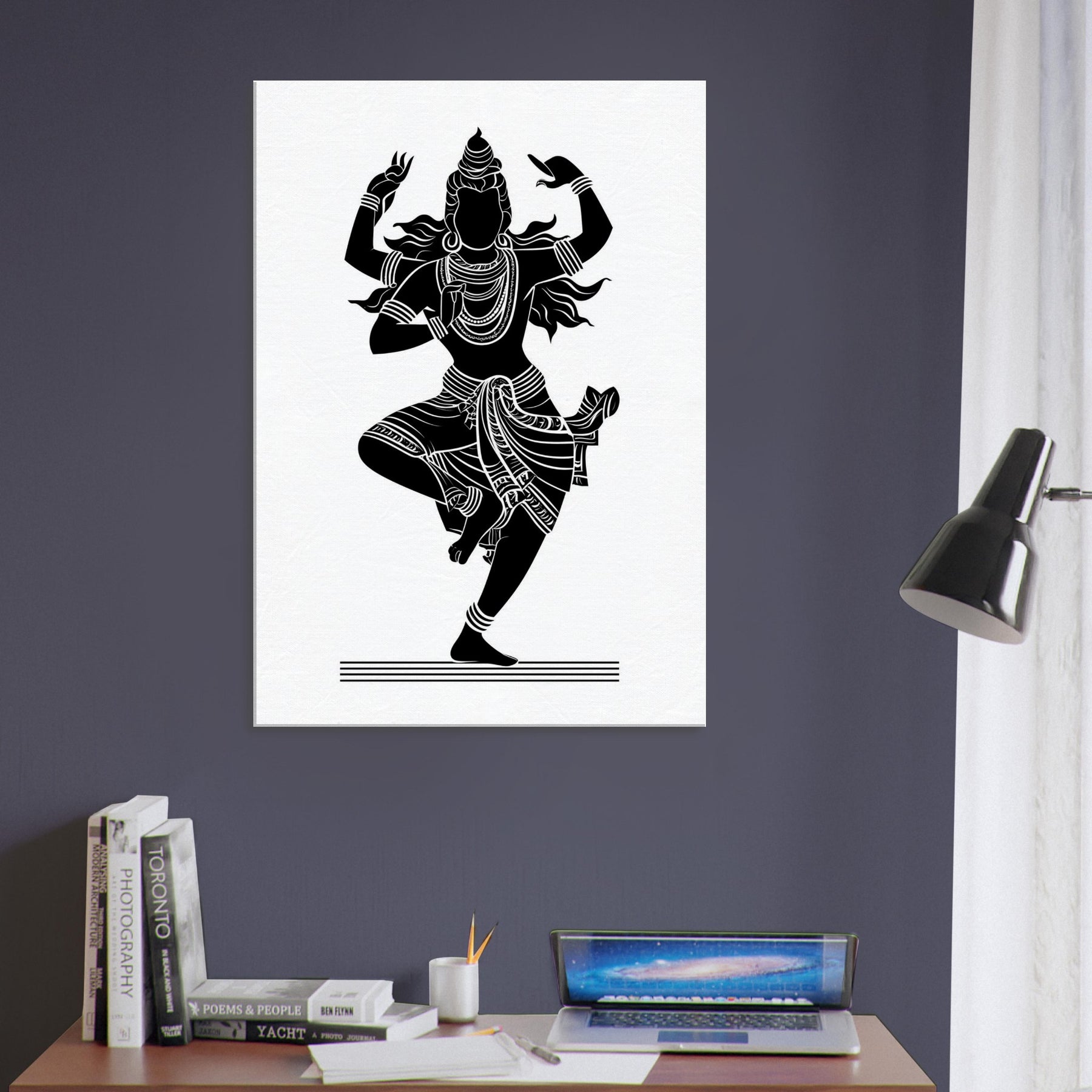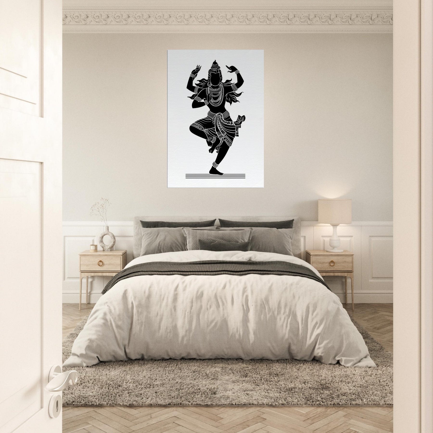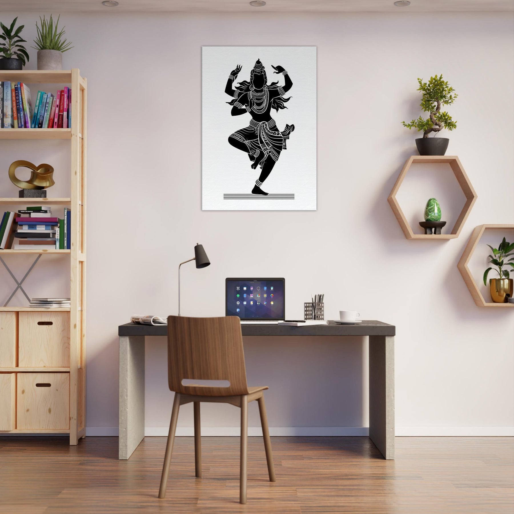 Shiva Nataraja stands poised in a moment of divine rhythm, a line art silhouette that breathes movement even in stillness. The artwork captures mythic gravity with elegant, unbroken strokes, inviting the eye to travel from uplifted hands to the swirling hems. In your living space, it becomes a meditative focal point a hush of ceremony that steadies a room, sparks curiosity, and softens modern edges with timeless mysticism. Let this shrine like presence infuse your home with balance, wonder, and luminous calm.