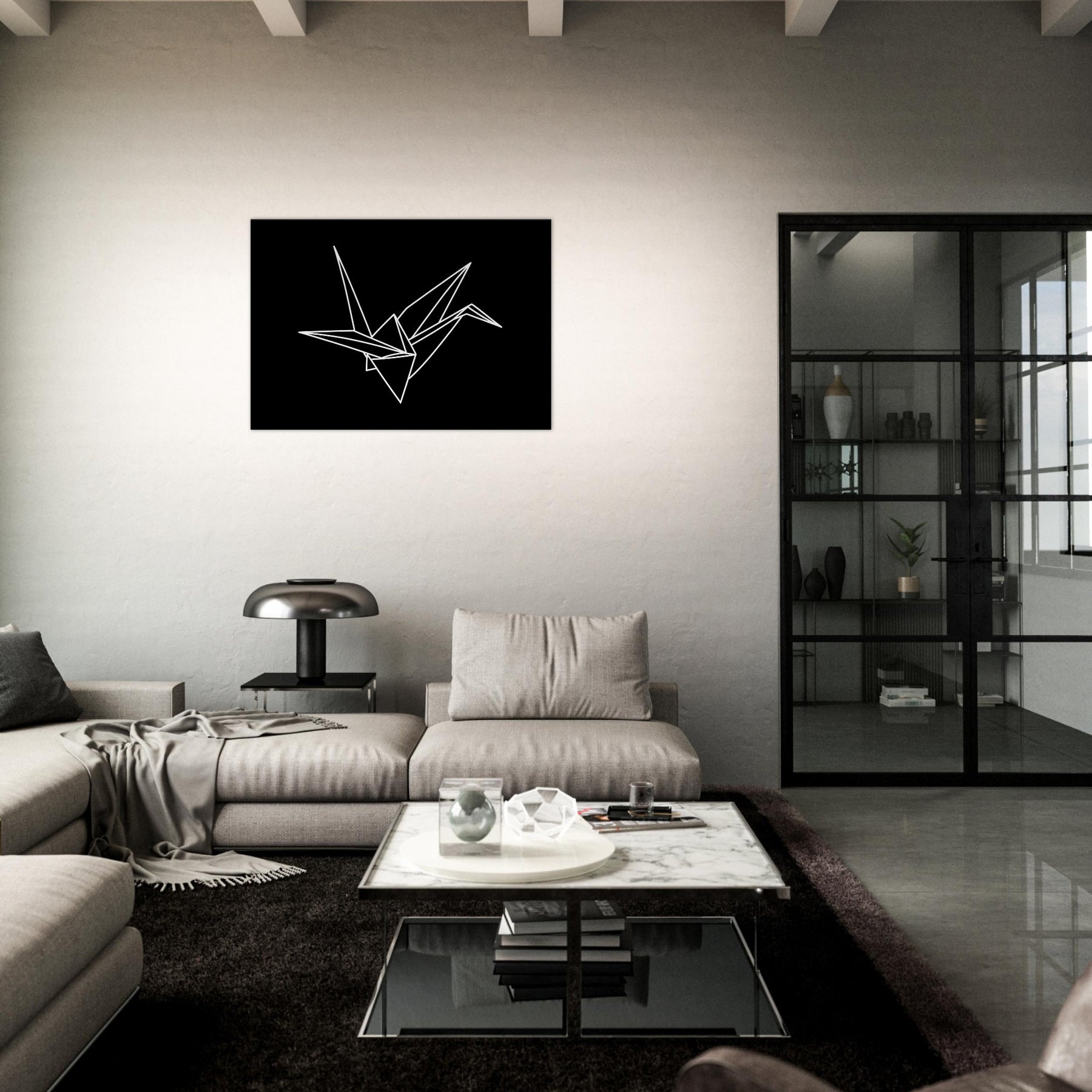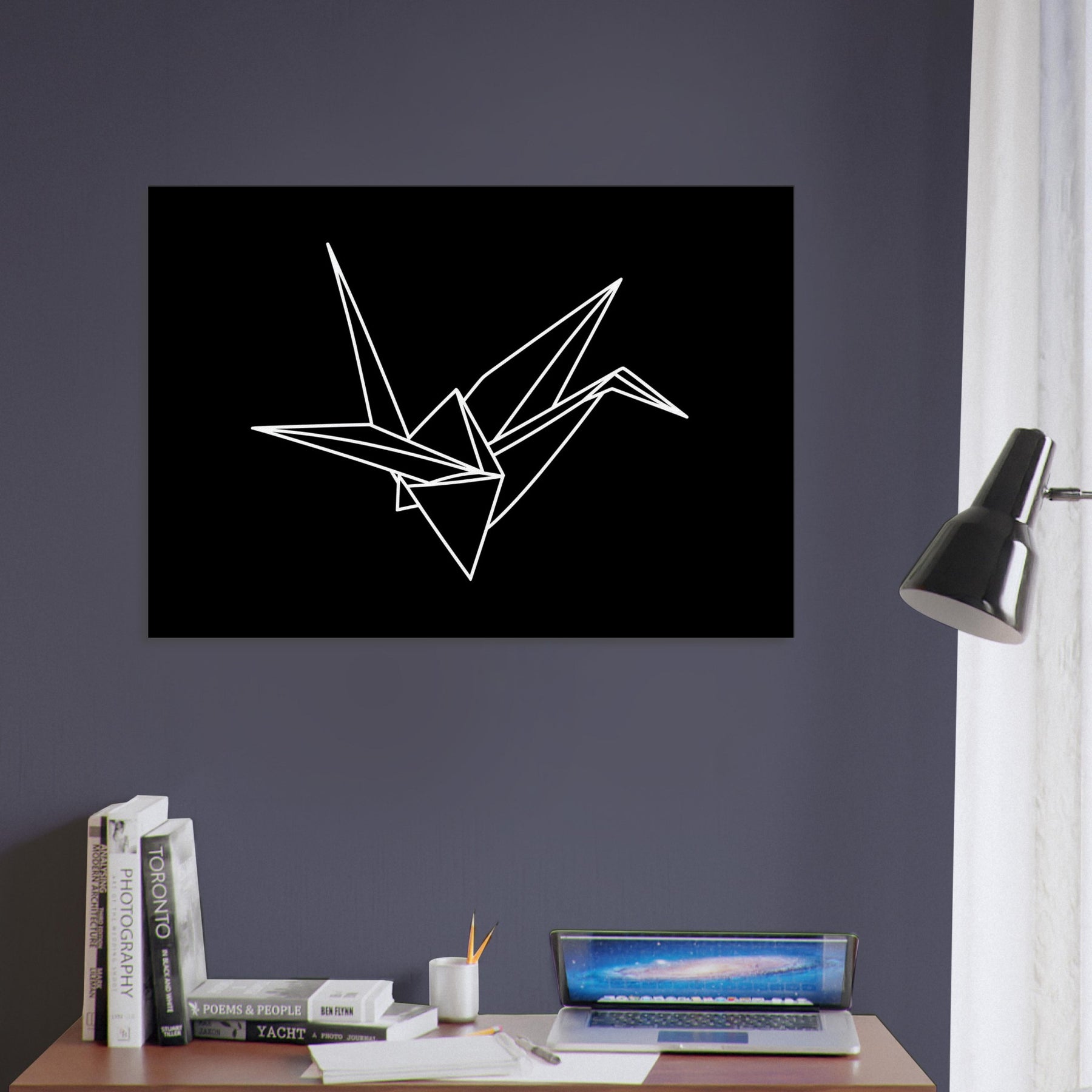 Origami Crane unfolds in a quiet city of lines, inviting calm as if a single breath hung in the air. This Origami Crane is rendered in luminous white on deep black, its geometry sketched with a dancer's grace. The result is a modern, contemplative mood that softens a living room or study, creating space for stillness amidst daily motion. Hang this piece and let the light wrapped folds guide your glance toward simplicity, balance, and subtle, perpetual motion.