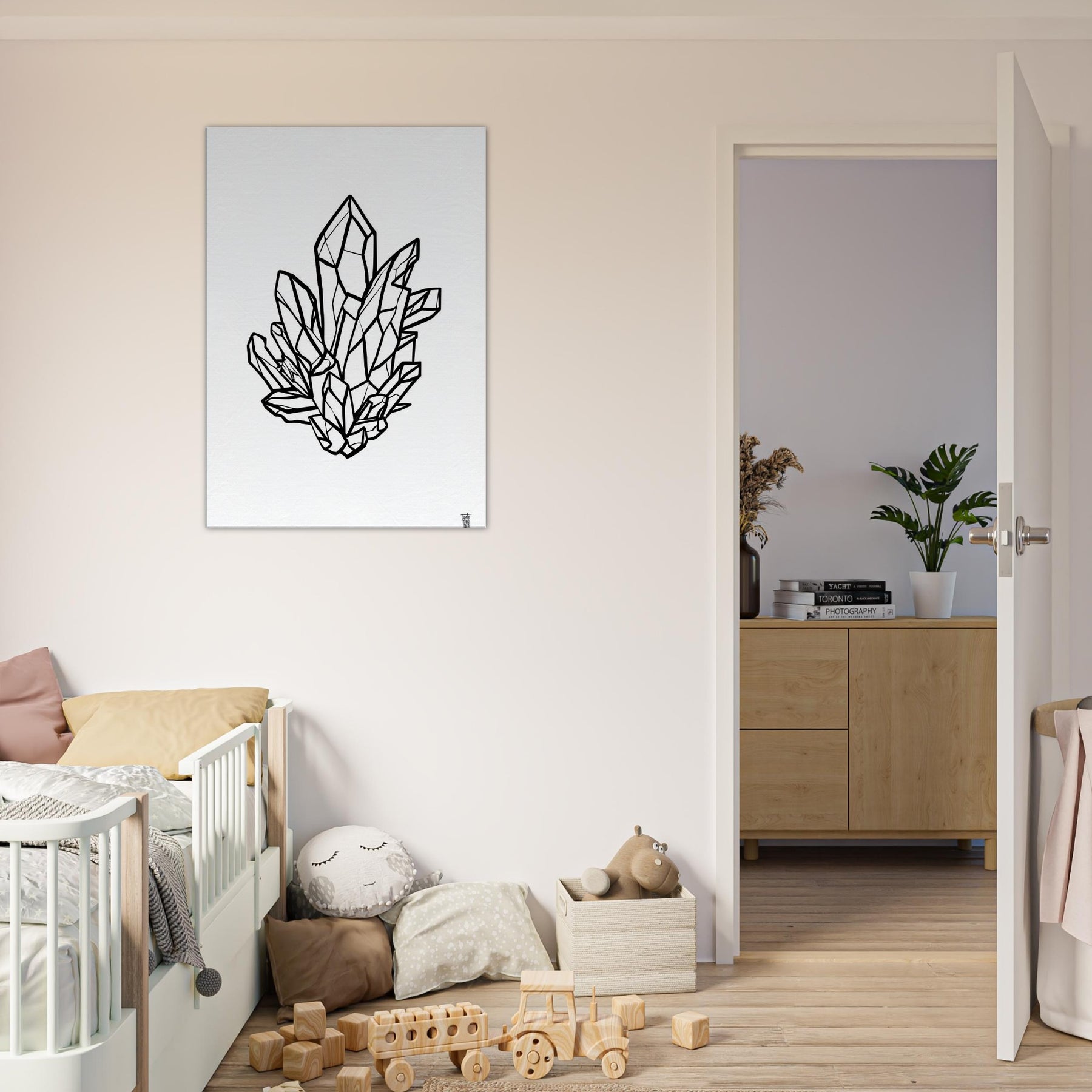 Before you lie a Crystal Cluster rendered in bold contour lines, a study in luminous geometry that invites quiet awe. This mystical line art feels like a breath of winter light, casting angular shadows and a sense of crystalline clarity across a room. Hang it in the living room or studio to refine the mood its crisp black on white becomes a focal point that pairs with soft textures, wood tones, and metallic accents, turning everyday moments into a meditative pause.