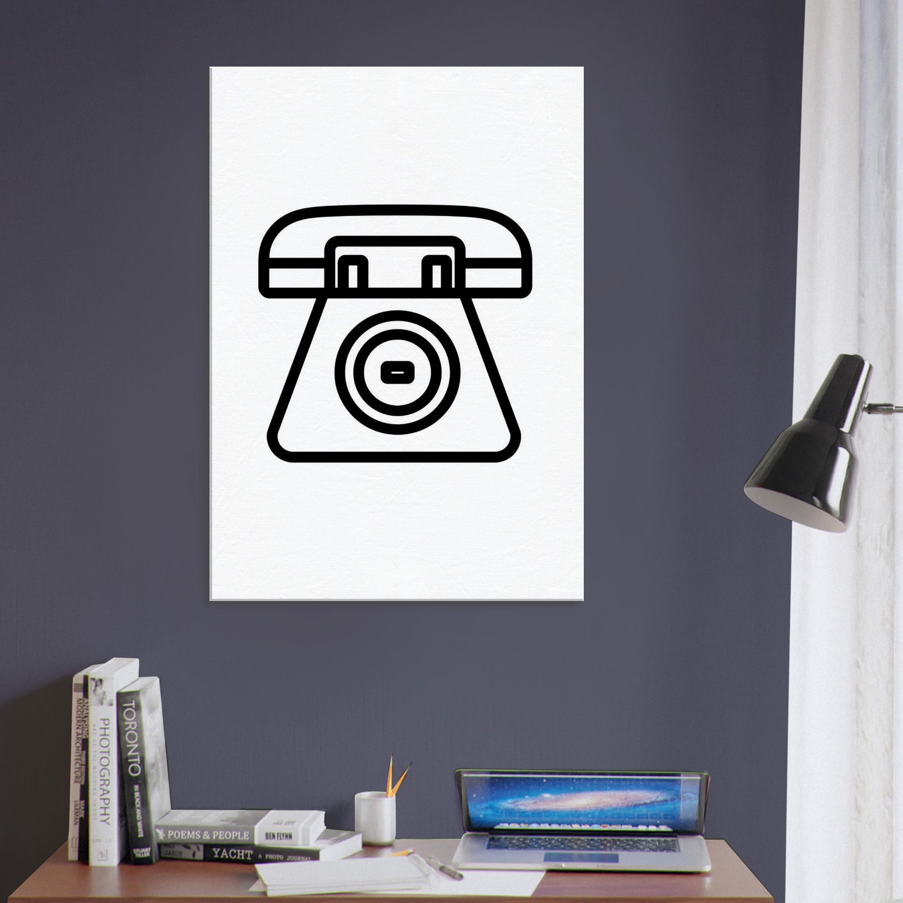 A crisp, black ink silhouette of a Retro Telephone unfolds across your wall, its elegant curves captured in confident line art. This singular icon evokes late night chats, distant ring tones, and the tactile ritual of lifting a receiver, now distilled into a modern, decorative presence. Placed in a living room or study, it creates a calm focus, guiding light and conversation with a vintage poised atmosphere. Its generous negative space invites color, texture, and quiet contemplation to mingle with everyday life.