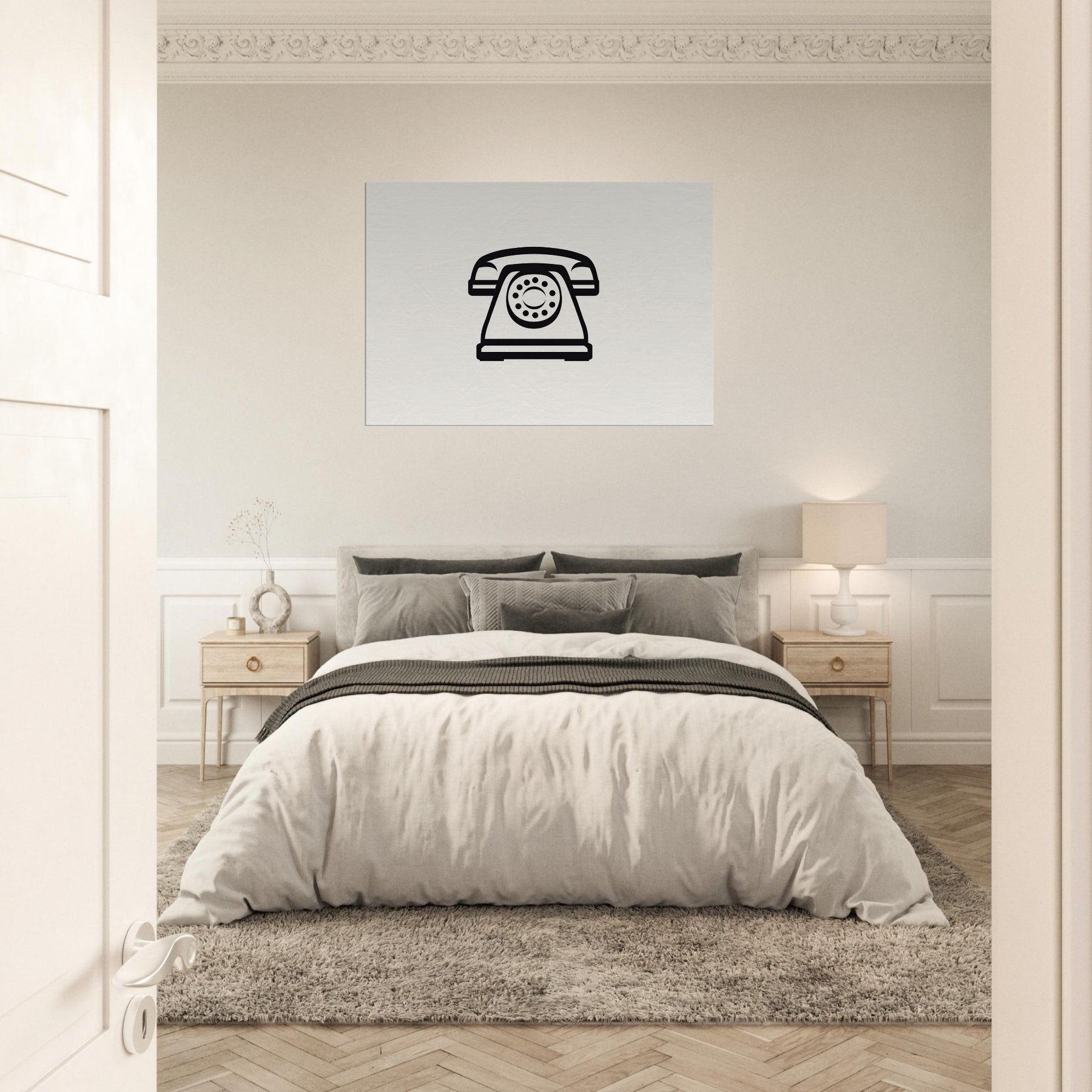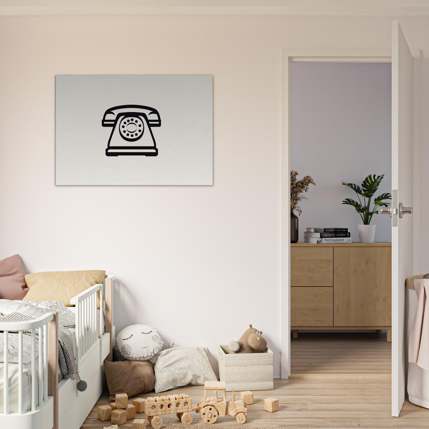 Where a single line becomes a doorway to memory, this Retro Telephone anchors a room with quiet nostalgia. The bold, black silhouette floats against a warm, neutral canvas, inviting the mind to wander the hands of time, the soft click of a switch, the glow of a lamp at dusk. Perfect for a living room or hall, it slows the pace of everyday life, turning a wall into a memory drawer that feels both timeless and intimate.